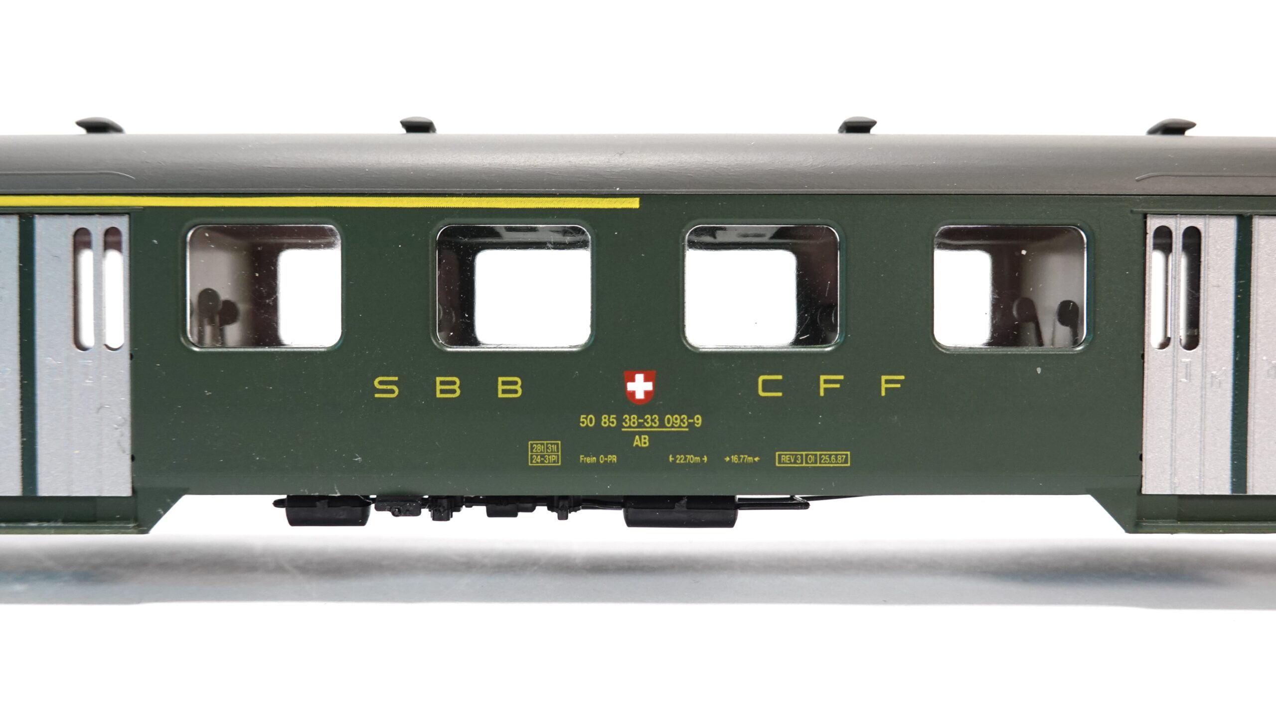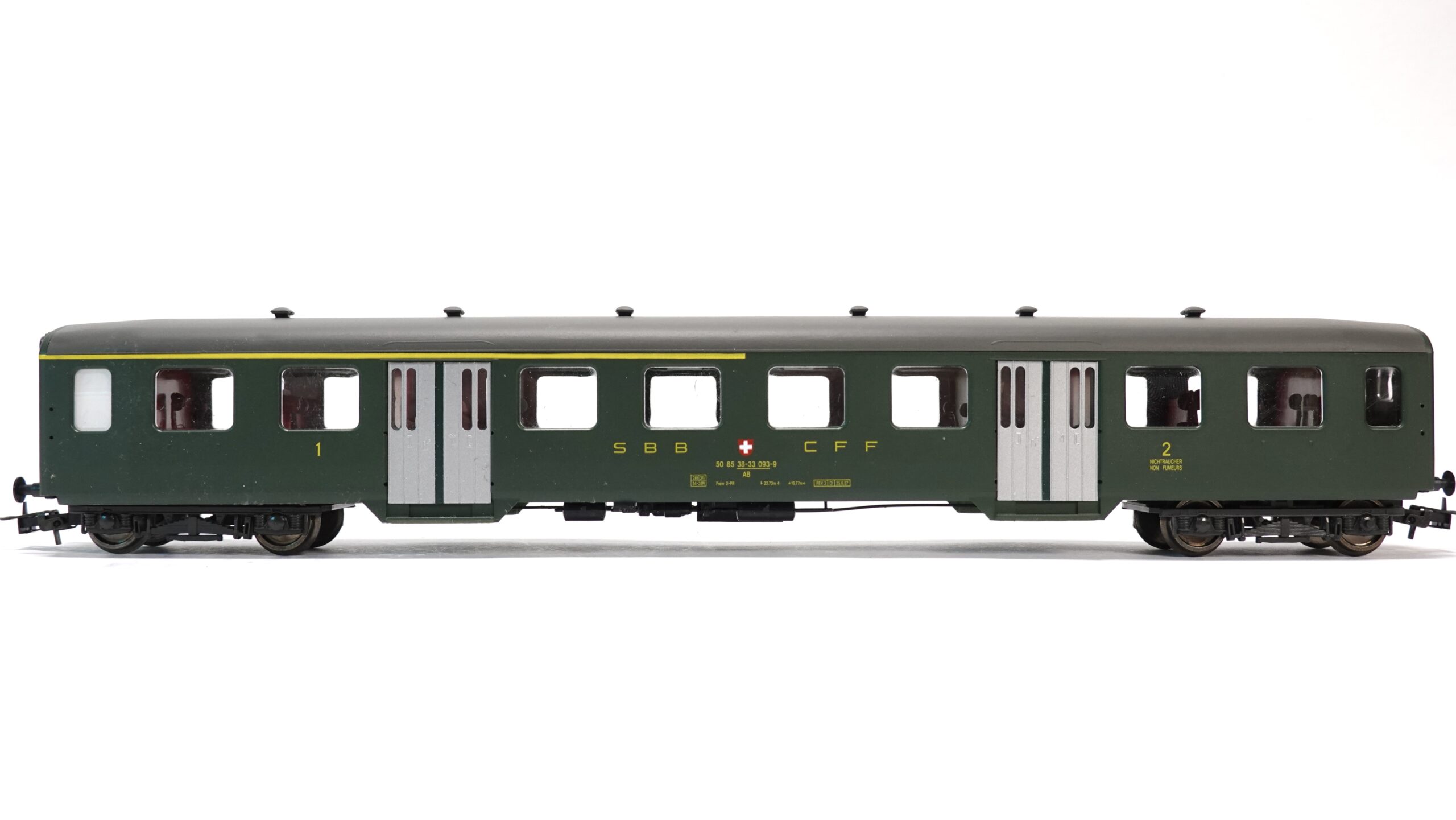 Mit dem AKU 9042 H0 SBB Leichtstahlwagen 1./2. Klasse OVP holt man sich ein Stück dieser traditionsreichen Eisenbahngeschichte nach Hause. Dieses Modell steht für die goldene Ära des Bahnreisens in der Schweiz und ist ideal für alle, die sich für historische Züge und deren besondere Atmosphäre begeistern. Es verkörpert nicht nur ein Transportmittel, sondern ein Lebensgefühl – geprägt von Pünktlichkeit, Zuverlässigkeit und eindrucksvollen Reisen durch eine der schönsten Bahnlandschaften Europas.