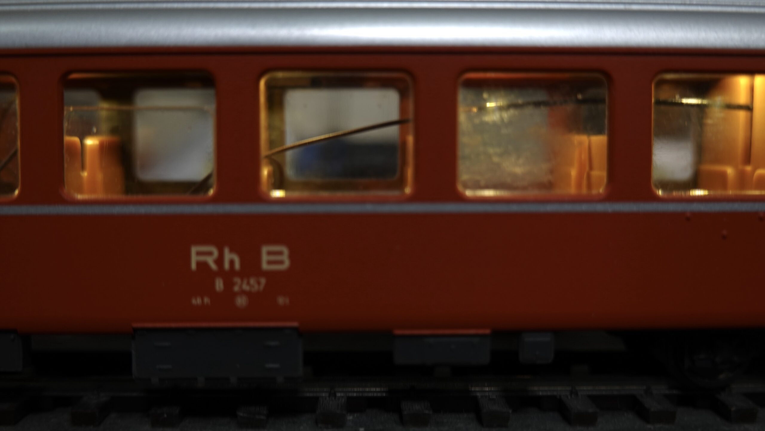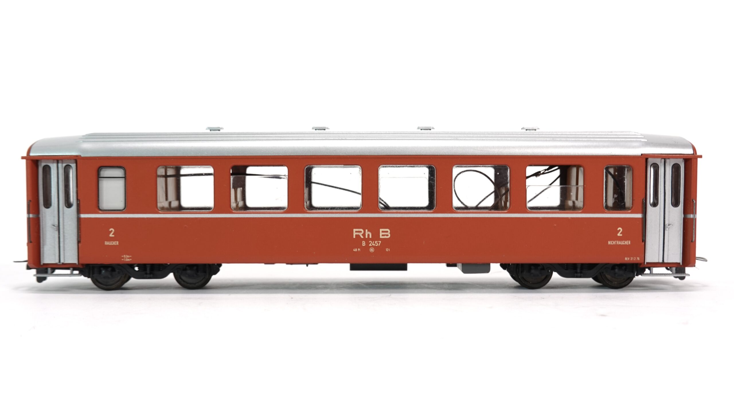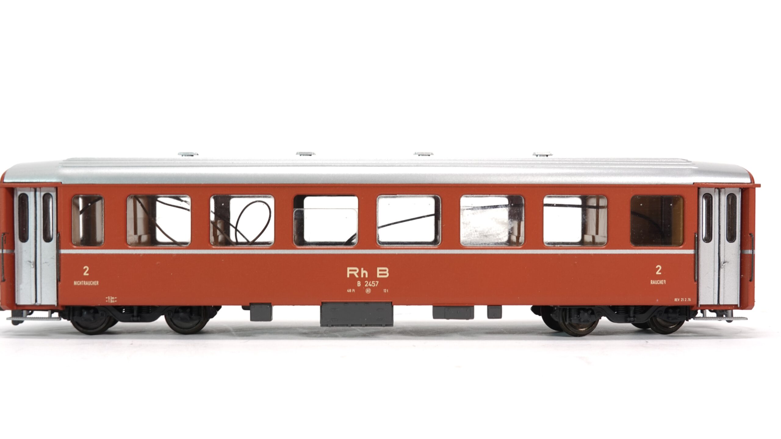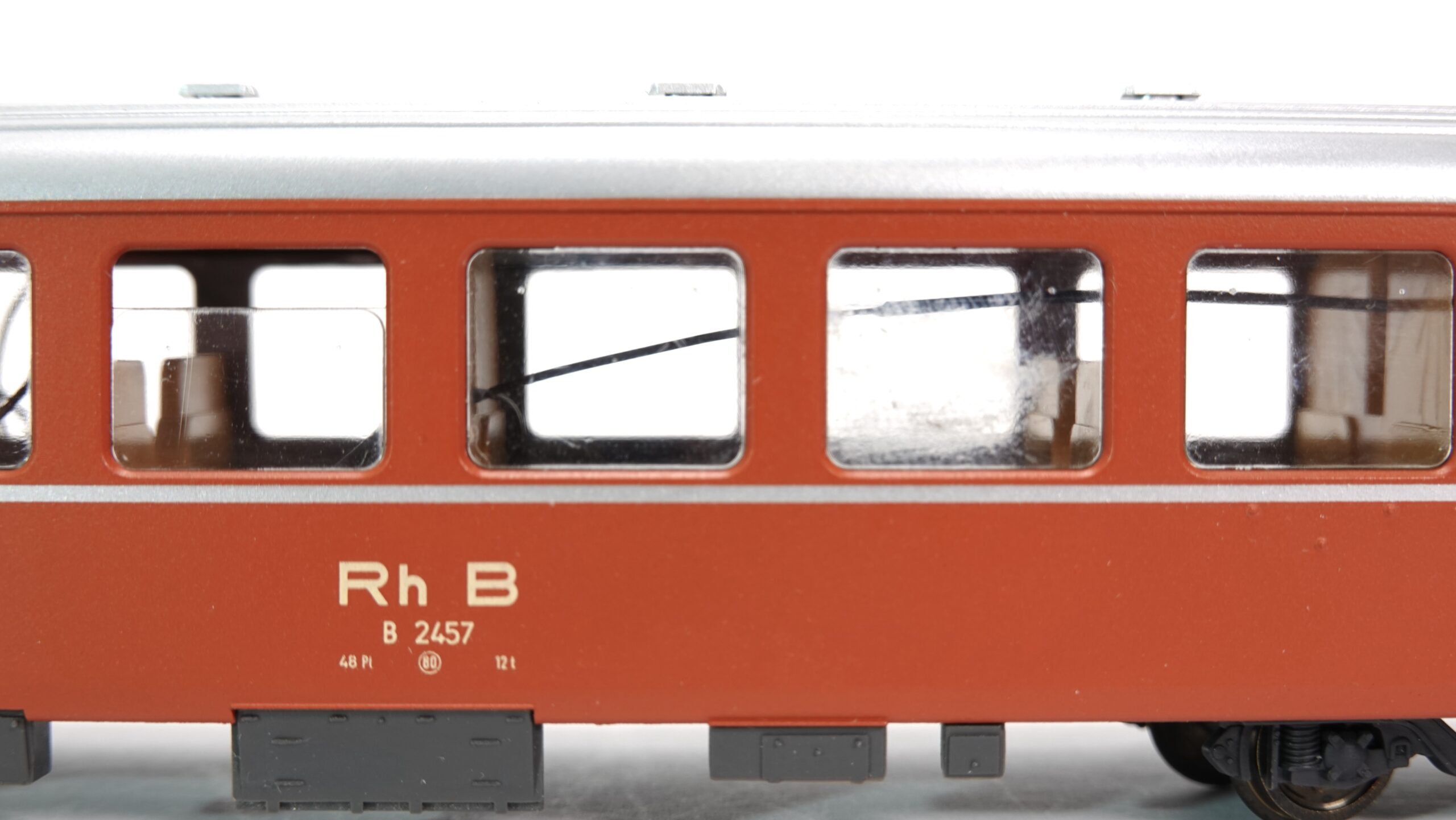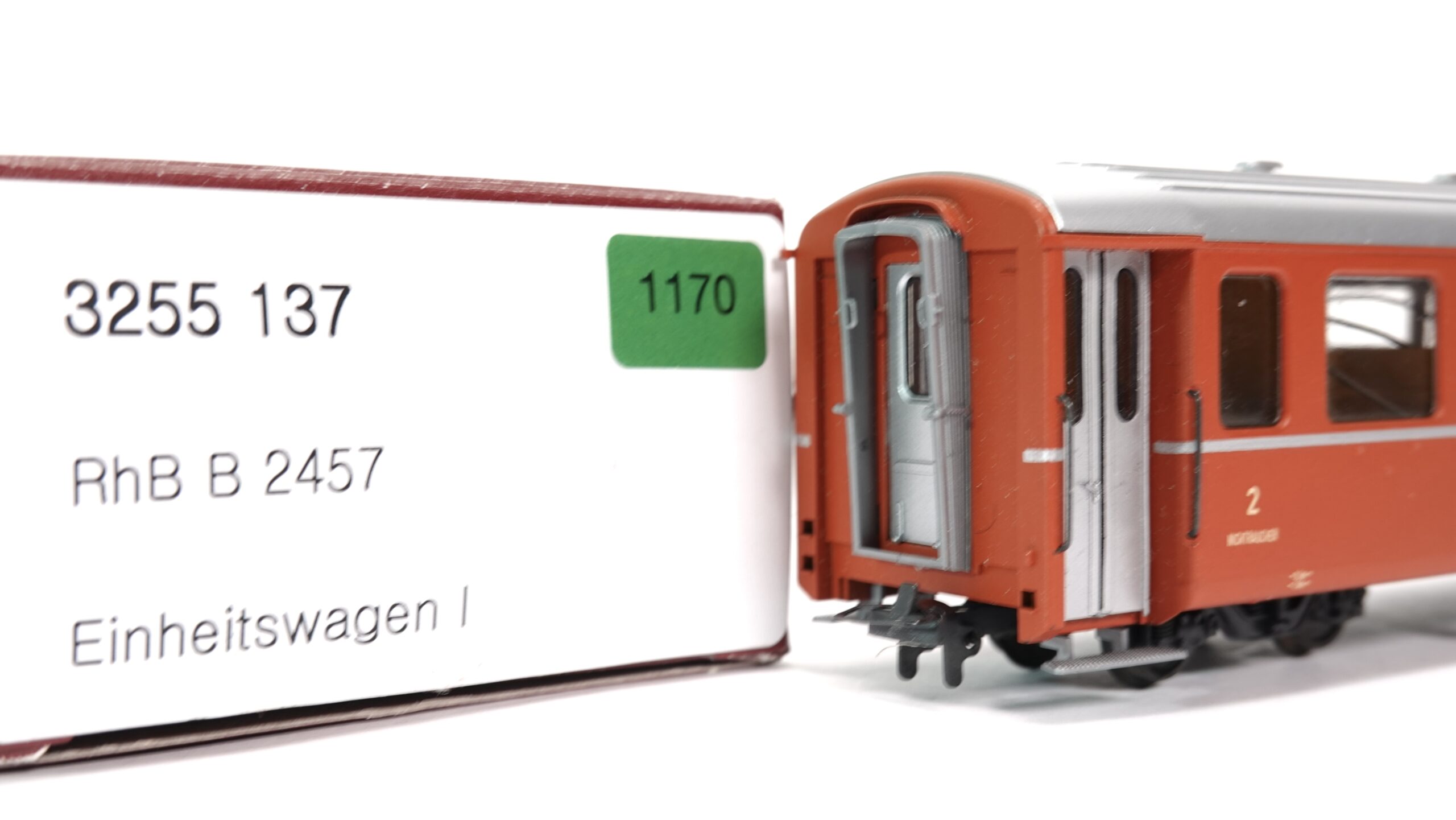 - Originalgetreue Farbgebung: Der Wagen ist in den originalen Farben der Rhätischen Bahn lackiert, was ihm ein authentisches Aussehen verleiht.