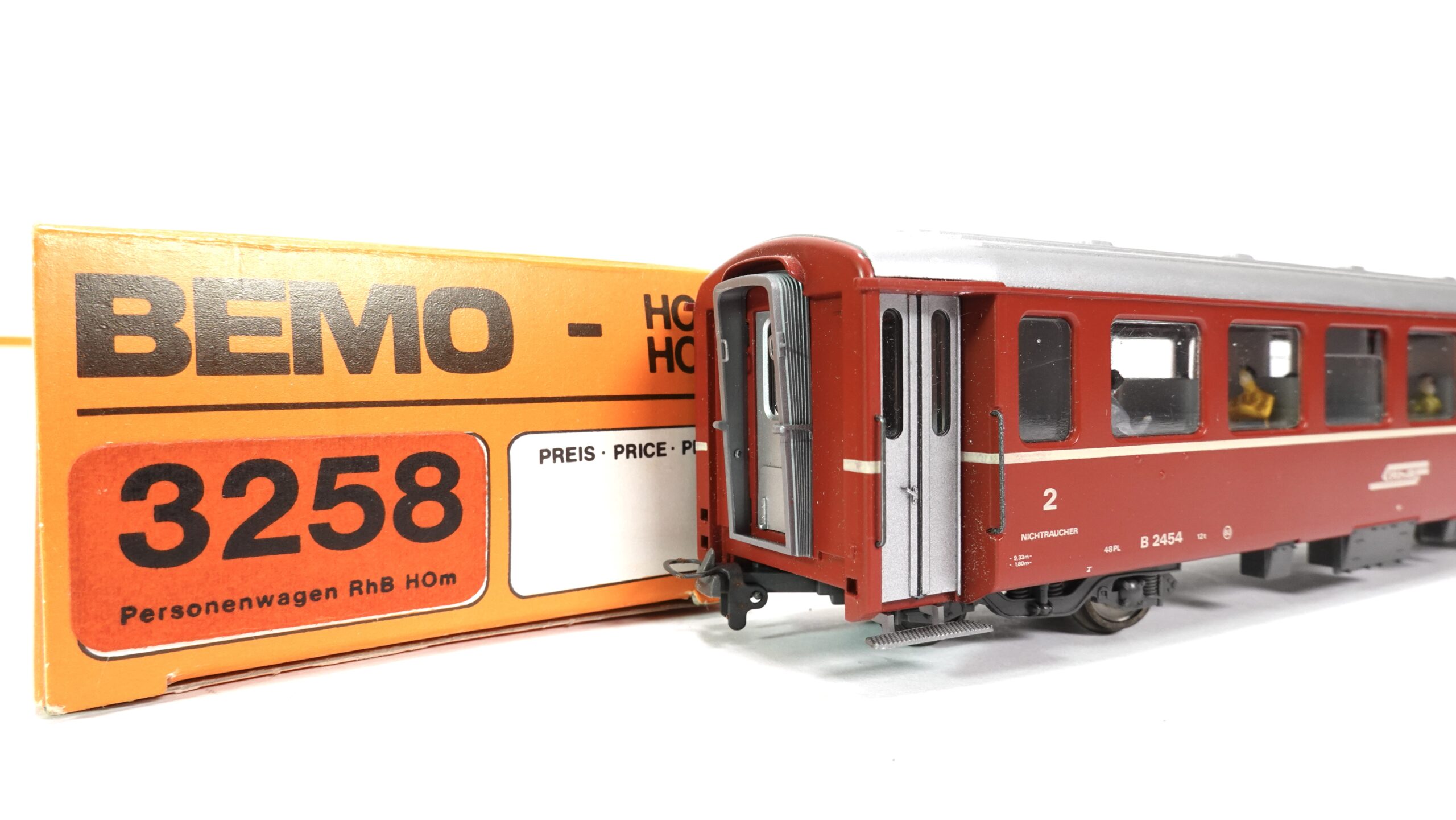 Bemo 3280 H0m RhB Personenwagen 2. Kl rot 2454 mit Figuren | A0473