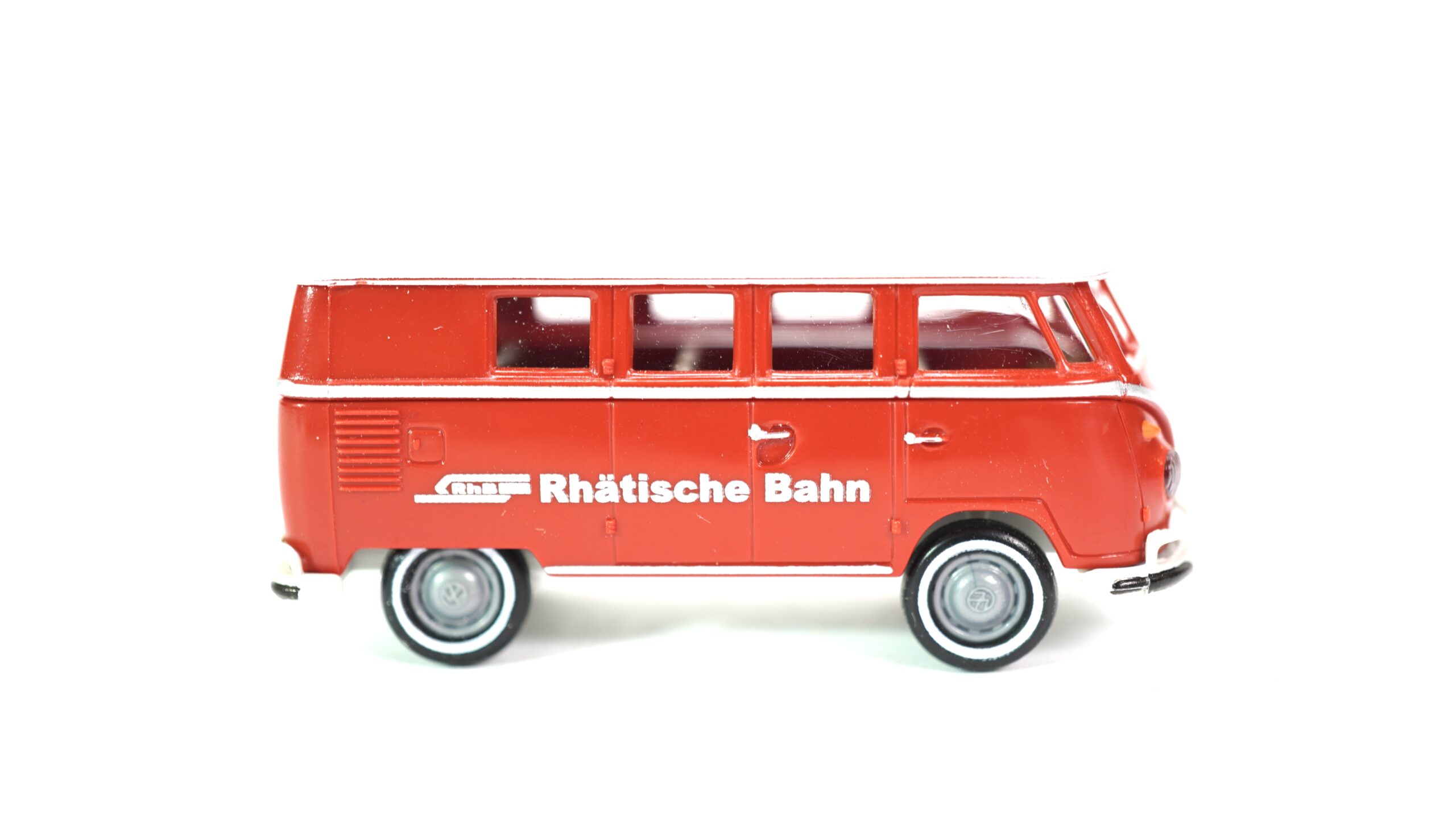 In der charakteristischen Gestaltung der Rhätischen Bahn verkörpert der VW T1b den funktionalen Charme dieser Epoche. Das Fahrzeug steht sinnbildlich für den Alltag hinter den großen Panorama-Zügen – für die Menschen, die im Hintergrund arbeiten und den Betrieb am Laufen halten. Es ergänzt Bahnhofs- und Betriebsszenen authentisch und bringt ein Stück Schweizer Eisenbahnromantik auf jede Anlage.