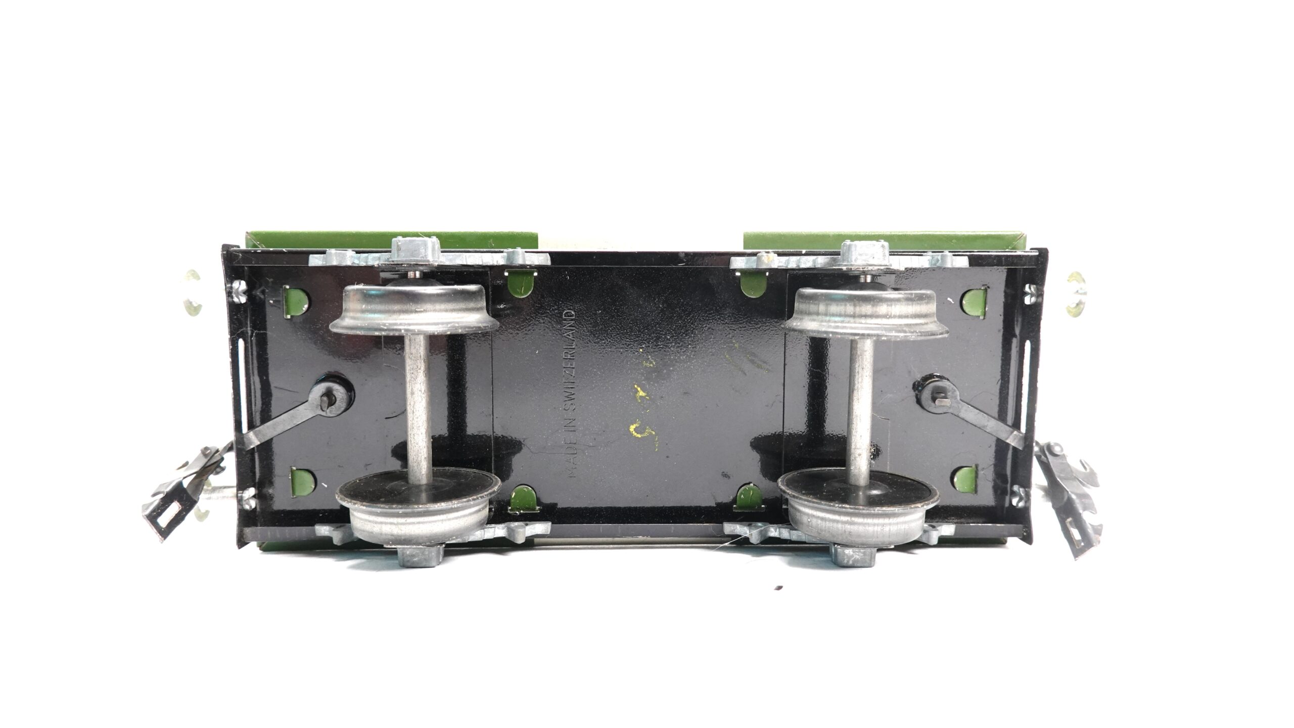 Die markante grüne Farbgebung unterstreicht den historischen Charakter dieser Wagen. In dieser Farbvariante waren zahlreiche Güterwagen im 20. Jahrhundert im Einsatz und prägten das Bild langer, gemächlich rollender Güterzüge durch alpine Landschaften, entlang von Seen und durch enge Täler. Hochbordwagen zeichneten sich durch ihre erhöhten Seitenwände aus, die lose Ladung sicherten und vielseitige Einsatzmöglichkeiten boten. Genau diese robuste und funktionale Bauart machte sie zu einem unverzichtbaren Bestandteil des Güterverkehrs.