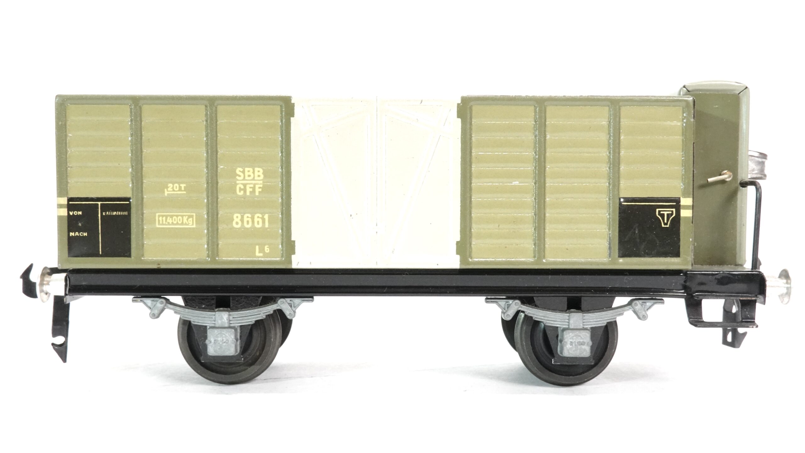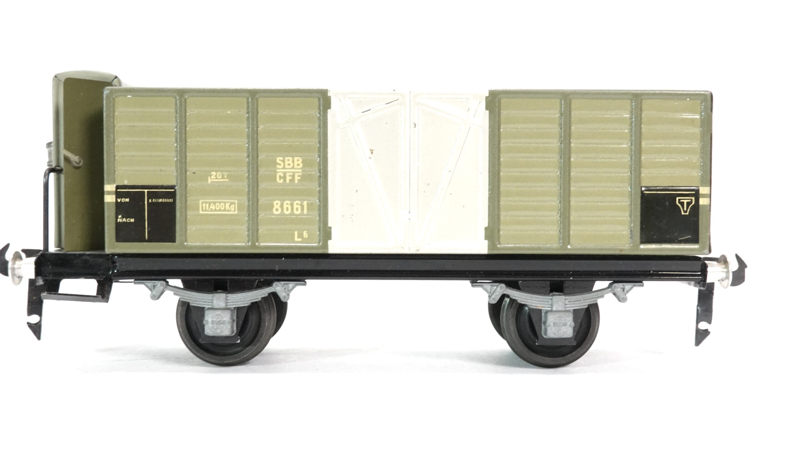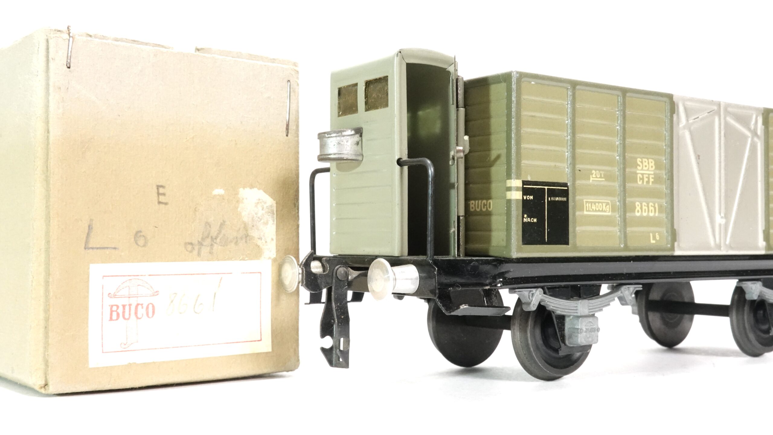 Der Buco 8661 0 SBB Hochbordwagen L6 grau zeichnet sich durch seine hohe Seitenwand aus, die ihn ideal für den Transport von schweren Gütern macht. Die detaillierten Beschriftungen und Logos der SBB verleihen dem Modell einen authentischen Look und machen es zu einem begehrten Sammlerstück. Die robuste Bauweise garantiert eine lange Lebensdauer und sorgt dafür, dass der Wagen auch bei intensiver Nutzung seine Form und Funktionalität behält.