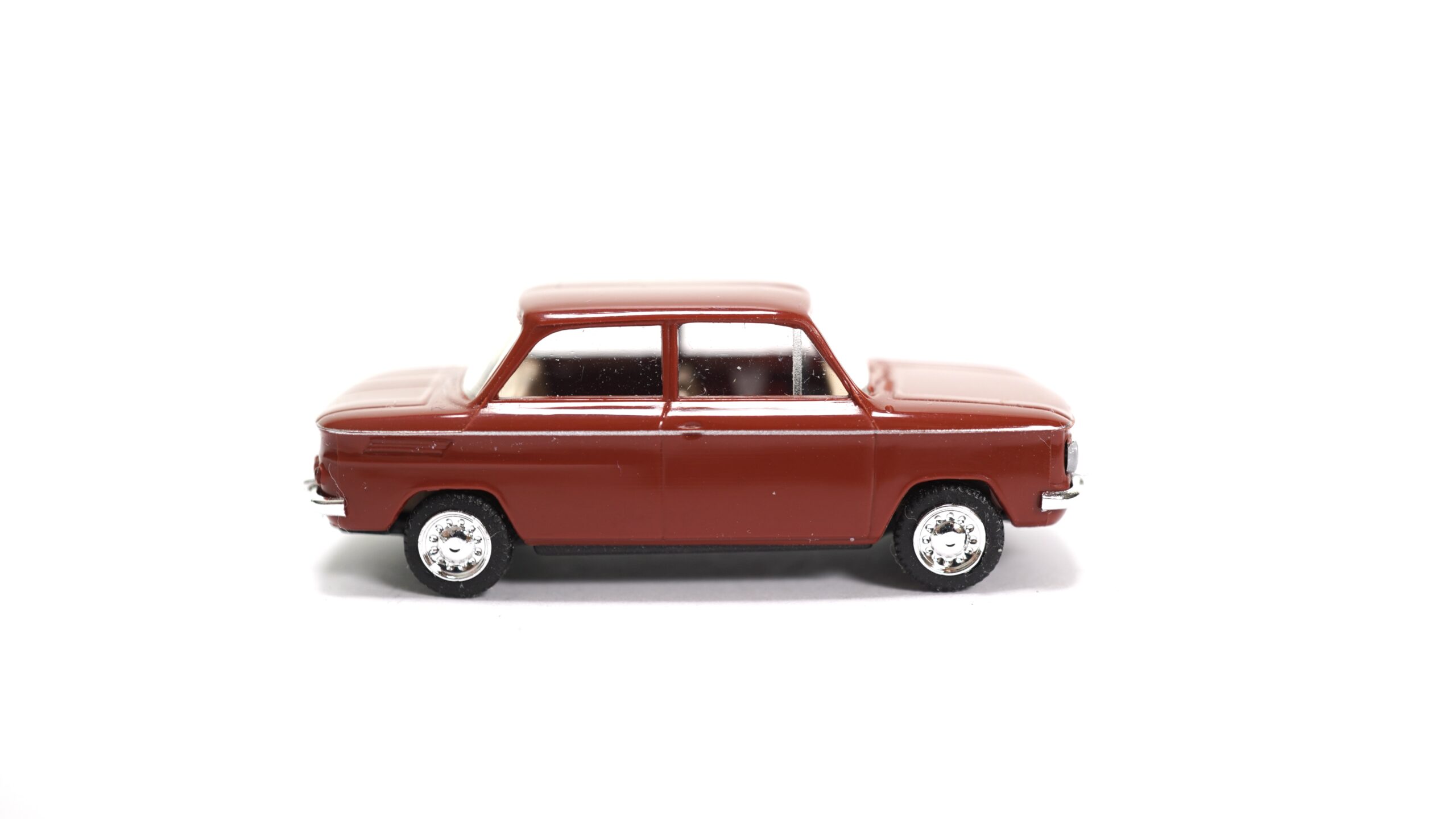 Der Busch NSU 1000 TT steht wie kaum ein anderes Fahrzeug für die sportliche Aufbruchsstimmung der 1960er Jahre. Mit seiner markanten Linienführung, dem kompakten Aufbau und der selbstbewussten Front verkörpert der NSU 1000 TT den Zeitgeist einer Ära, in der Fahrspaß, Dynamik und Individualität immer wichtiger wurden. Die dunkelrote Lackierung unterstreicht dabei den sportlichen Charakter und verleiht dem Klassiker eine besonders edle und kraftvolle Ausstrahlung.