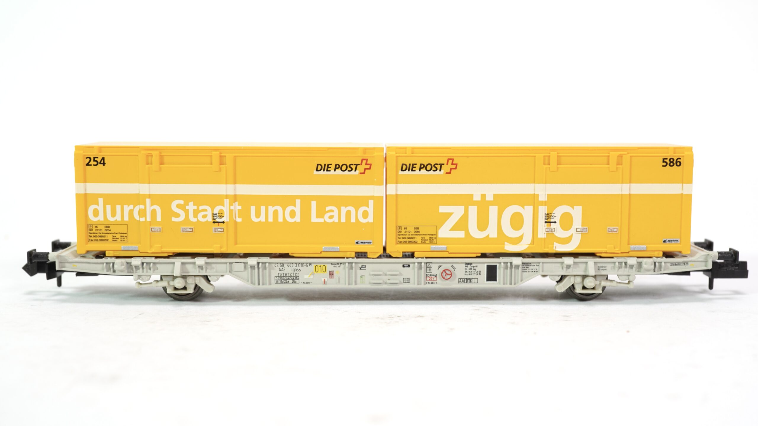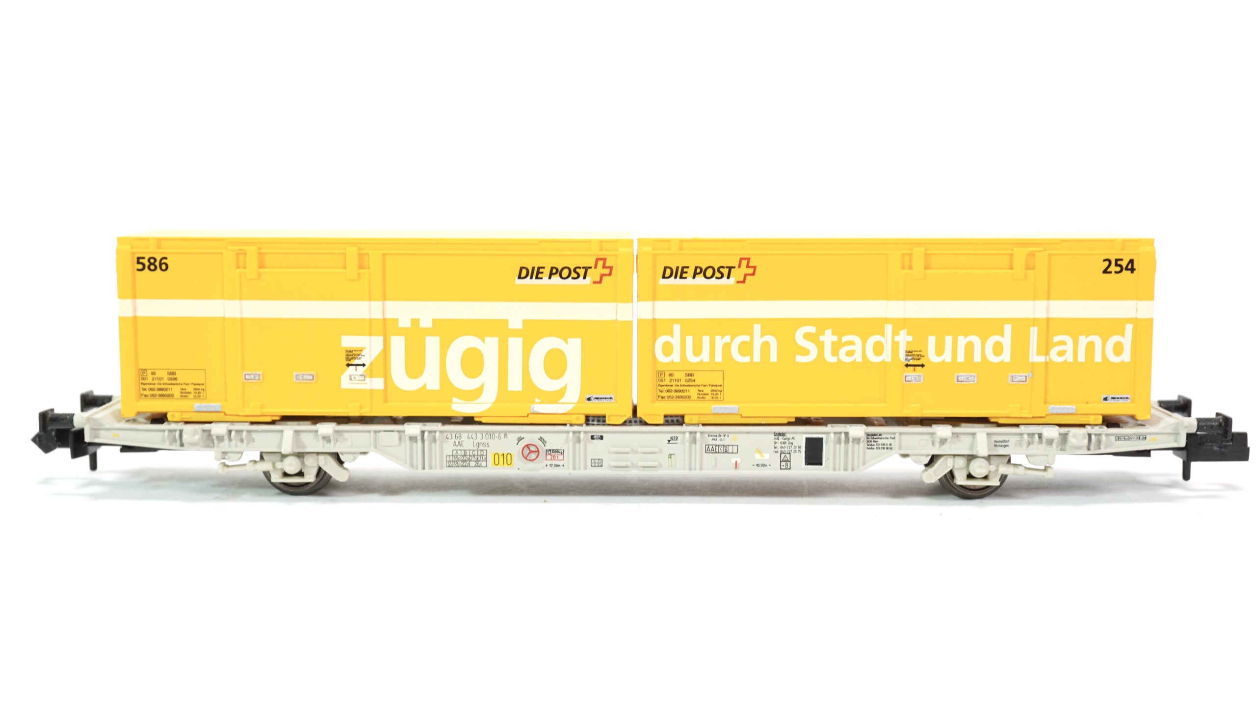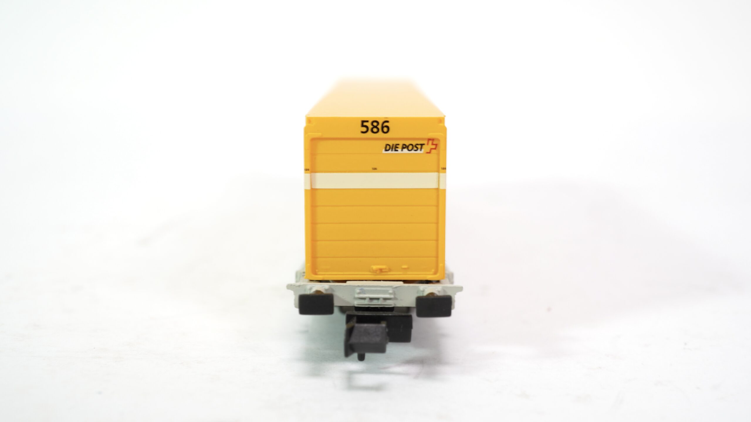 Egal ob als einzelner Wagen oder Teil eines längeren Containerverbands: Dieses Modell weckt nostalgische Bilder der schweizerischen Postzüge, die jahrzehntelang zuverlässig ihre gelbe Fracht durchs Land transportierten. Ein kleines, aber charakterstarkes Stück Bahnromantik für jede Sammlung.