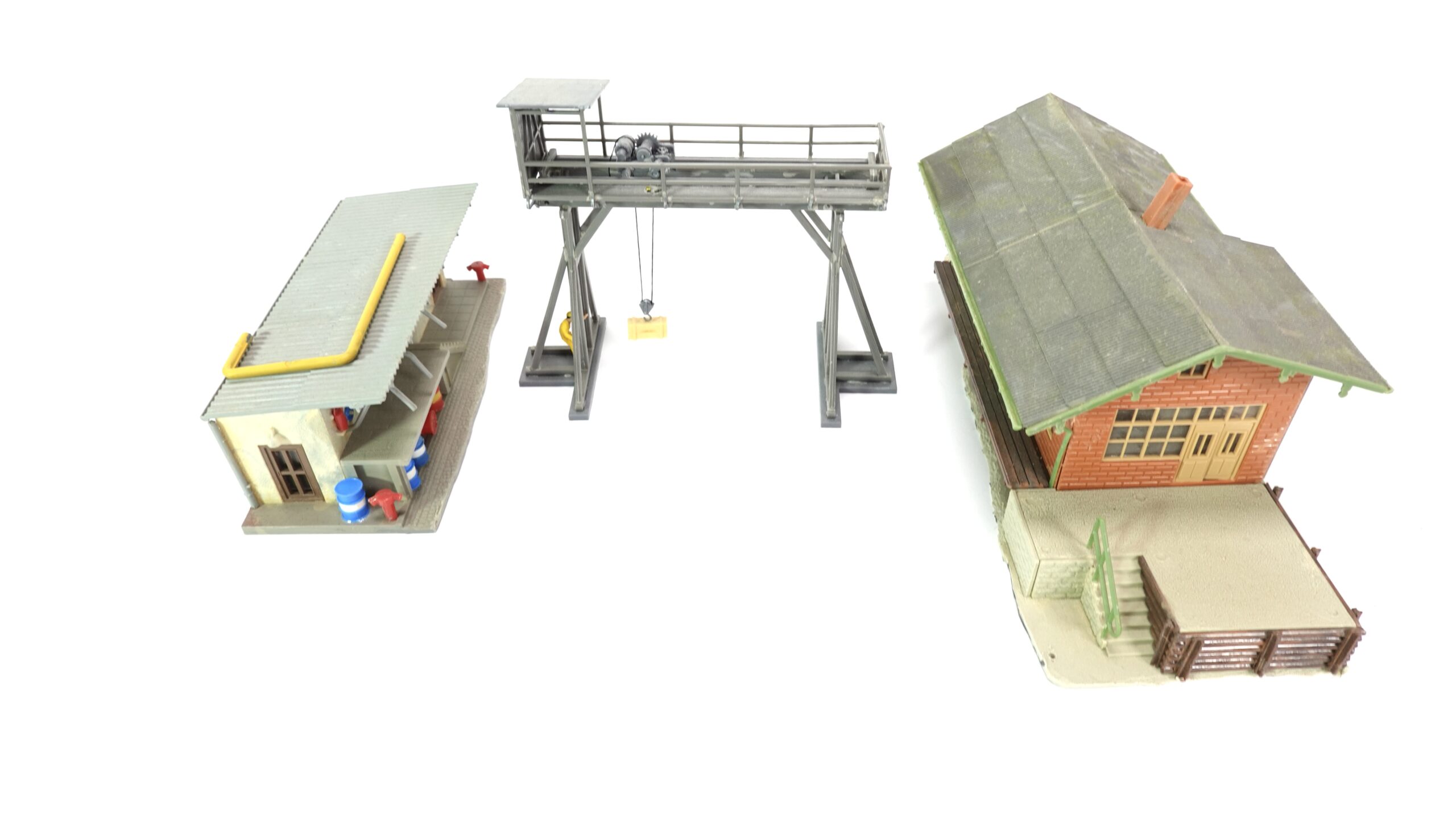 • Typ: Logistikgebäude, Schuppen, Lagerhalle, Bockkran (Faller, Vollmer, Piko)