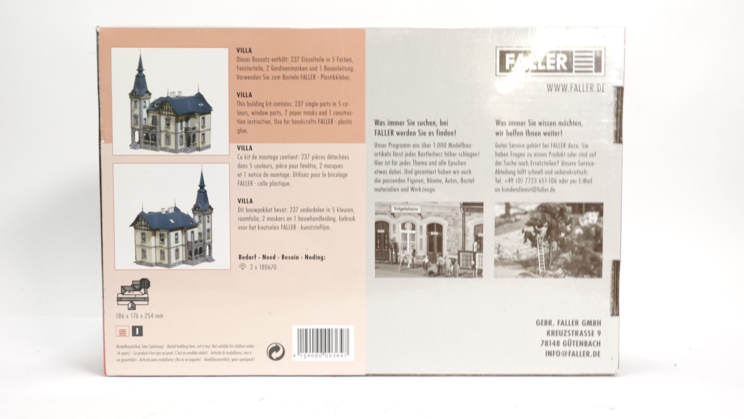 - Hochwertige Materialien: Hergestellt aus robusten und langlebigen Materialien, garantiert die Faller 130364 Villa eine lange Lebensdauer und Stabilität.