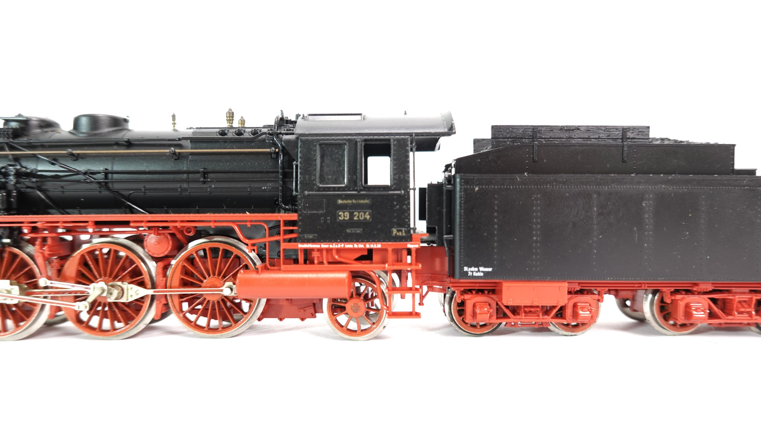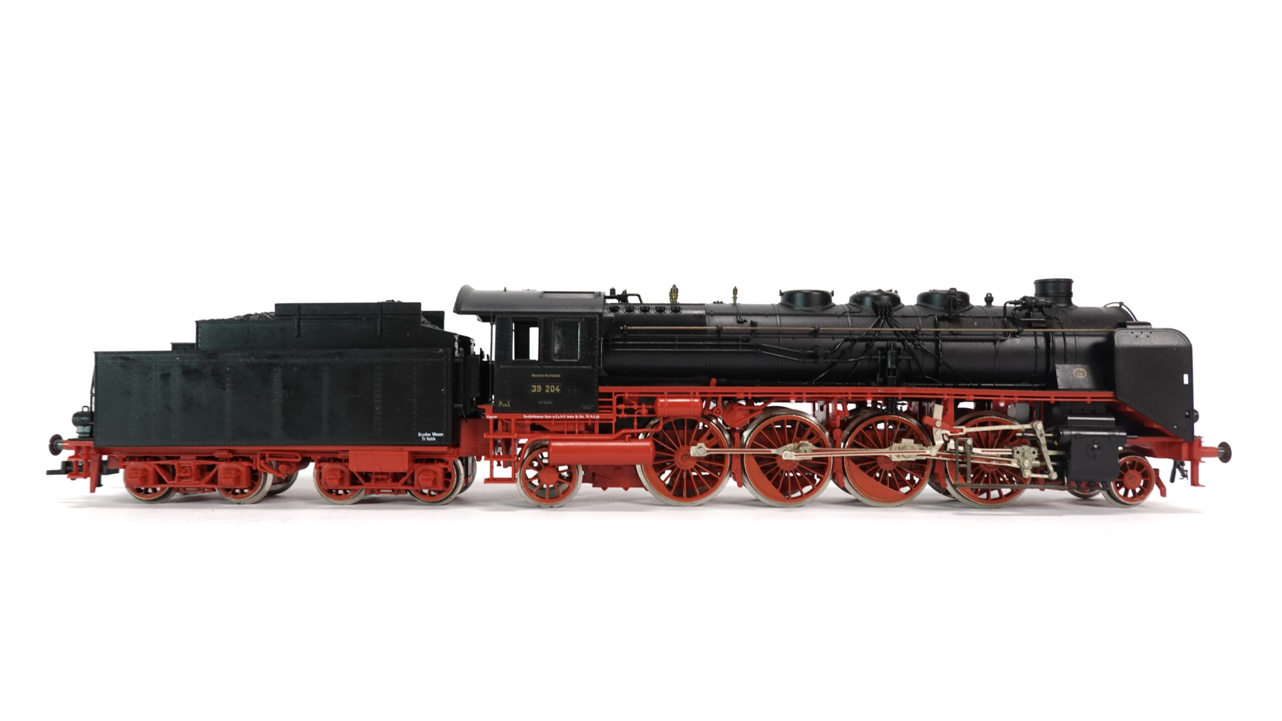 Die Fleischmann 4139 H0 DRG BR 39 204 repräsentiert eine eindrucksvolle Epoche der deutschen Eisenbahngeschichte – die Zeit der Deutschen Reichsbahn-Gesellschaft (DRG) in den 1930er Jahren. Die zugrunde liegende Lokomotive, die Baureihe 39, war eine Weiterentwicklung der preußischen P 10 und diente primär dem schweren Personenzugdienst auf Hauptstrecken. Mit ihrer markanten Bauweise und eleganten Linienführung verkörperte sie den technischen Fortschritt und die gestiegene Leistungsfähigkeit der Dampfloktechnik in der Weimarer Zeit.