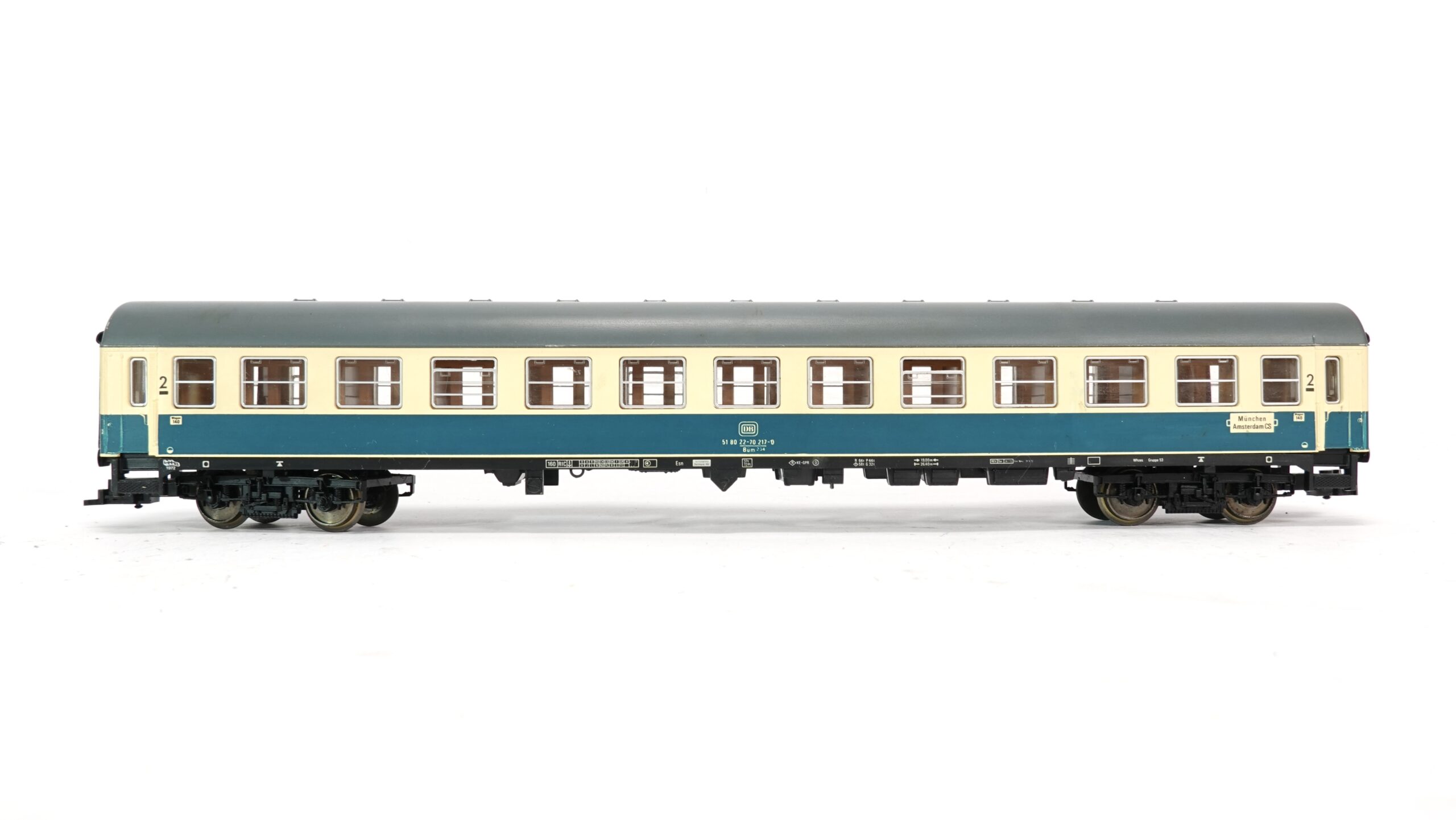 Der Fleischmann 5192 Intercity-Wagen ist ein hochwertiges Modell mit feinen Gravuren, detaillierten Drehgestellen und einer exakten Umsetzung der DB-Farbgebung der Epoche IV. Dank der NEM-Kupplungsaufnahme mit Kurzkupplungskulisse lässt sich der Wagen einfach und sicher in bestehende Intercity-Züge einfügen. Zudem kann er mit einer Innenbeleuchtung nachgerüstet werden, was ihn besonders auf Anlagen mit Nachtbetrieb attraktiv macht.