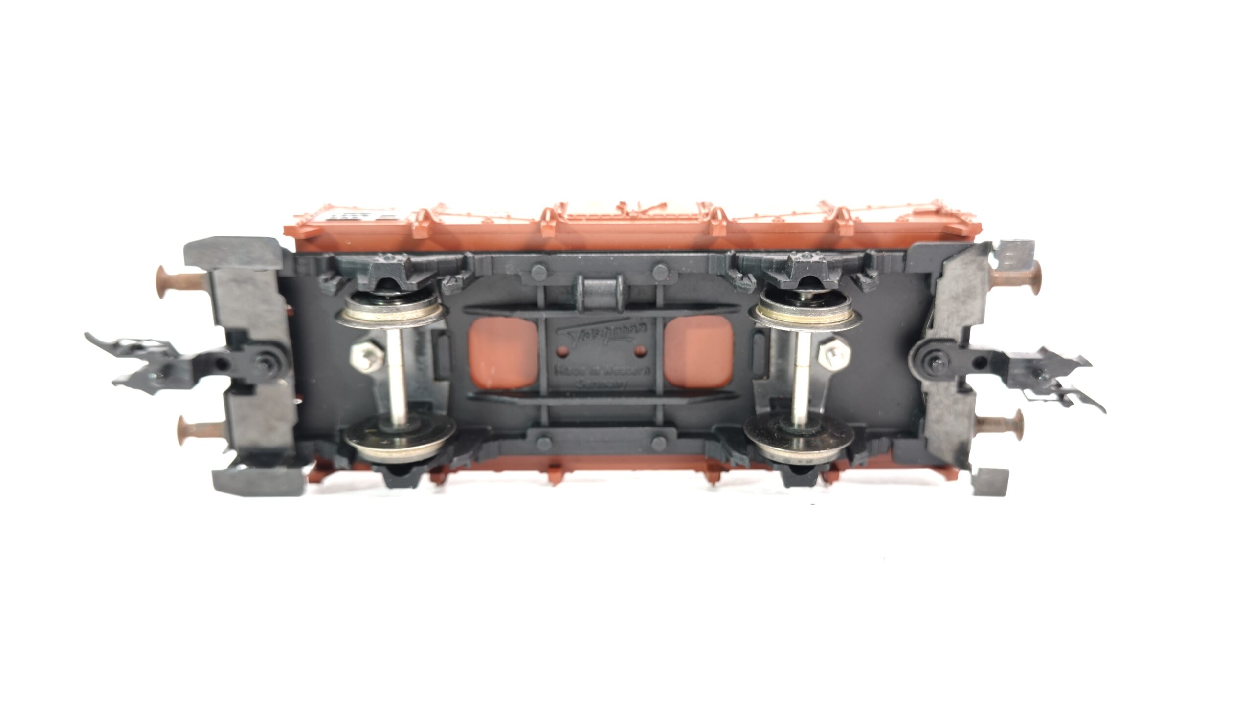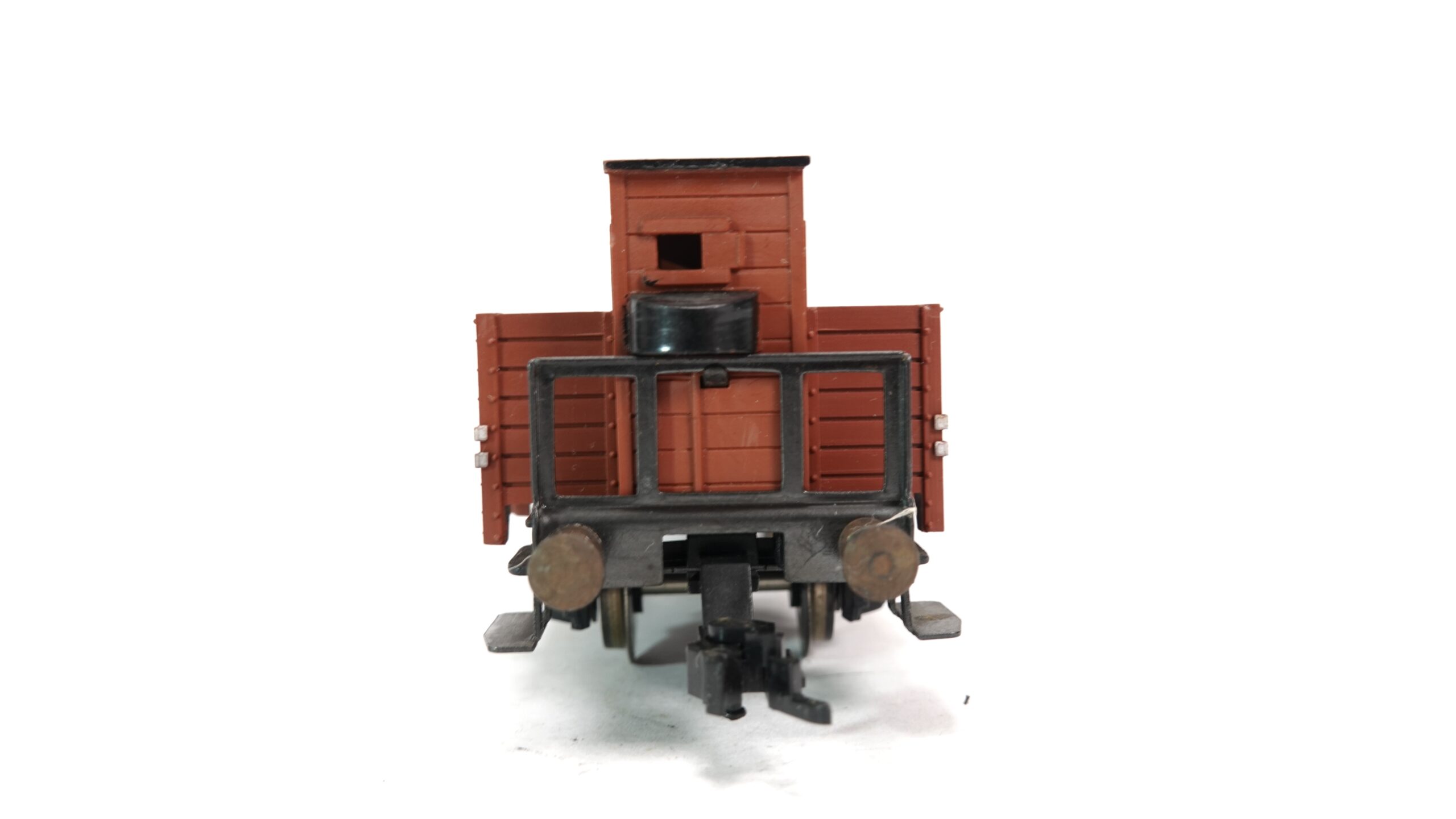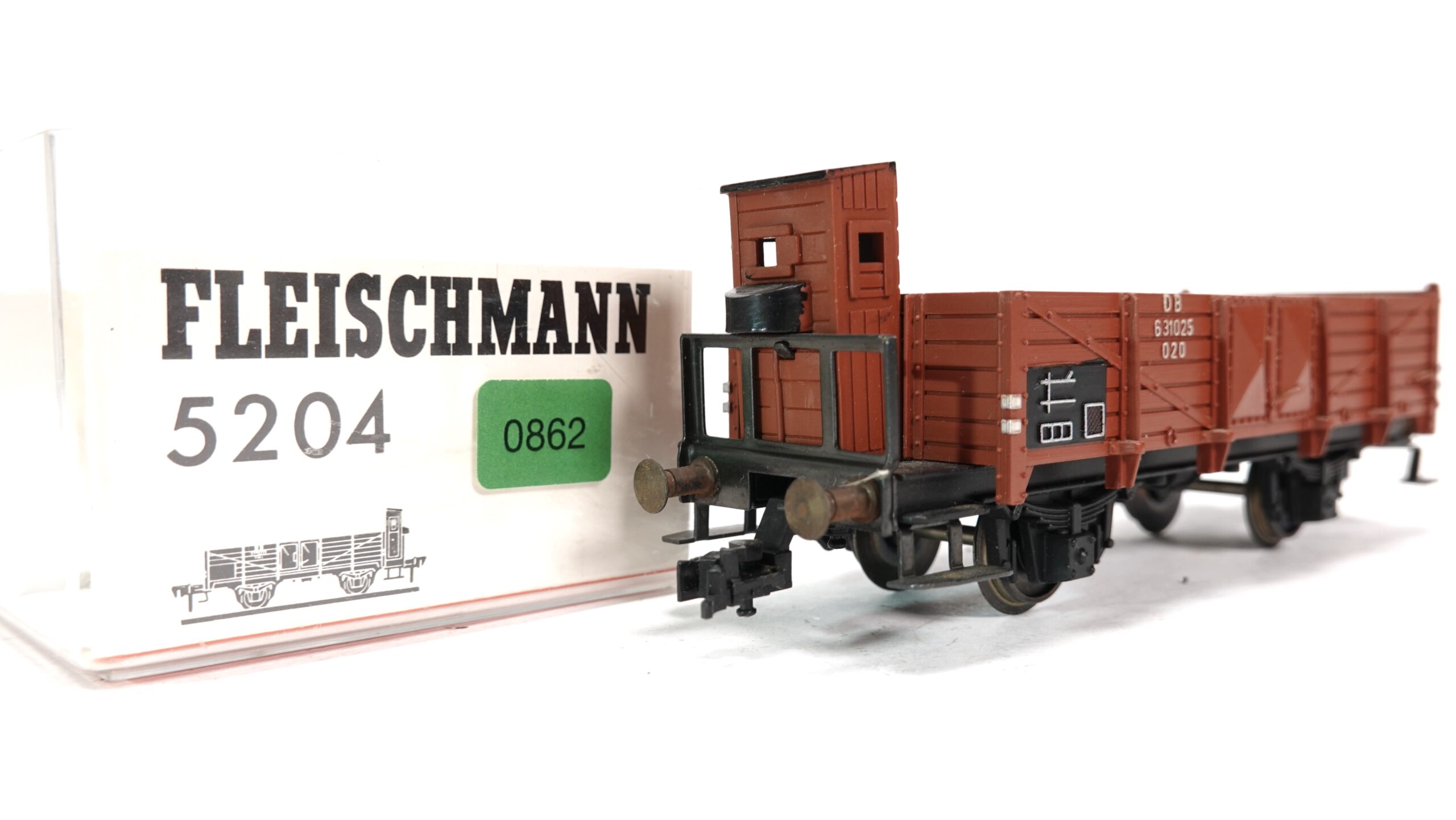 Dieses Modell ist in einem authentischen, rostbraunen Farbton gehalten und zeigt feinste Nachbildungen von Holzplanken-Strukturen, Verstrebungen und Scharnieren. Besonders auffällig ist das Bremserhaus am Wagenende, das typisch für ältere Güterwagen der DB ist und dem Modell einen historischen Charakter verleiht. Die Bedruckung ist gestochen scharf, inklusive der Wagennummer „631025 020“ und weiteren originalgetreuen Betriebskennzeichnungen.