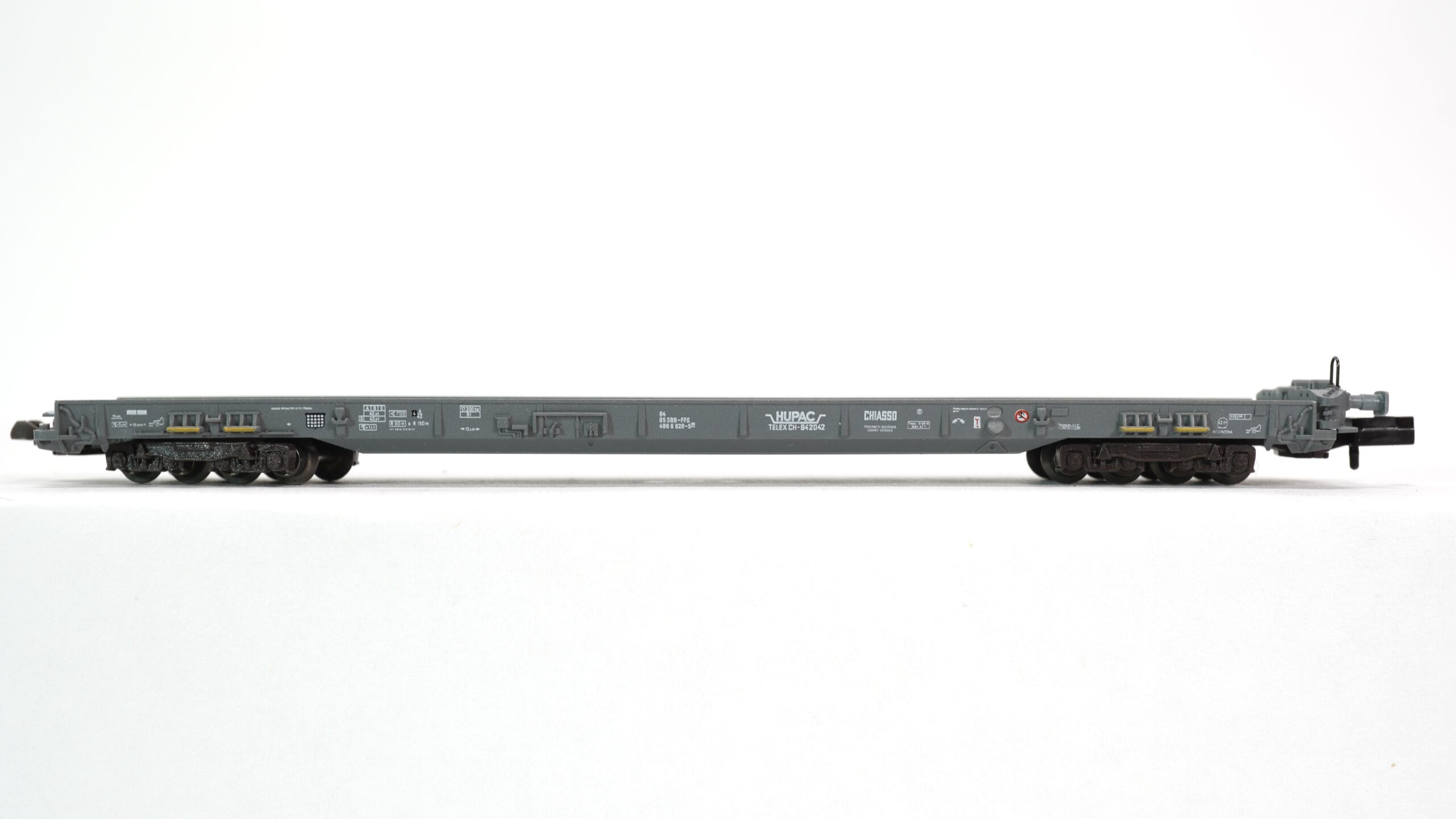 Der Fleischmann 827008 N SBB Zug Rollende Landstrasse 12 Wagen | A0149 ist ein beeindruckendes Modell, das die besondere Faszination der „Rollenden Landstrasse“ in Miniaturform erlebbar macht. Die Rollende Landstrasse ist ein einzigartiges Verkehrskonzept, das seit Jahrzehnten in der Schweiz und Europa für Effizienz im Gütertransport steht: Lkw-Fahrzeuge werden direkt auf Waggons verladen und über weite Strecken mit der Bahn transportiert. Dieses Prinzip verbindet Flexibilität der Straße mit der Kraft und Umweltfreundlichkeit der Schiene.