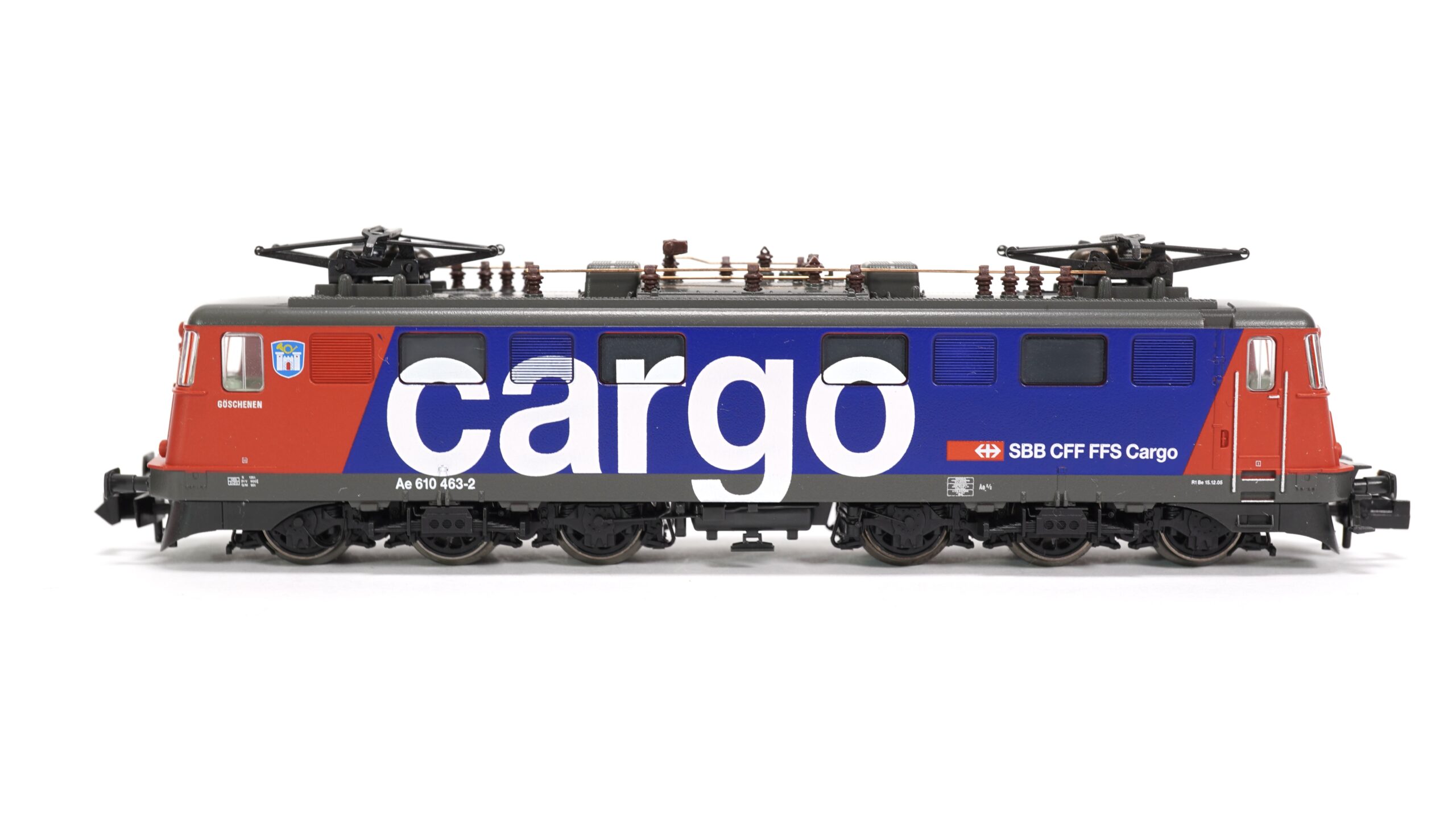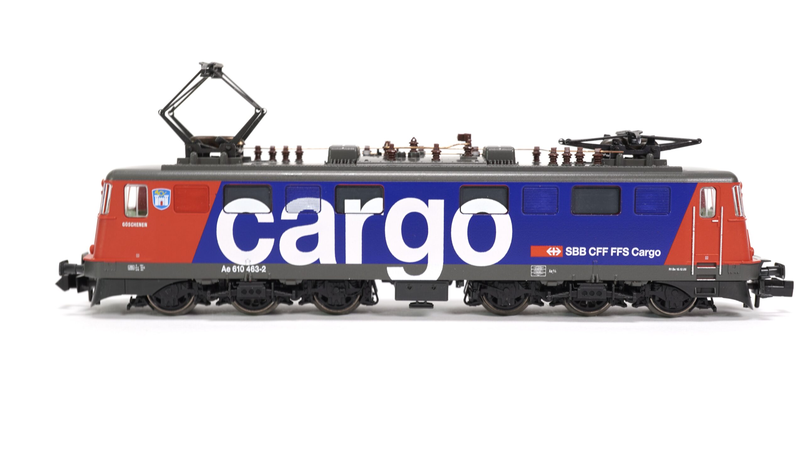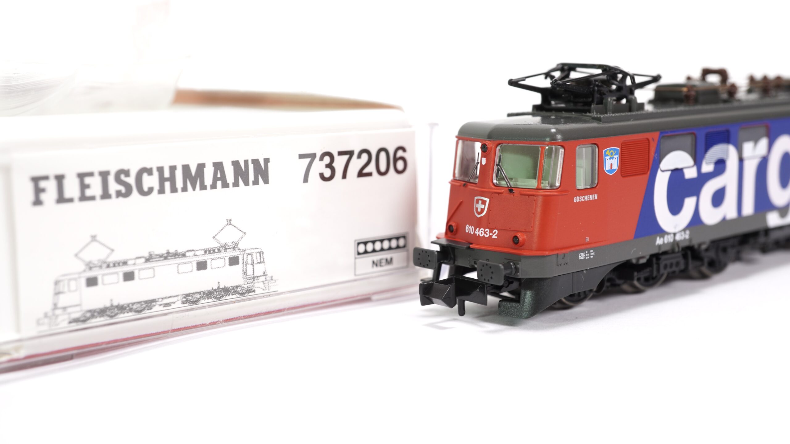 Die Lokomotive Ae 610 „Göschenen“ trägt stolz den Namen einer Gemeinde am Nordportal des Gotthardtunnels. Dieser traditionsreiche Name steht sinnbildlich für die technische Meisterleistung und die enge Verbindung zwischen Bahn und Alpenregion. Mit ihrem markanten Design, der kraftvollen Präsenz und dem typischen Schweizer Rot-Blau der Cargo-Ausführung verkörpert sie die moderne Weiterentwicklung des klassischen Lokomotivbaus in der Schweiz.