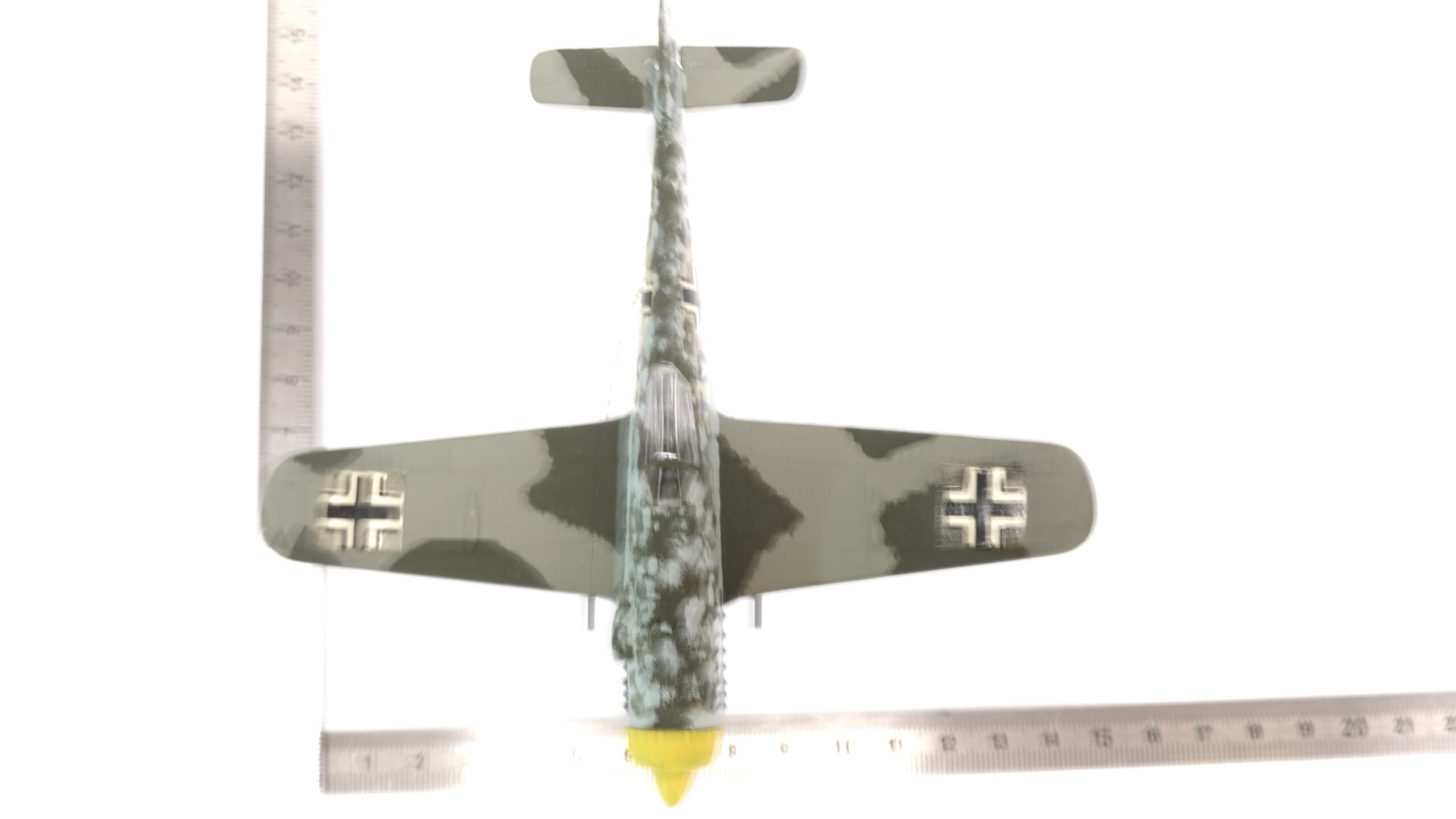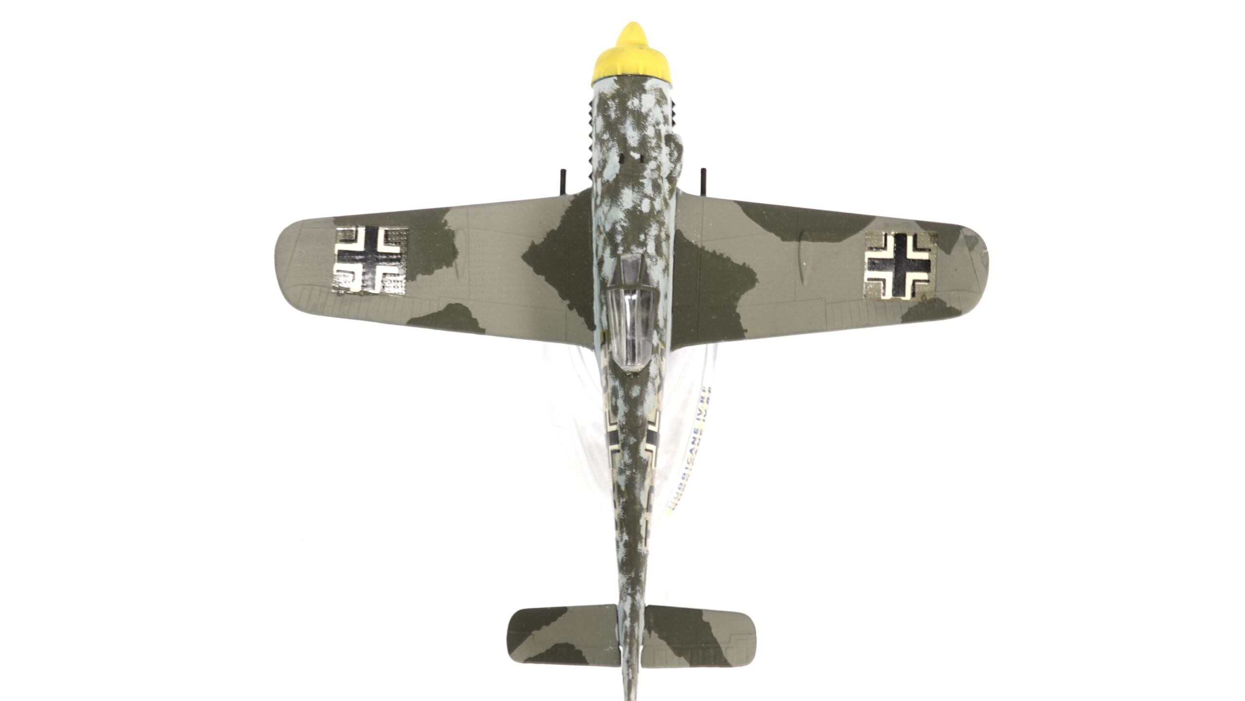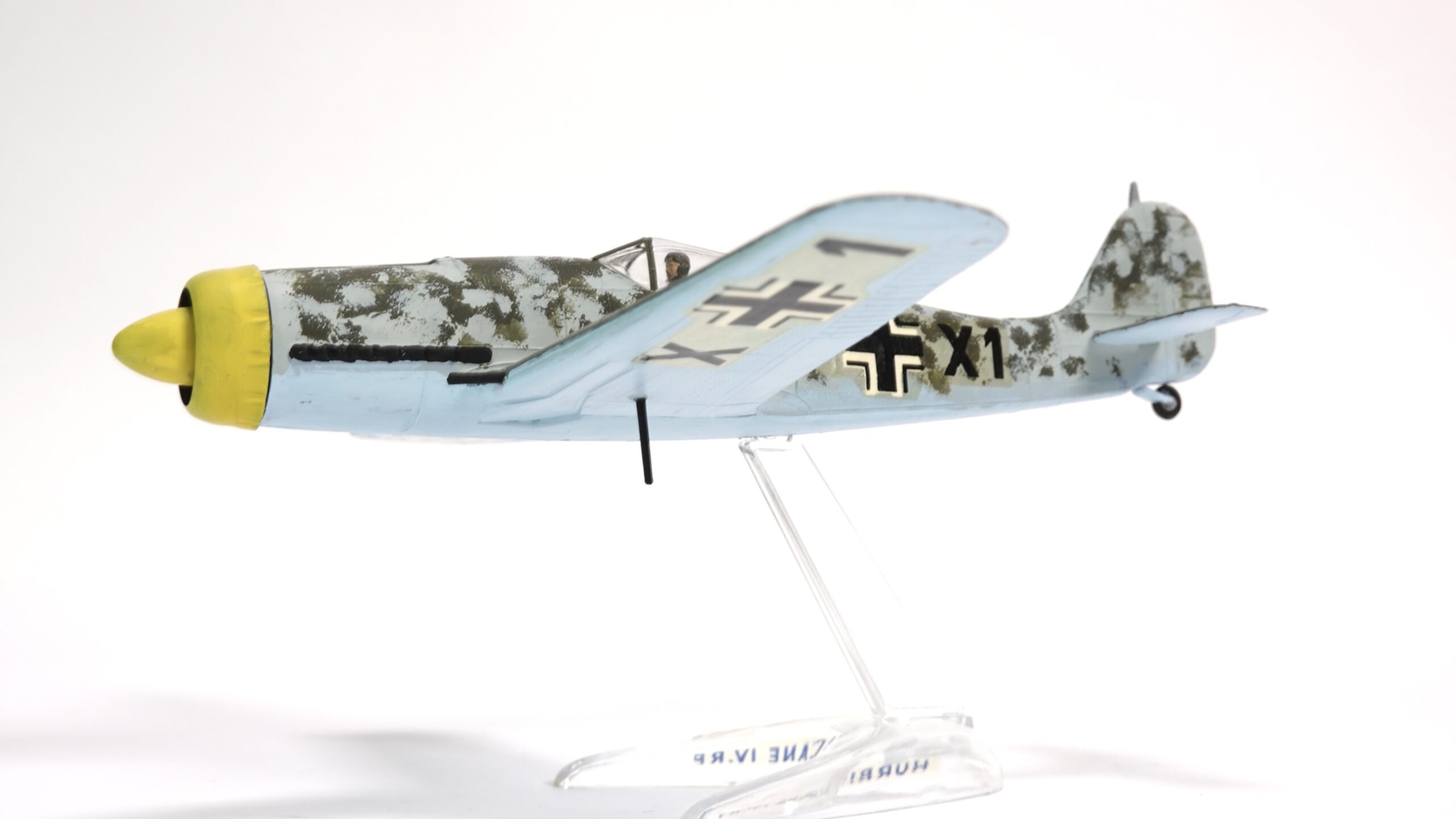 Im Luftkrieg über Europa erwies sich die Fw 190 als äußerst vielseitig. Sie wurde nicht nur als Jagdflugzeug eingesetzt, sondern auch als Jagdbomber, Erdkampfflugzeug und in späteren Versionen sogar als schwerer Jäger gegen alliierte Bomberverbände. Die Wintertarnung auf dem gezeigten Modell deutet auf Einsätze an der Ostfront hin, wo weiße oder helle Lackierungen die Maschinen besser gegen den Schnee tarnten.