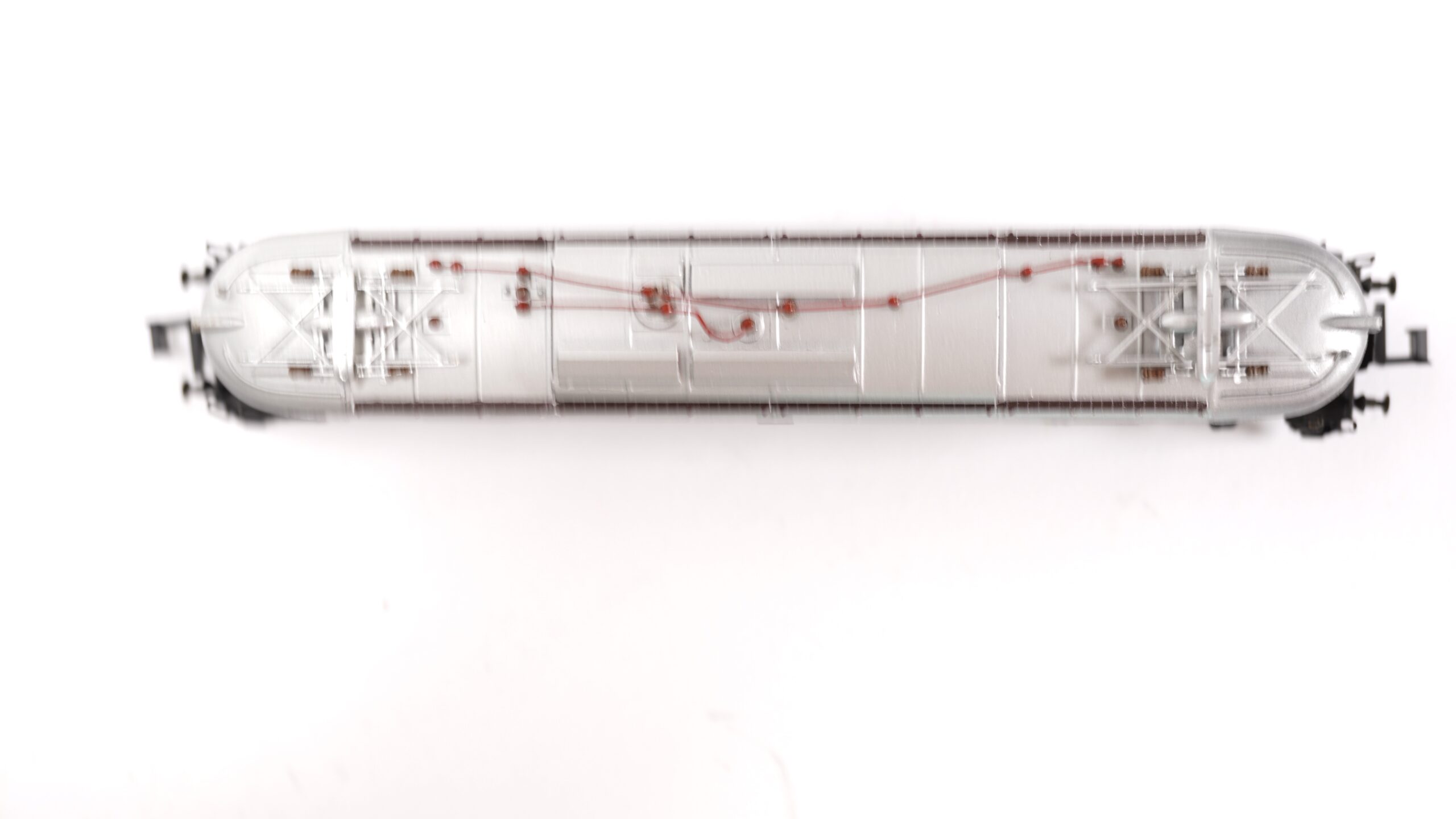Das Modell besteht aus fein detailliertem Messing, ist von Hand lackiert und weist filigran ausgeführte Teile wie Pantografen, Lüftergitter, Dachleitungen und Stromabnehmer auf. Die seitliche Bedruckung ist gestochen scharf und authentisch. Die Lok ist mit funktionstüchtigem Antrieb und Licht ausgestattet (je nach Ausführung ggf. analog oder digital vorbereitet, bitte prüfen). Das Fahrwerk verfügt über präzise gelagerte Achsen, was eine ruhige Laufeigenschaft erwarten lässt.