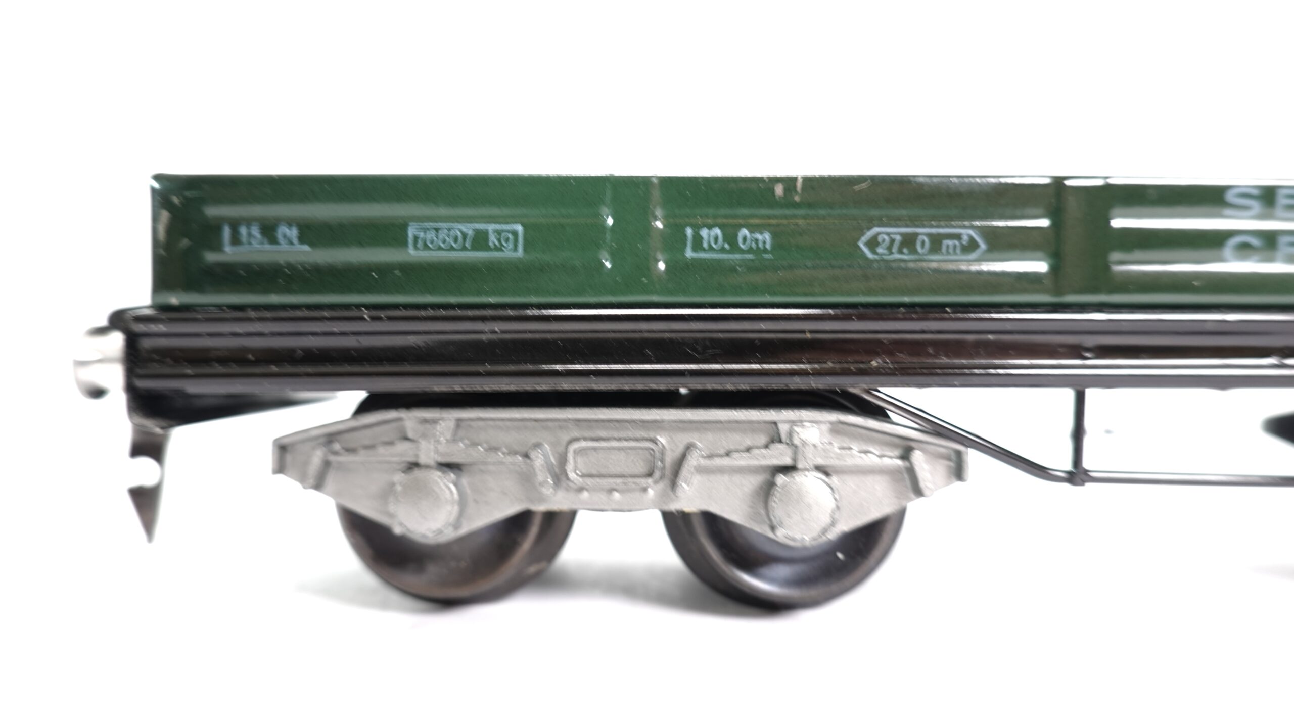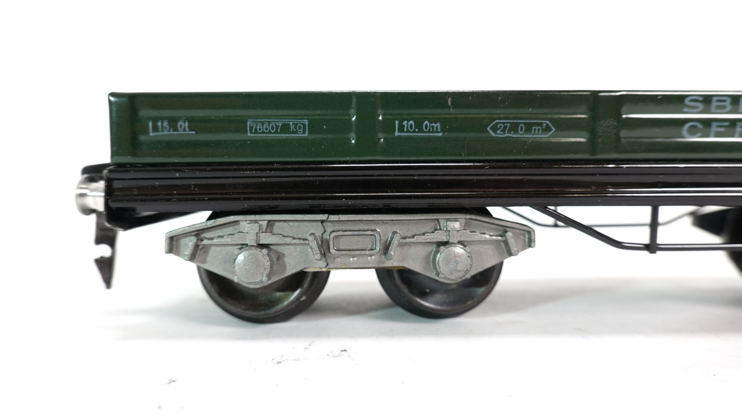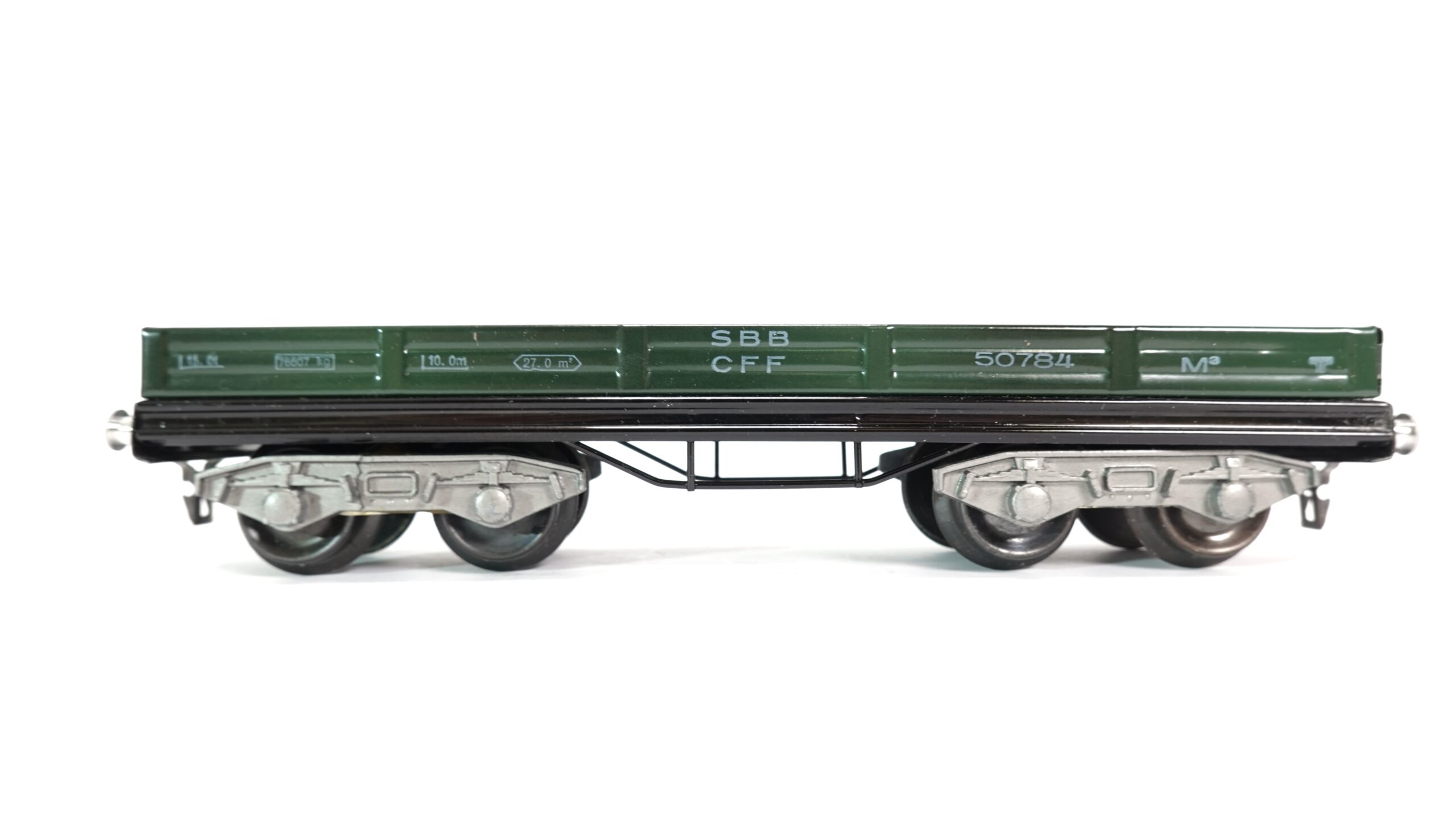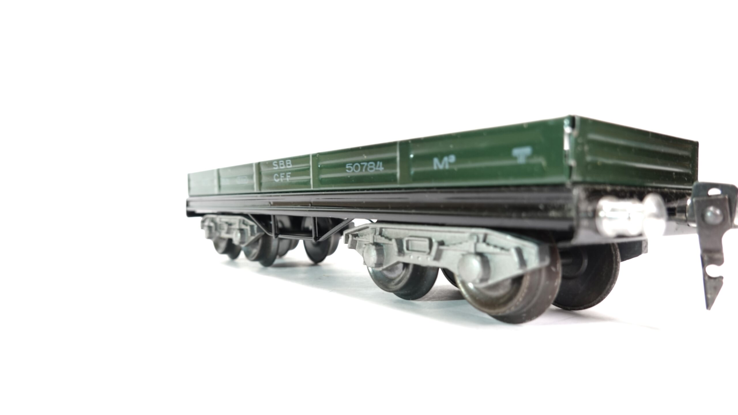 Der Wagen stellt einen typischen Niederbordwagen der Schweizerischen Bundesbahnen (SBB) dar, wie er in der zweiten Hälfte des 20. Jahrhunderts für den Transport von Holz, Maschinen, Palettenware oder auch Schrott verwendet wurde. Die grüne Farbgebung ist zeittypisch und verleiht dem Modell einen nostalgischen Charme. HAG-typisch ist die solide Metallausführung – schwer, langlebig, zuverlässig. Ein Modell, das auch nach vielen Runden auf der Anlage nichts von seiner Stabilität verliert.