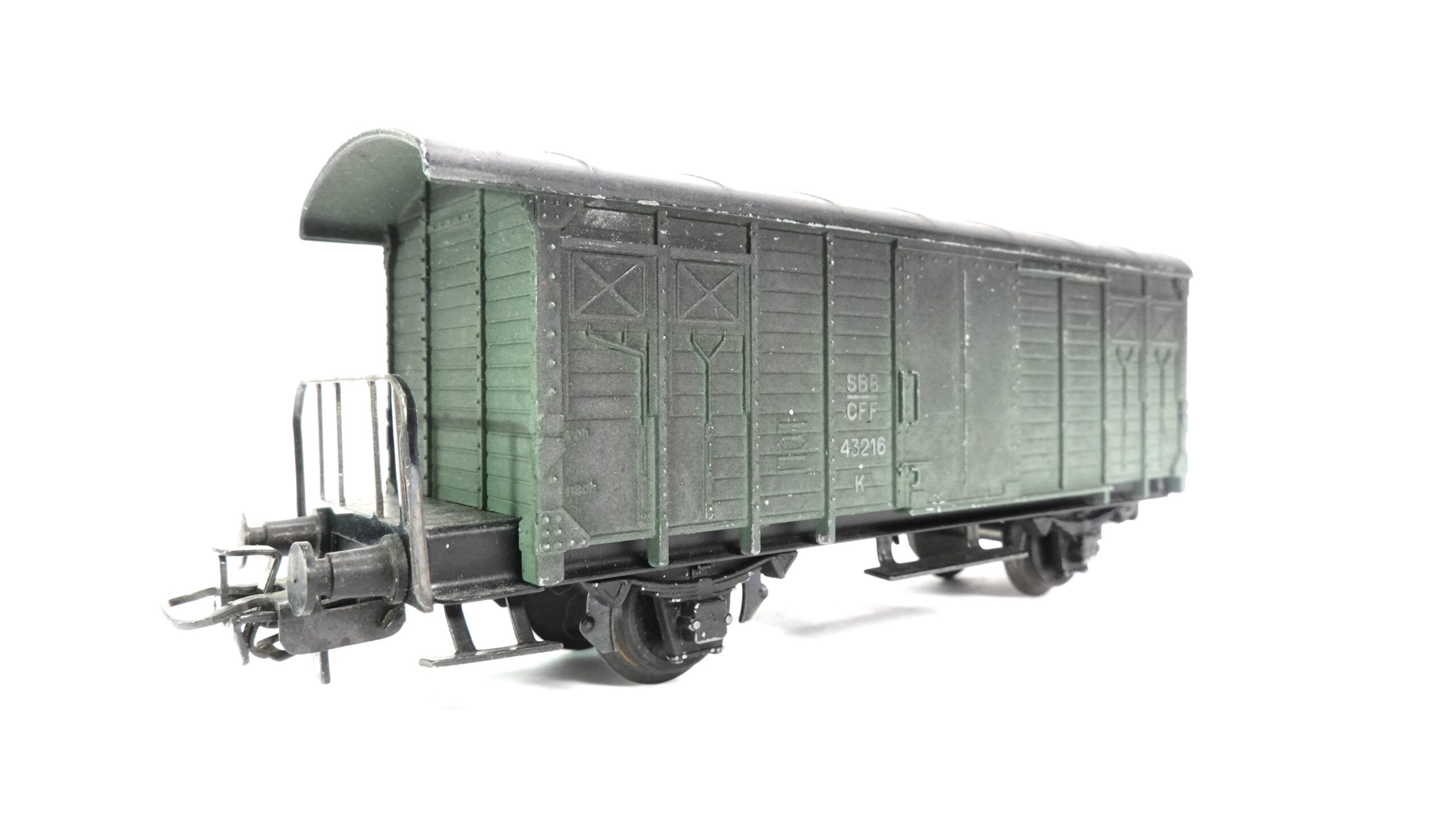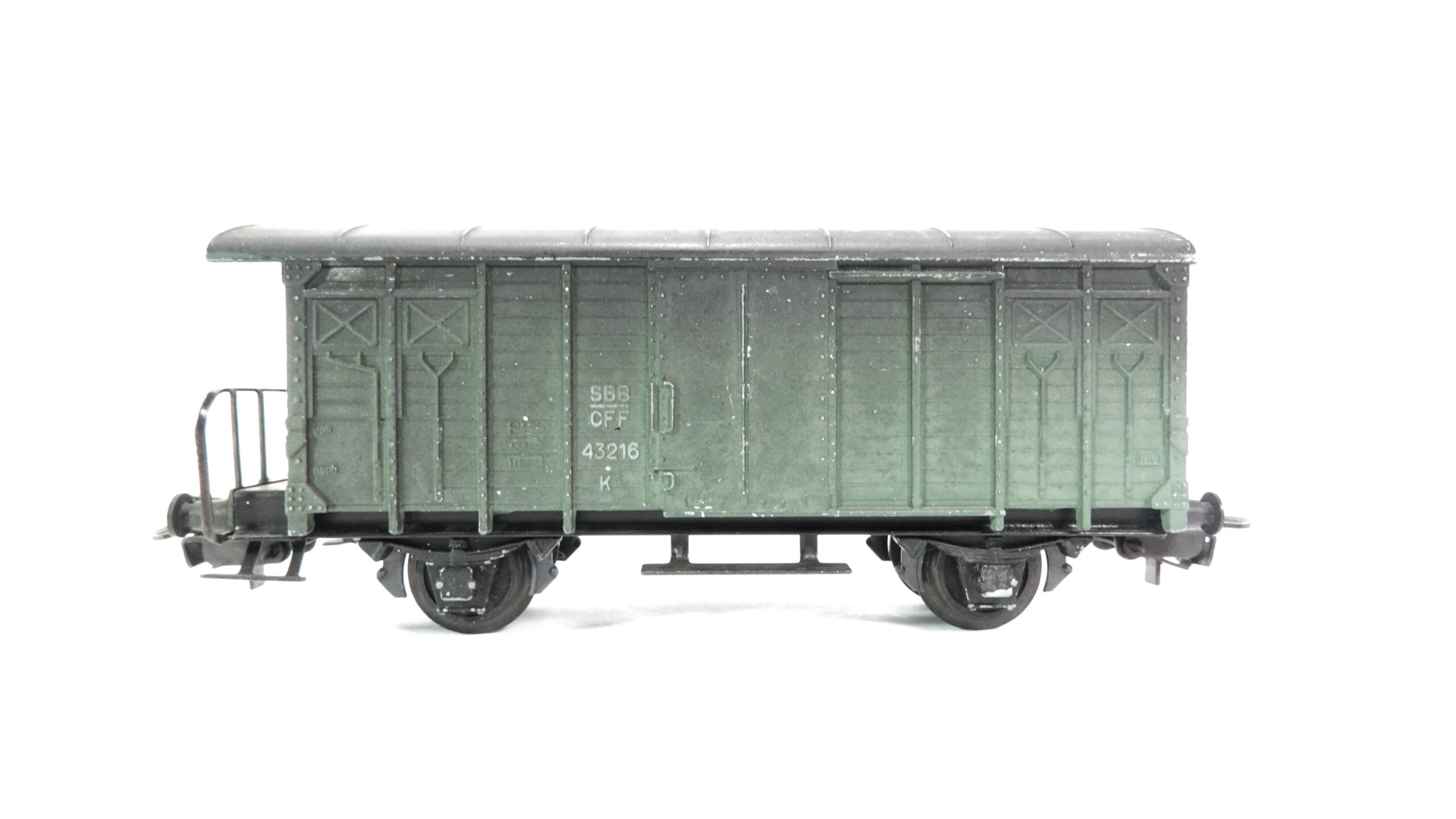 Der HAG 300 H0 SBB Güterwagen K3 grün veraltert steht sinnbildlich für den klassischen Güterverkehr der Schweizerischen Bundesbahnen und verkörpert eine Epoche, in der robuste Wagen das Rückgrat des landesweiten Warenumschlags bildeten. Der traditionsreiche K3-Güterwagen war über Jahrzehnte hinweg auf den Strecken der Schweiz im Einsatz und transportierte unterschiedlichste Güter – von landwirtschaftlichen Erzeugnissen bis hin zu industriellen Waren. Seine kompakte Bauweise und die markante grüne Farbgebung machten ihn zu einem vertrauten Anblick in Bahnhöfen, Rangieranlagen und auf Nebenstrecken.