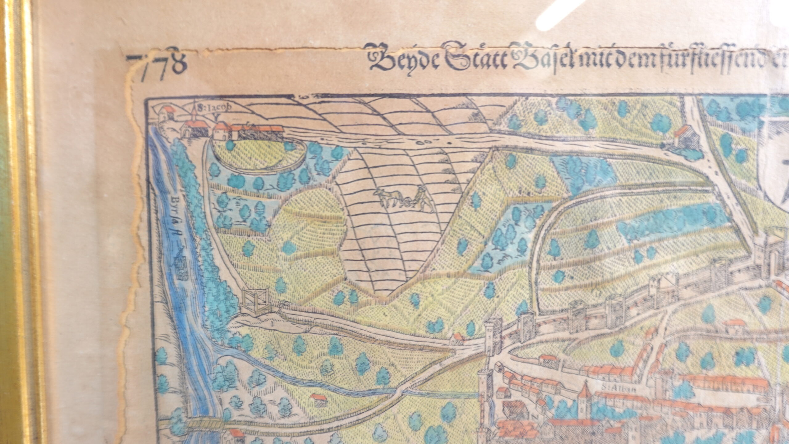 Mit diesem historischen Kunstwerk holen Sie sich ein authentisches Stück Basler Stadtgeschichte nach Hause – kunstvoll koloriert, mit Liebe zum Detail und voll kultureller Bedeutung. Ein echtes Highlight für jede Sammlung mit Fokus auf alte Städteansichten und historische Kupferstichkunst.
