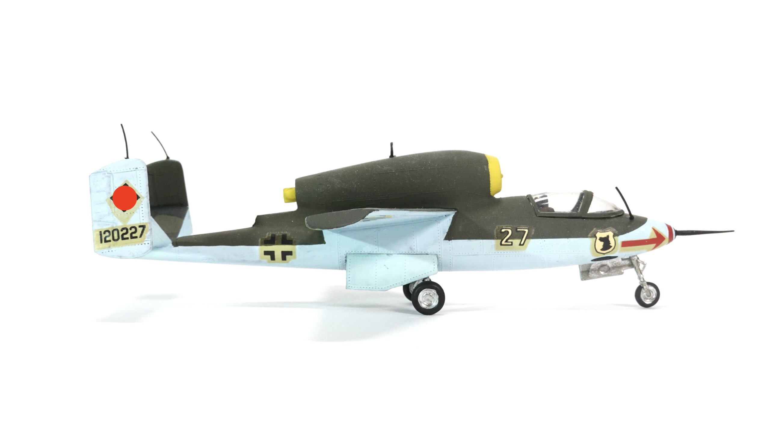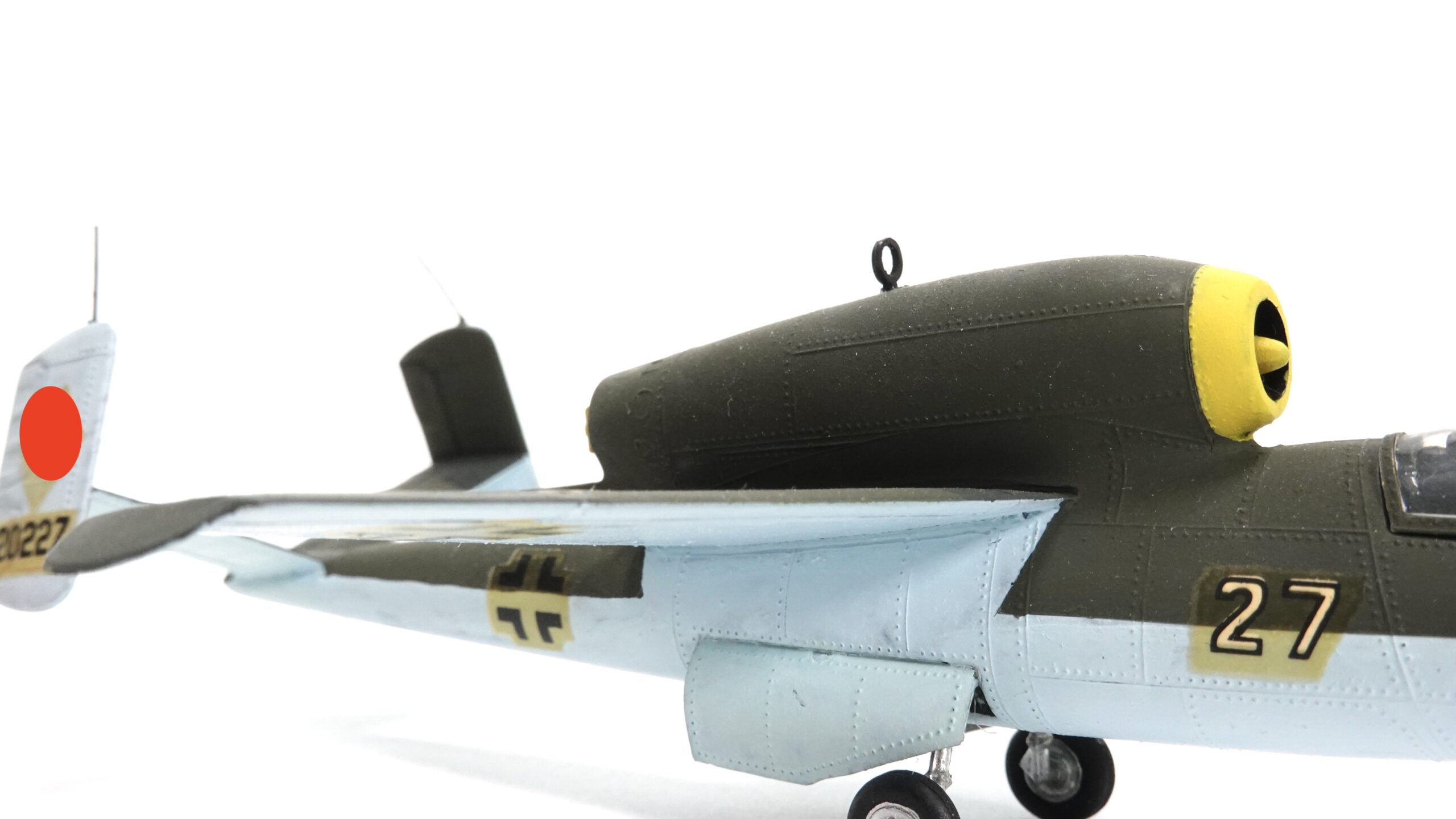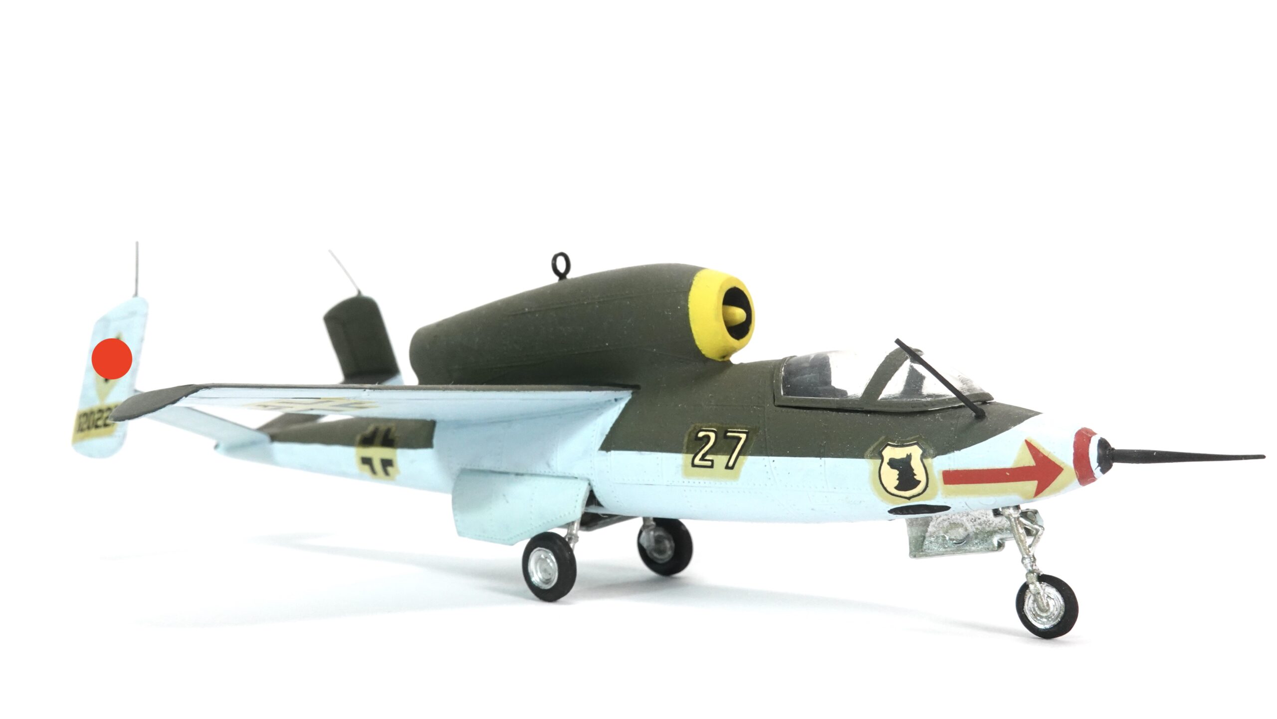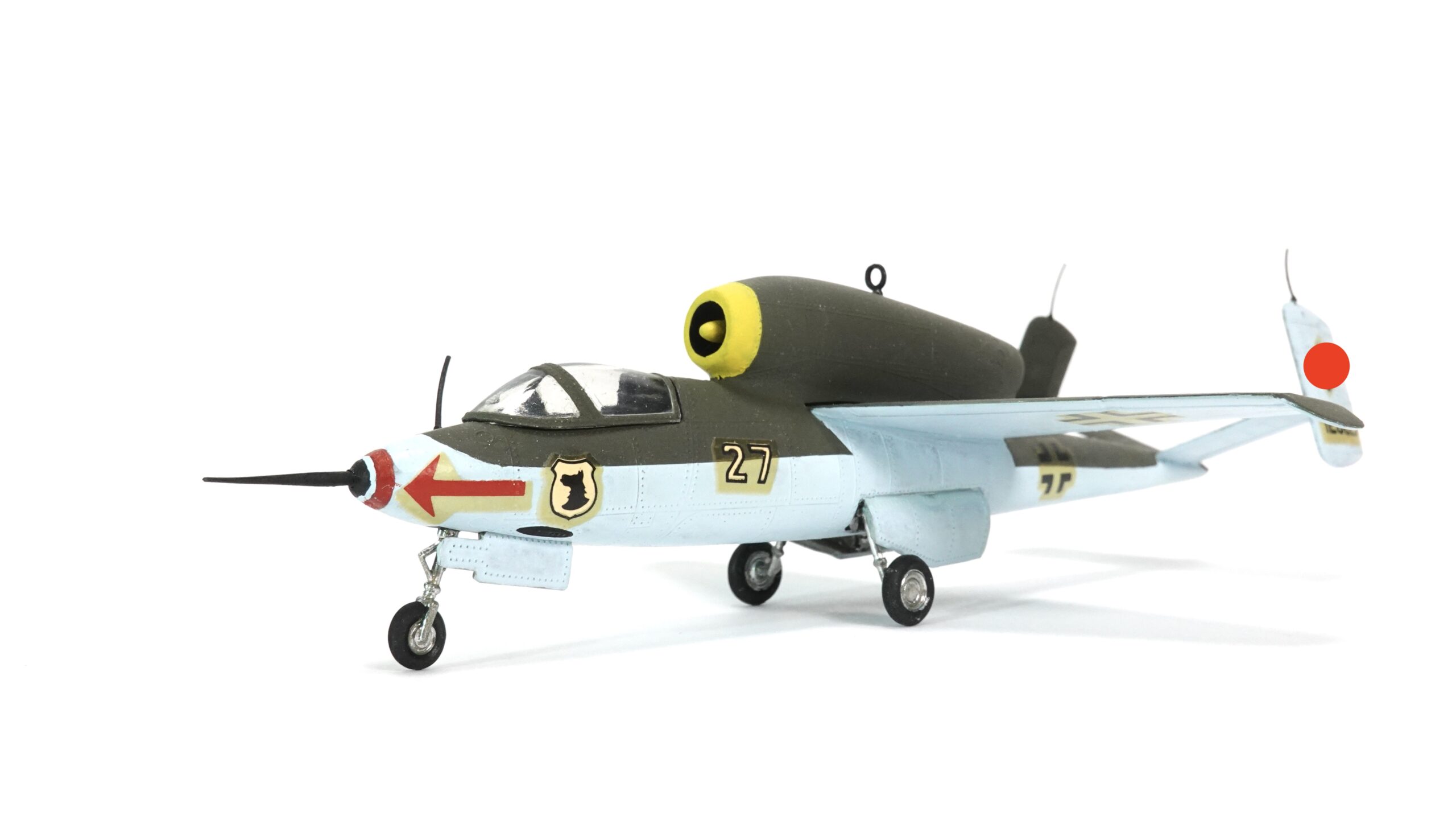 Sammler von Militärflugzeugen des Zweiten Weltkriegs oder Liebhaber seltener Strahljäger werden an diesem Modell ihre Freude haben. Durch die handwerkliche Bemalung ist jedes Stück ein Unikat – kein industriell gefertigtes Massenprodukt, sondern ein kleines Kunstwerk mit Charakter.