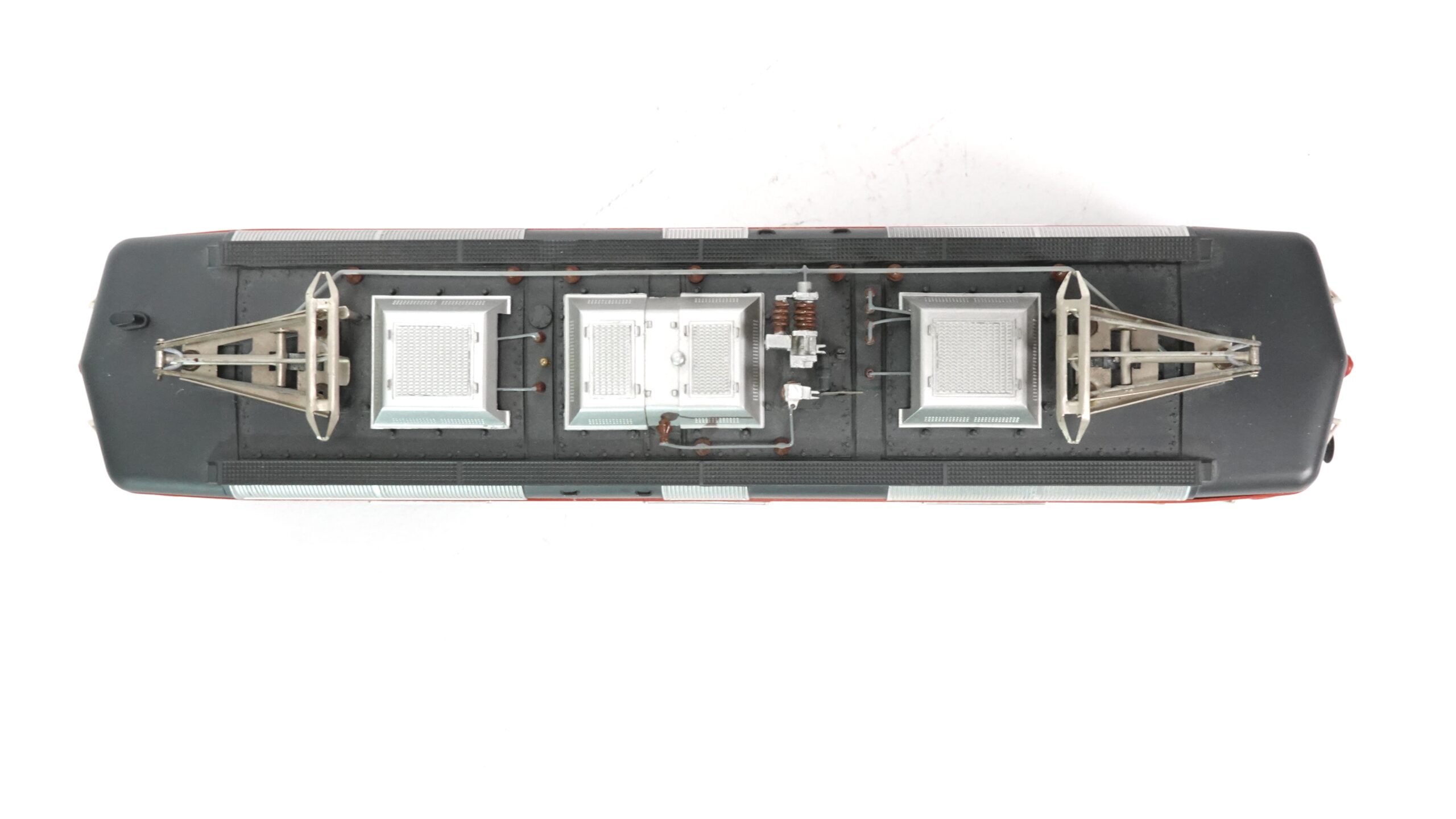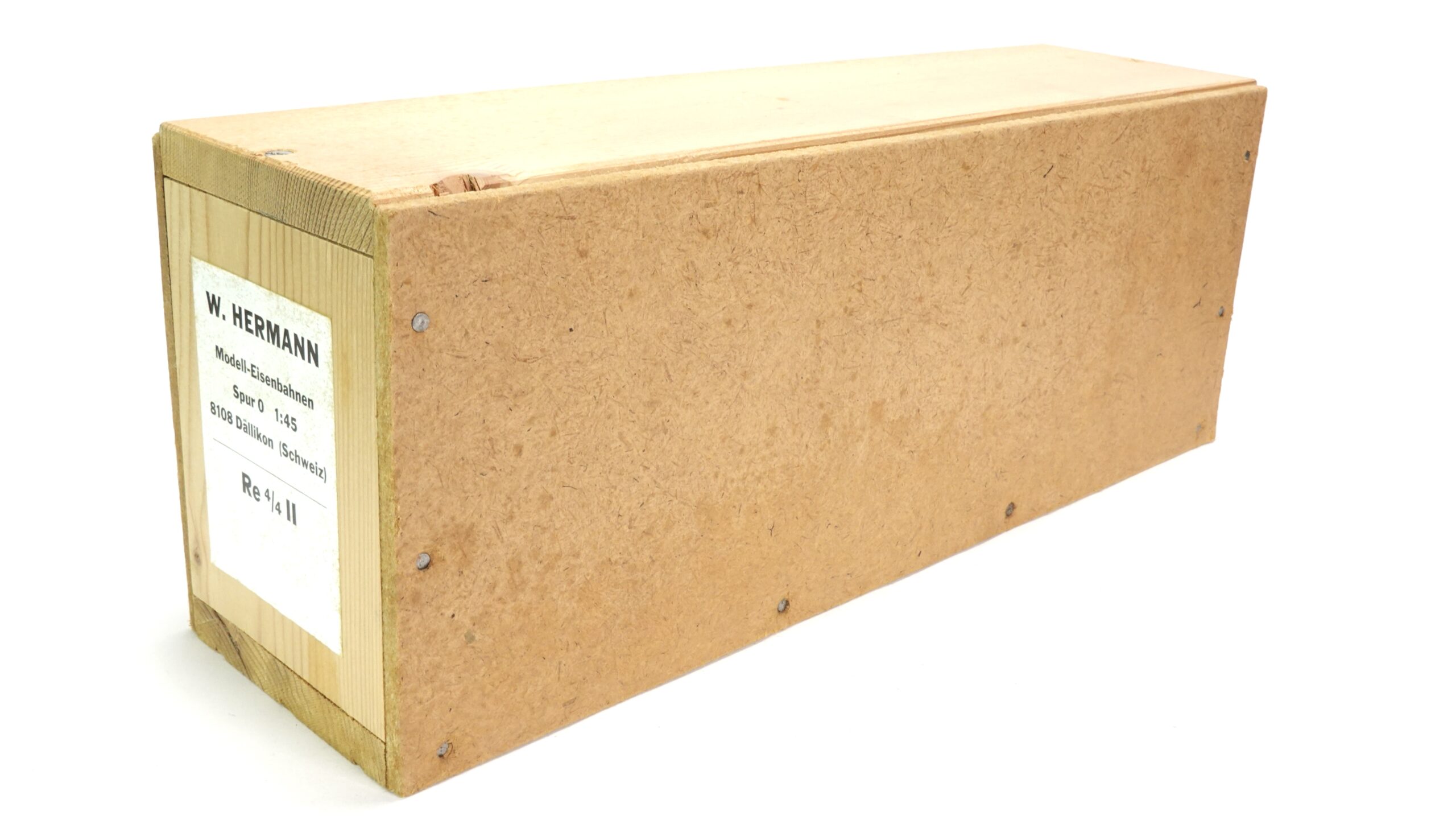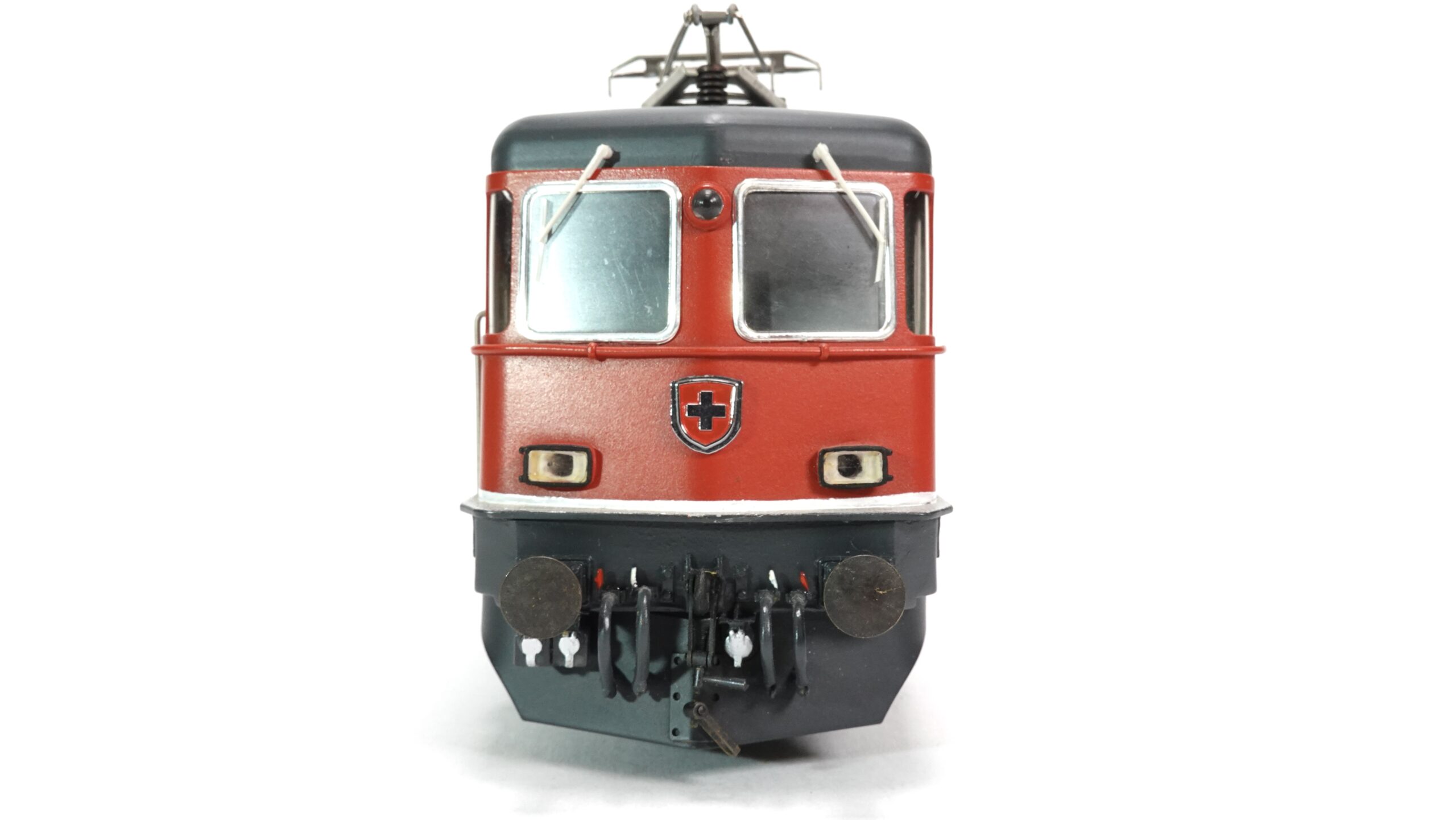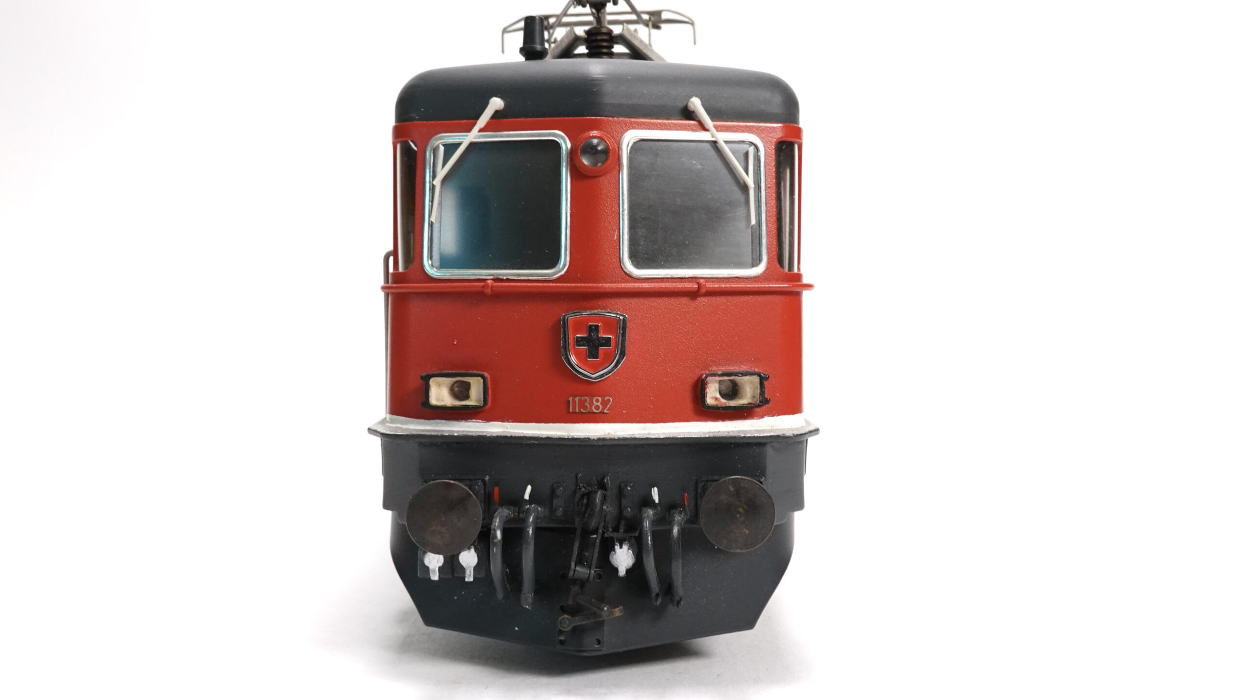 Das hier gezeigte Modell stammt aus der bekannten Kleinserie von W. Hermann Eisenbahnen, die sich durch solide Bauweise, Metallkomponenten und ein hohes Maß an Vorbildtreue auszeichnen. In Spur 0 wirken die Proportionen der Re 4/4 II besonders imposant. Die feinen Gravuren, die erhabenen Schriftzüge und die markante rote Front mit Schweizer Wappen sind detailgetreu umgesetzt.