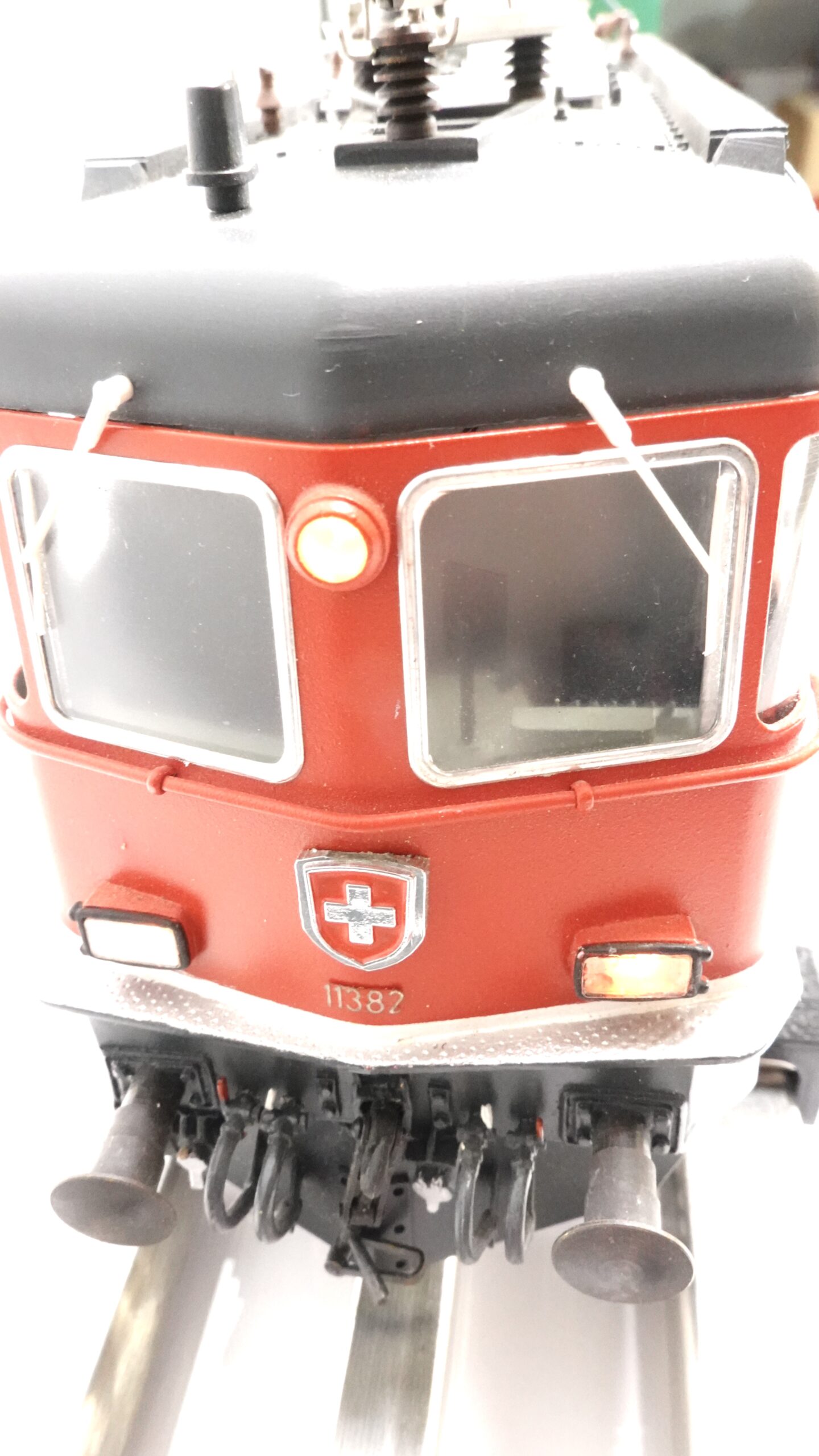 Ein charmantes Detail an diesem Modell – und zugleich ein amüsantes Kuriosum – ist das Fehlen der Loknummer auf einer Führerstandsfront. Während auf der einen Seite brav „11382“ prangt, sucht man die Anschrift auf der anderen Seite vergebens. Ob beim Vorbild ein Malermeister die Mittagspause etwas zu sehr genossen hat oder ob beim Modell schlicht ein Schiebebild vergessen wurde – man weiß es nicht. Sicher ist: genau solche kleinen Eigenheiten machen den Reiz einer Kleinserienlok aus. So wird aus einem „Fehler“ eine liebenswerte Anekdote, die Sammlerherzen höherschlagen lässt.