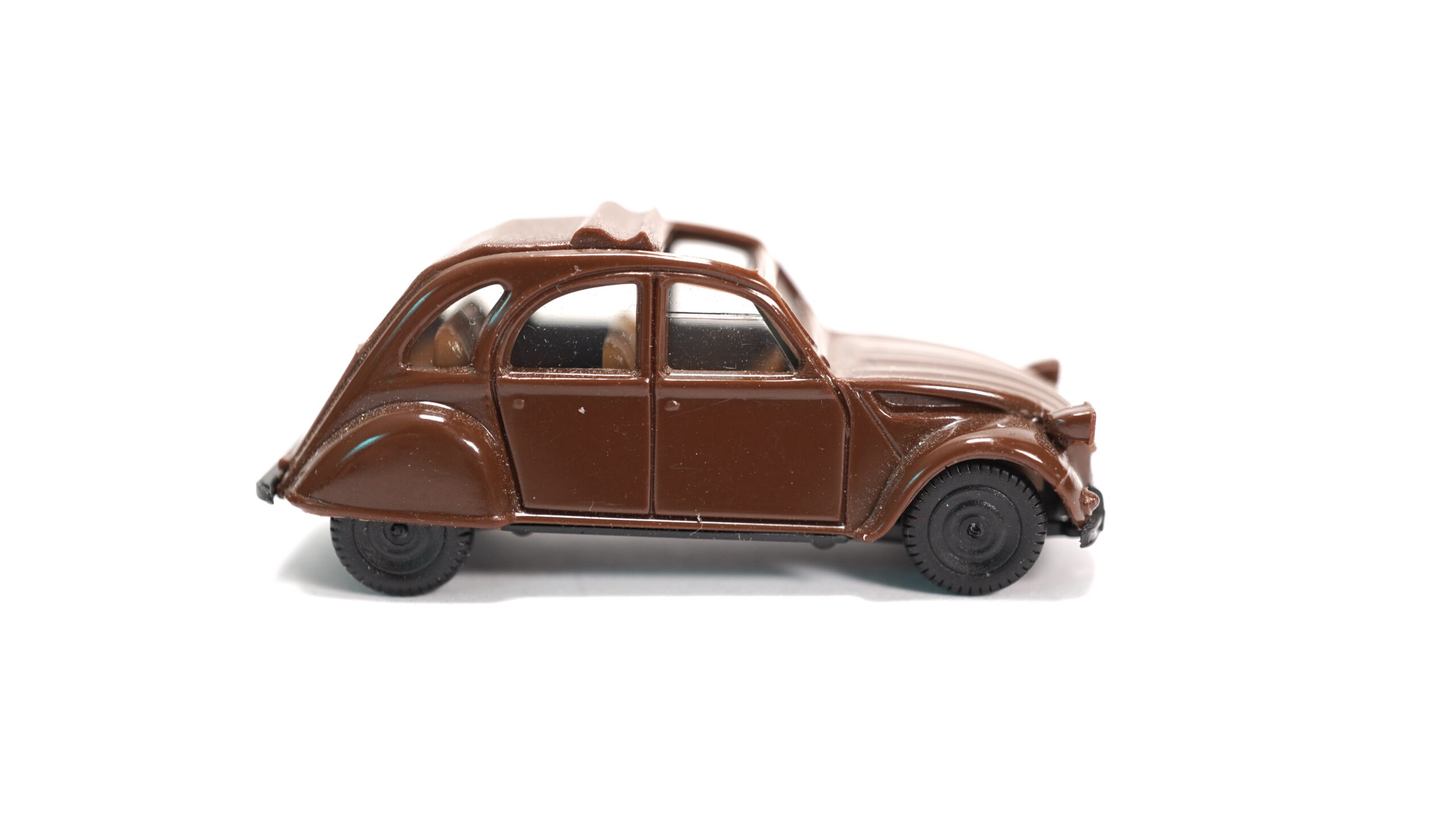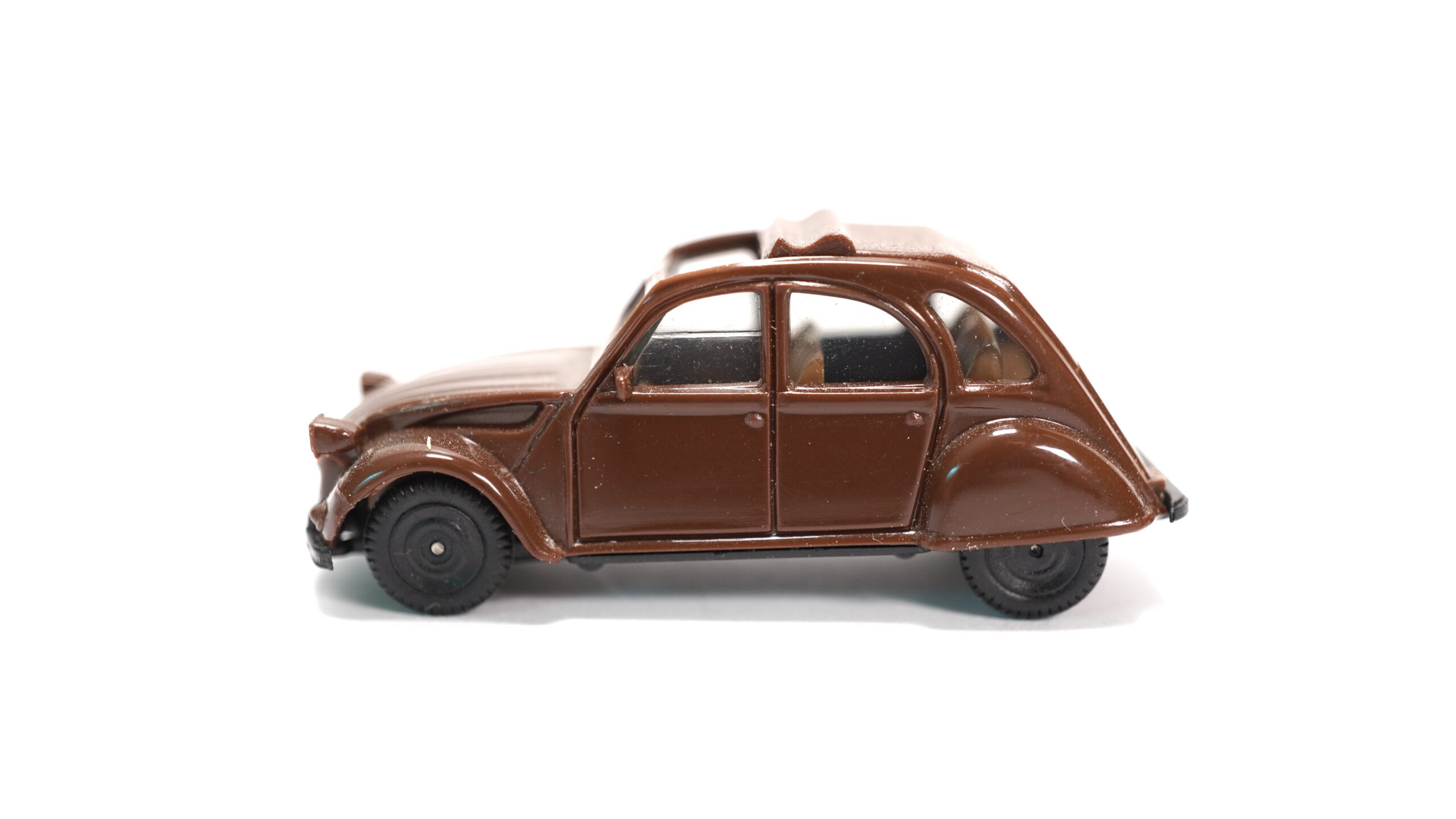 Die braune Lackierung unterstreicht den nostalgischen Charakter dieses Klassikers. Sie erinnert an warme Herbsttage, an französische Märkte und an eine Zeit, in der Autofahren noch ein echtes Erlebnis war. Der Citroën 2CV ist kein Statussymbol im klassischen Sinne – er ist ein Statement für Individualität, Charme und Authentizität.