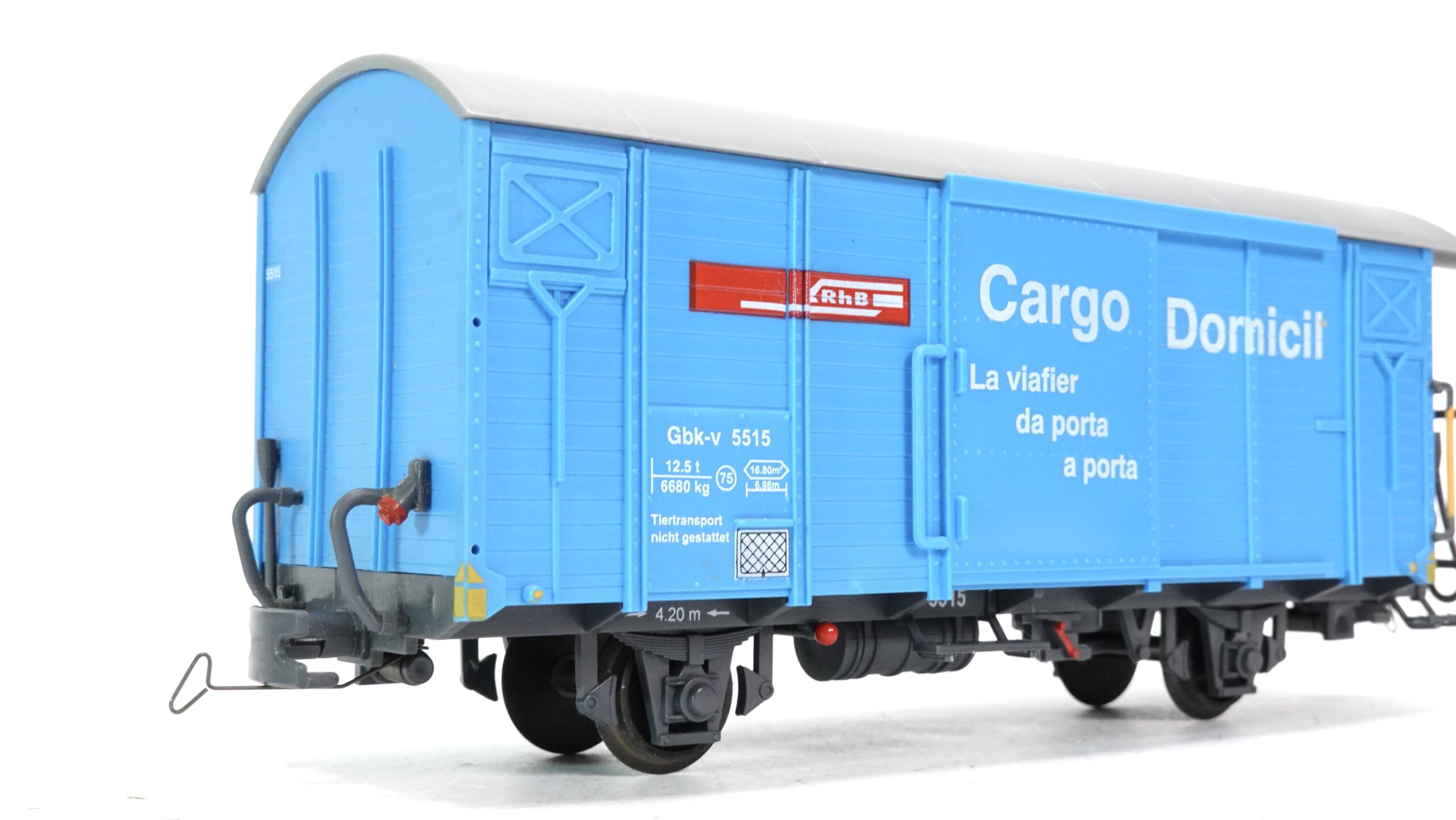 Der Kiss 100053 0m RhB Güterwagen Gbh-v Cargo | 1963 verkörpert die charakteristische Welt des Rhaetischen Bahnverkehrs in der Schweiz. Die Rhätische Bahn (RhB) ist bekannt für ihre malerischen Strecken durch die Alpen, atemberaubende Brücken und Tunnel, sowie für die zuverlässige Versorgung abgelegener Regionen mit Waren. Dieser Güterwagen steht symbolisch für die logistische Meisterleistung, die notwendig war, um Güter sicher und effizient durch die Berglandschaften Graubündens zu transportieren.