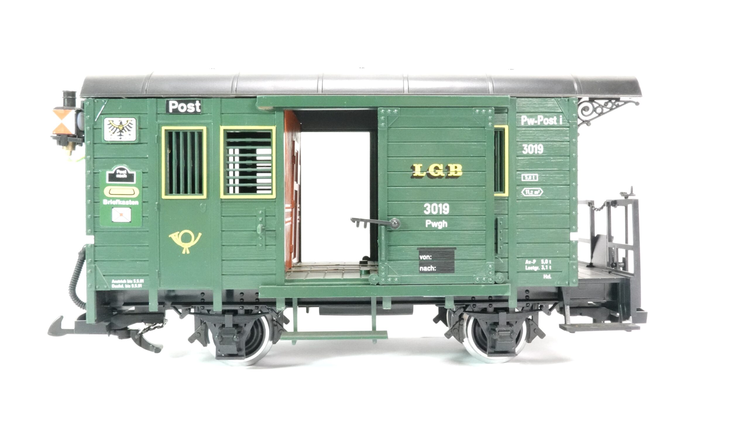 Besonders eindrucksvoll ist die stimmungsvolle Beleuchtung des Wagens, die das historische Flair noch authentischer wirken lässt. Ob im Tagesbetrieb oder in abendlicher Szene auf Ihrer Modelleisenbahnstrecke – das sanfte Licht erweckt das Modell zum Leben und vermittelt ein realistisches Bild der Bahnpost, die zu früheren Zeiten durch Städte und Dörfer rollte. Für Modellbahn-Enthusiasten bietet der LGB 3019 G K.P.E.V. Bahnpost Gepäckwagen eine perfekte Gelegenheit, Szenen historischer Bahnhöfe nachzustellen, bei denen Post und Gepäckwagen zentrale Rollen spielten.