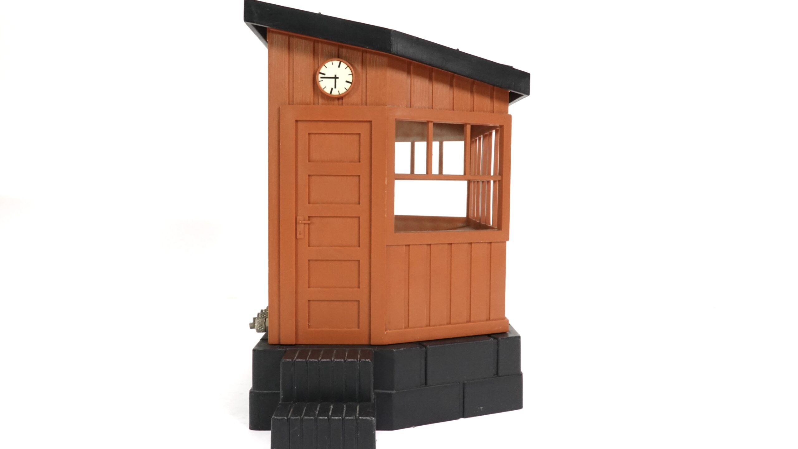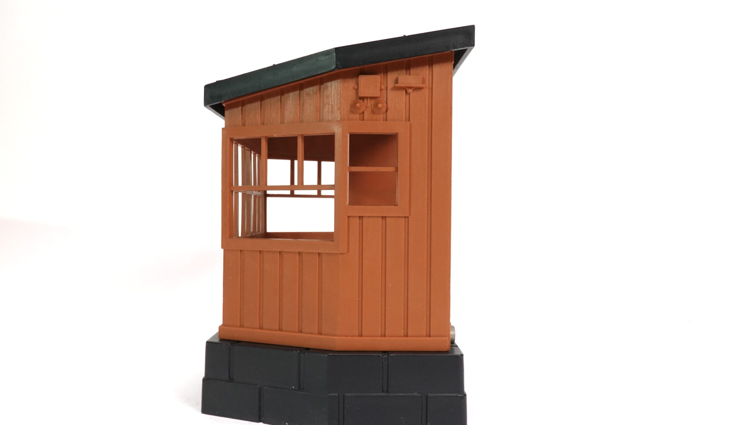 Das Stellwerkhaus selbst erinnert an die Gebäude, die man an kleinen Stationen oder in ländlichen Regionen fand. Sie waren nicht nur technische Einrichtungen, sondern auch ein Stück Alltagsgeschichte: Orte, an denen Menschen arbeiteten, Steigungen und Weichen überwachten und den sicheren Bahnbetrieb garantierten. Durch die Einbindung dieses Gebäudes entsteht sofort ein realistischer Schauplatz, der jede Garteneisenbahn aufwertet – sei es in einer Berglandschaft, einem Dorfbahnhof oder einem historischen Streckenabschnitt.