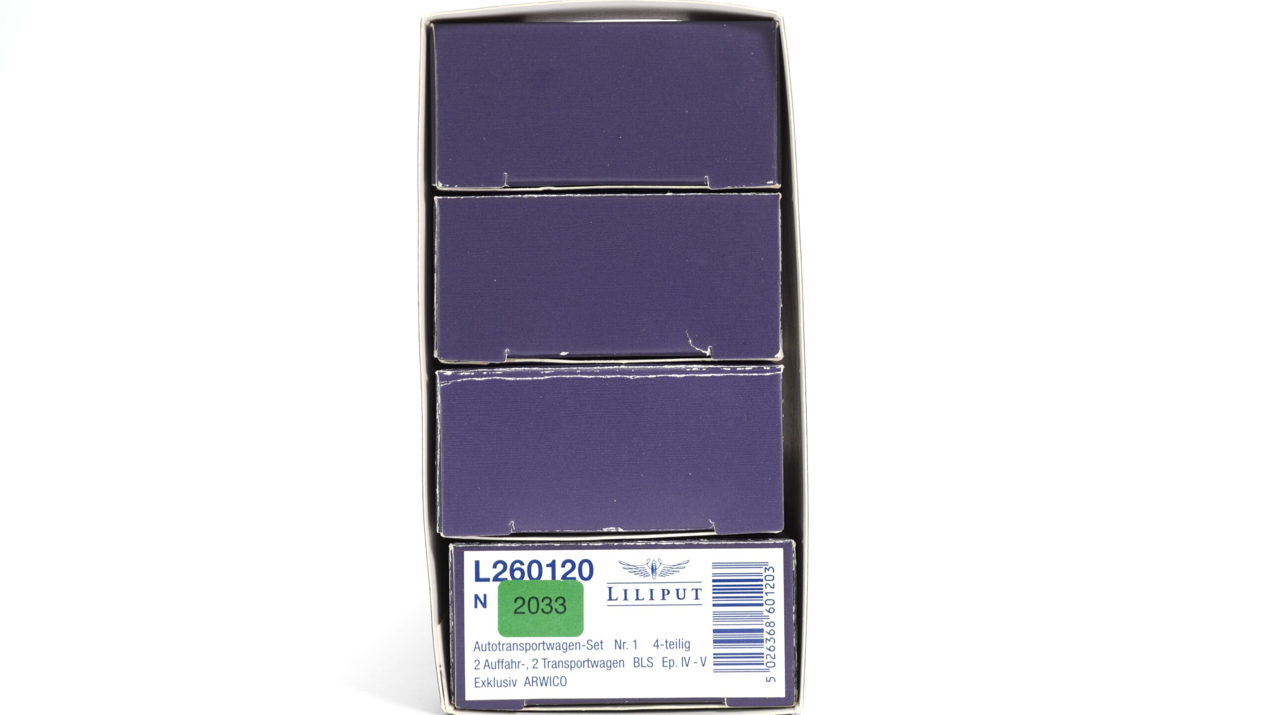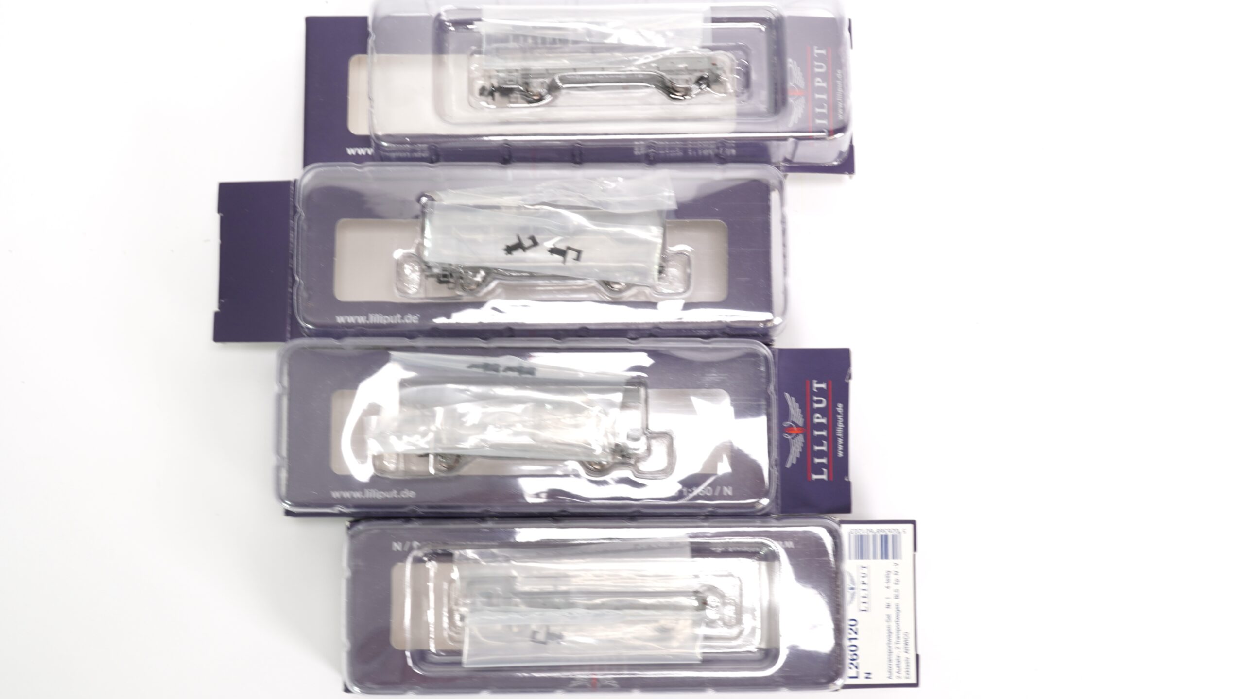 Das Set Liliput L260120 N BLS vier Autotransportwagen | 2033 bringt diese typische Schweizer Transportwelt in den Modellbahnbereich und eignet sich ideal für realistische Alpen- und Tunnelverkehr-Szenen auf der N-Anlage.