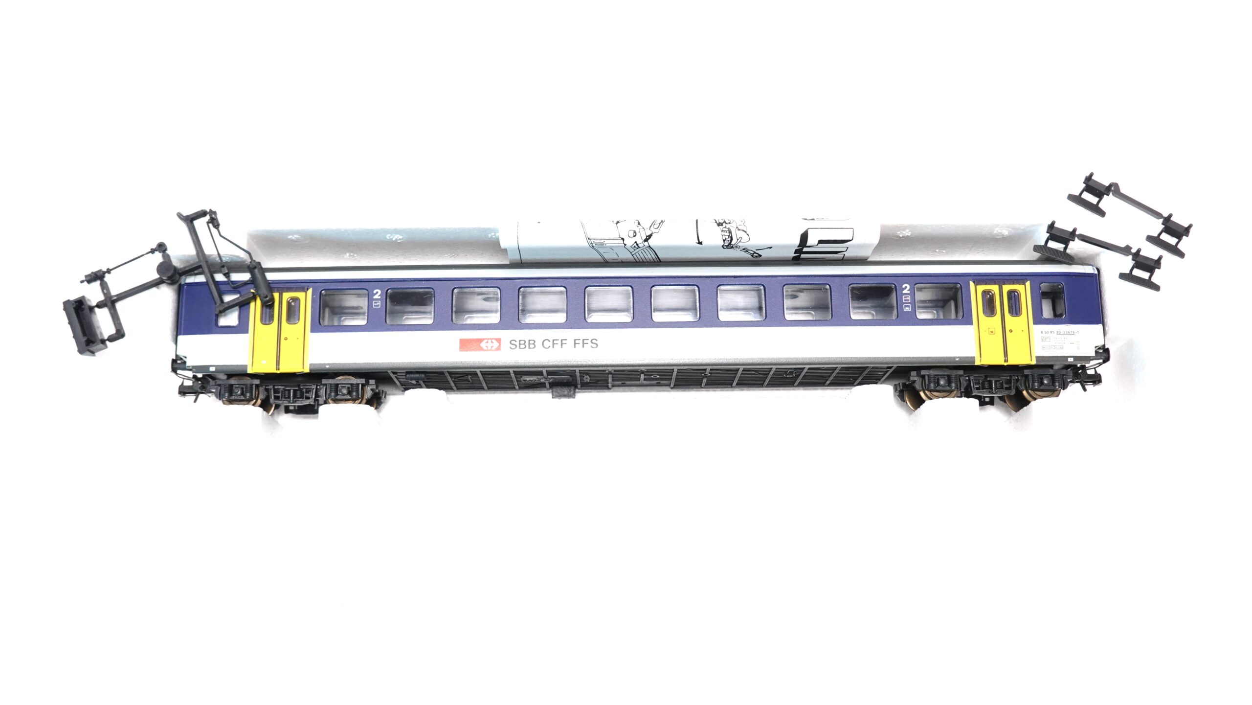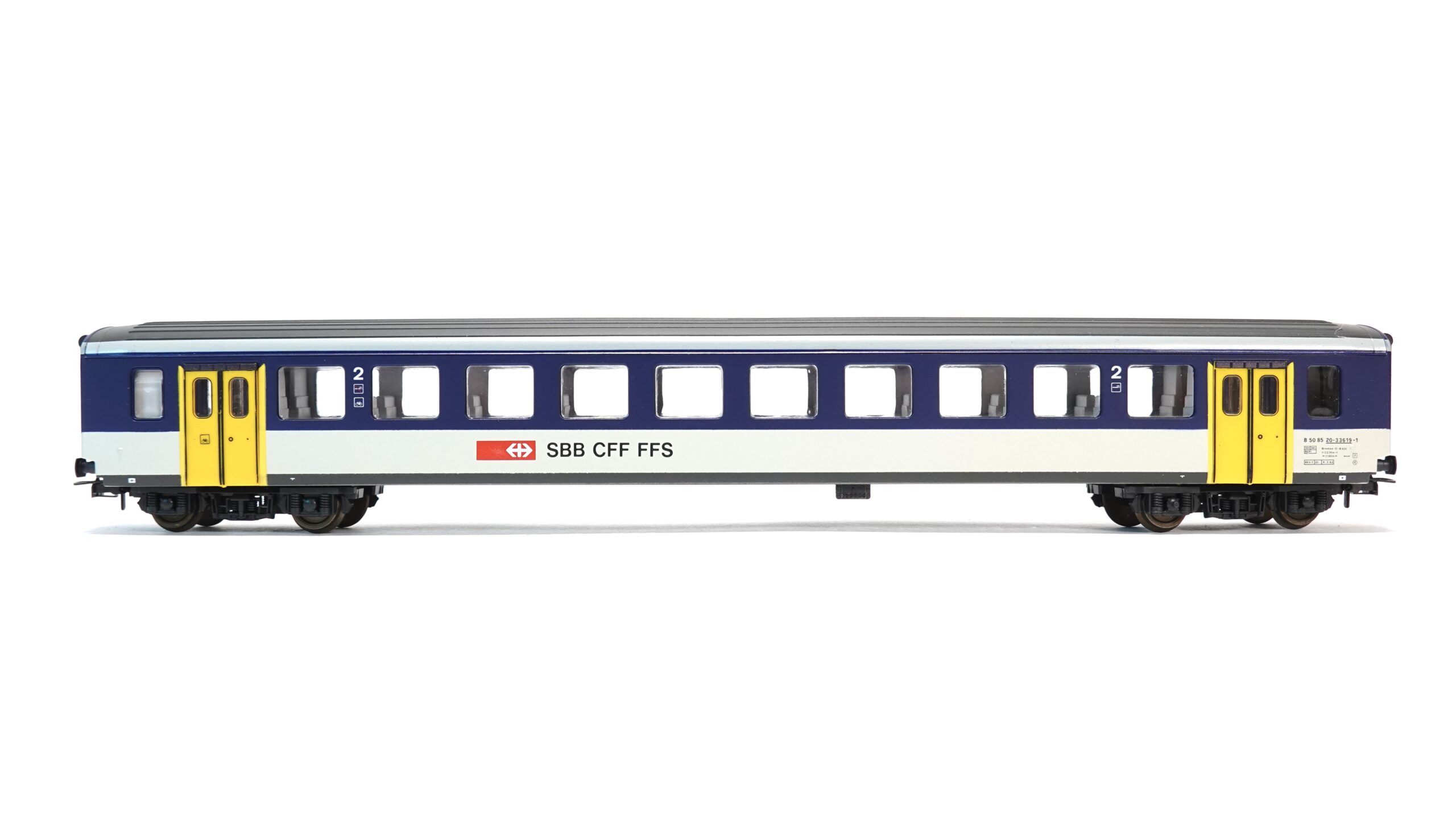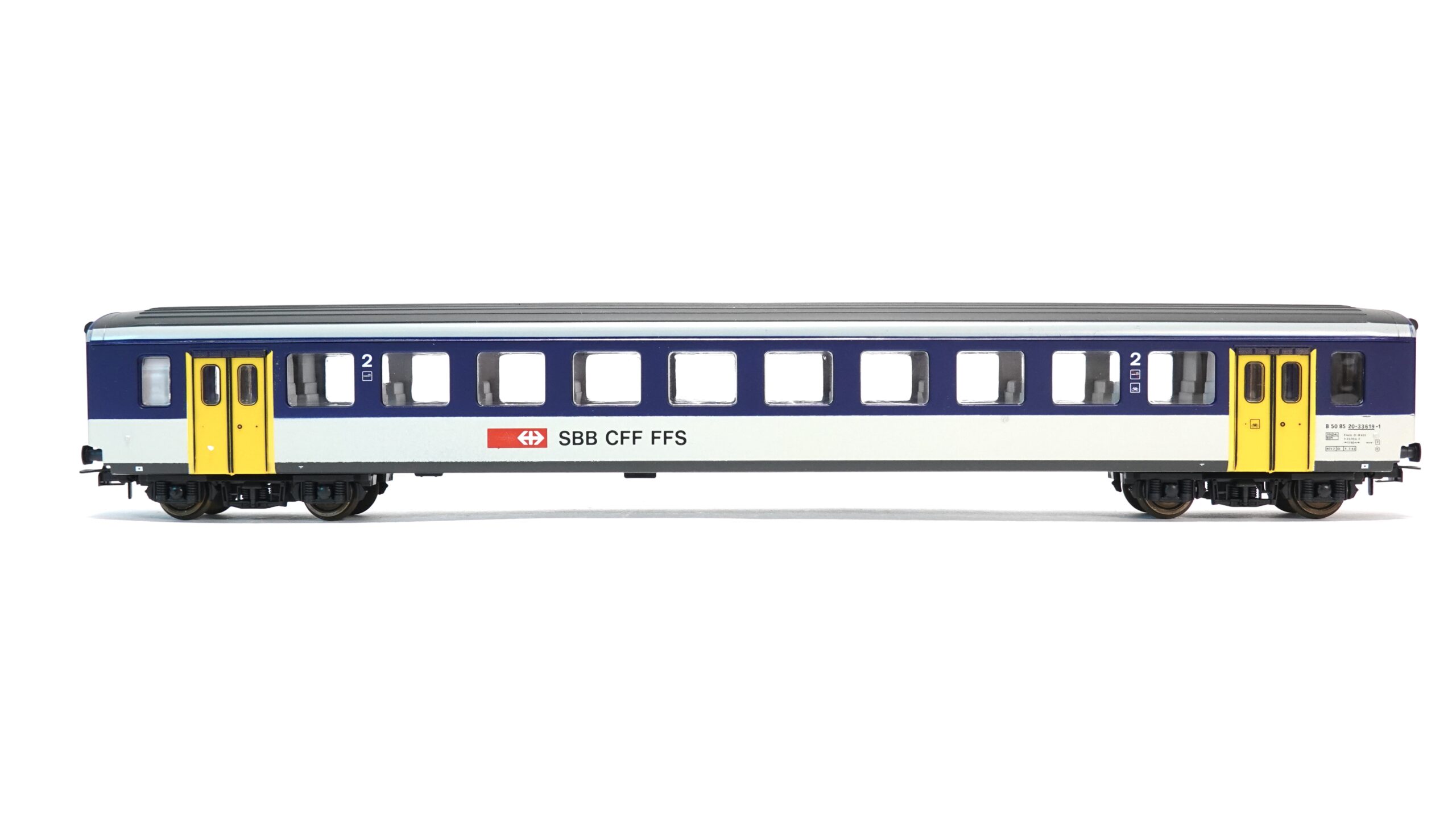 • Typ: Personenwagen 2. Klasse mit Schiebetüren, NPZ-Livery (Blau/Weiss mit markanten gelben Türen)
