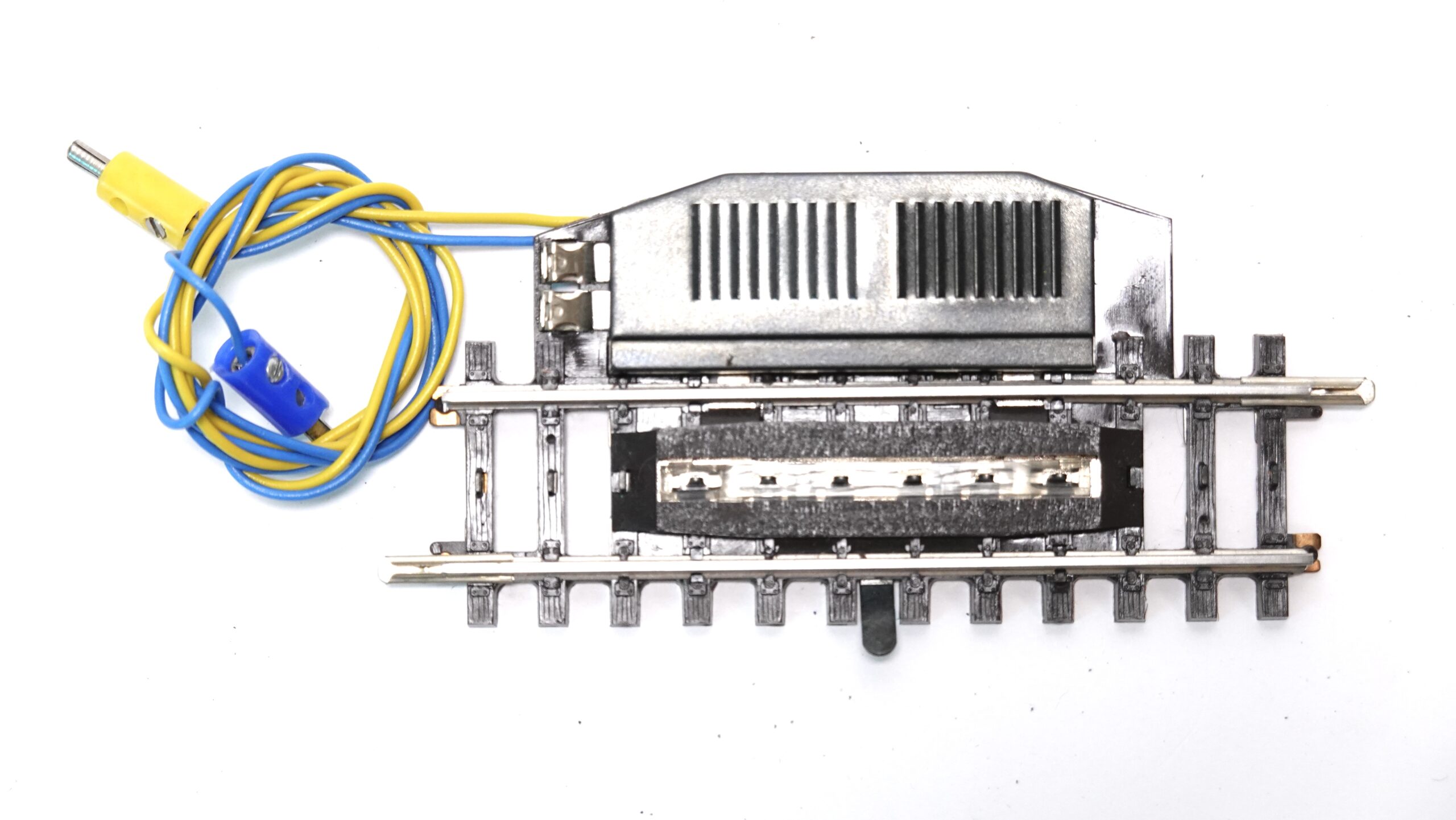 oder einen Schalter aktiviert, hebt sich der Entkuppler zwischen den Schienen an und trennt die