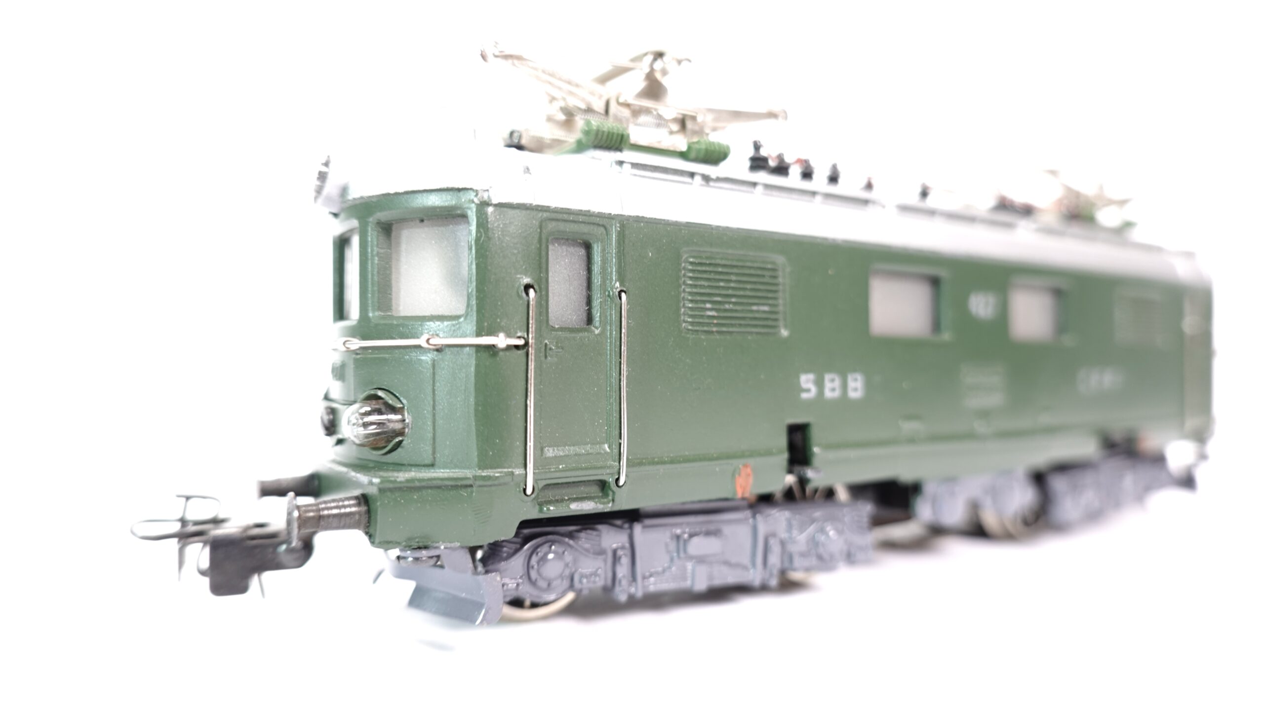 Die grüne Lackierung steht für die frühe Epoche des SBB-Lokparks und erinnert an eine Zeit, in der Elektrolokomotiven das Rückgrat der Schweizer Bahn waren. Mit ihrer markanten Form und den großen Frontfenstern strahlt die Re 4/4 I einen zeitlosen Charme aus, der bei Eisenbahnfreunden und Modellbahnern gleichermaßen beliebt ist. Auf echten Bahnstrecken war die Re 4/4 I vor allem auf Hauptlinien zwischen Städten wie Zürich, Bern und Basel im Einsatz und meisterte anspruchsvolle Steigungen in den Alpen mit großer Zuverlässigkeit.