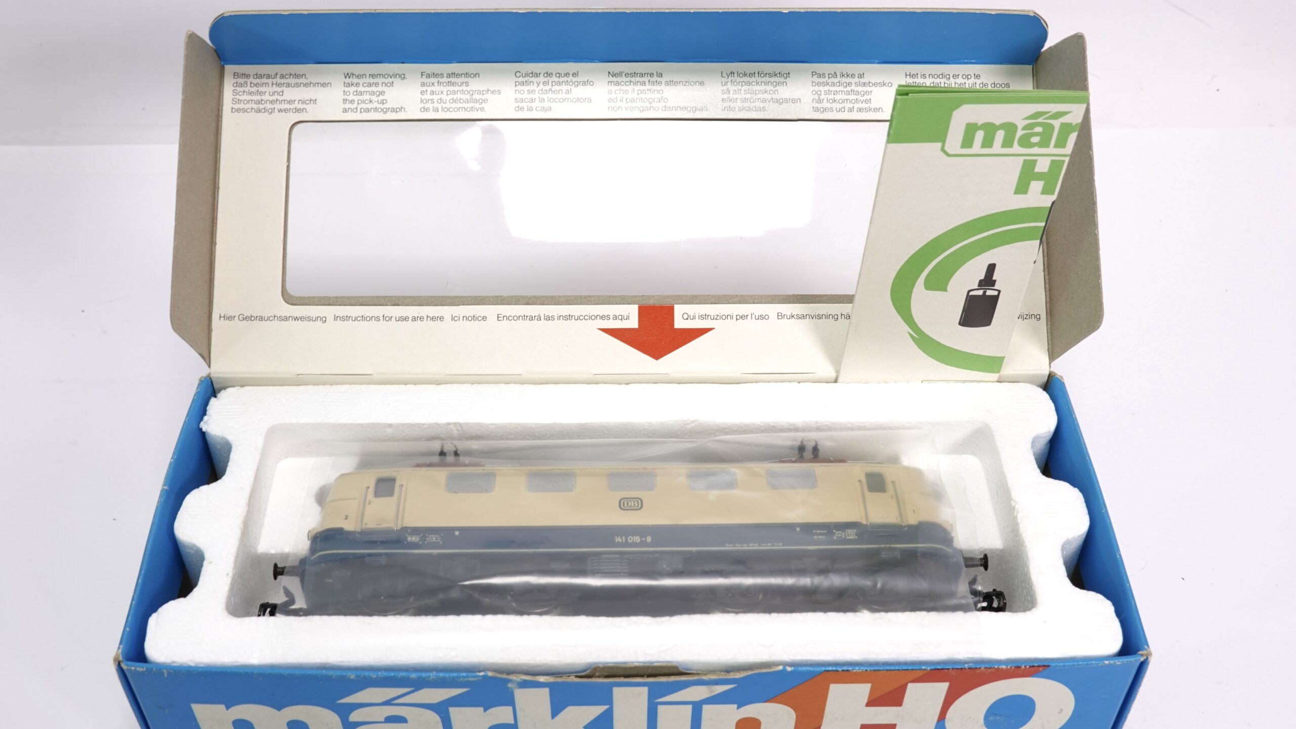 Entdecken Sie die Märklin 3034 H0 DB E-Lok BR 141 im Massstab 1:87, ein Meisterwerk der Modelleisenbahn-Technik. Diese detailgetreue Nachbildung der legendären Elektrolokomotive BR 141 der Deutschen Bahn (DB) begeistert sowohl Sammler als auch Modellbahn-Enthusiasten. Die Lokomotive besticht durch ihre präzise Gestaltung und authentische Lackierung in den klassischen DB-Farben Elfenbein und Ozeanblau, die an die goldene Ära des Eisenbahnverkehrs erinnern.