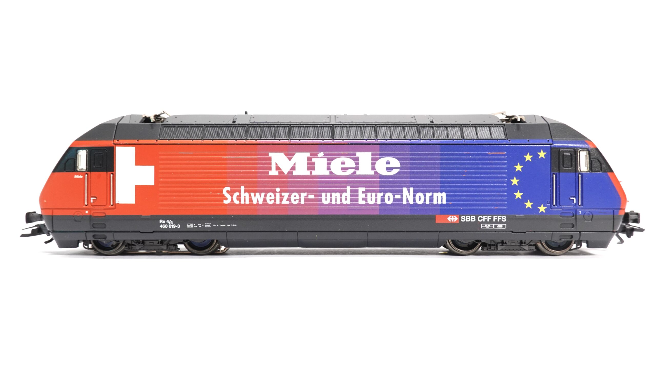Die Re 460 ist untrennbar mit dem hochwertigen Personenverkehr in der Schweiz verbunden. Sie prägte über Jahre hinweg das Bild der InterCity- und EuroCity-Züge und steht für Pünktlichkeit, Präzision und Qualität – Werte, die perfekt zur Werbelackierung von Miele passen. Die klare, weiße Gestaltung mit roten Akzenten vermittelt Eleganz und technische Souveränität und hebt sich deutlich von klassischen Bahnfarben ab. Dadurch wirkt die Märklin Re 460 „Miele“ sowohl modern als auch zeitlos.