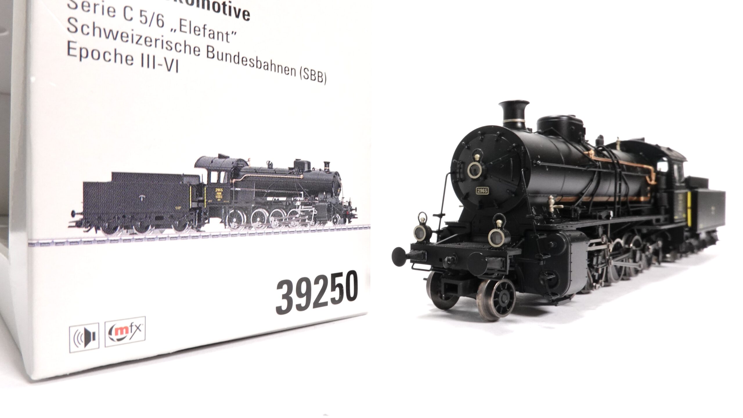 Die Märklin 39250 H0 SBB Dampflok C 5/6 2965 steht für die mächtige Kraft und technische Eleganz der Schweizer Eisenbahngeschichte. Die legendäre C 5/6 wurde von der Schweizerischen Bundesbahn (SBB) als Antwort auf die anspruchsvollen Alpenstrecken entwickelt – ein Meisterwerk der Dampflokära, das den Beinamen „Elefant“ erhielt.