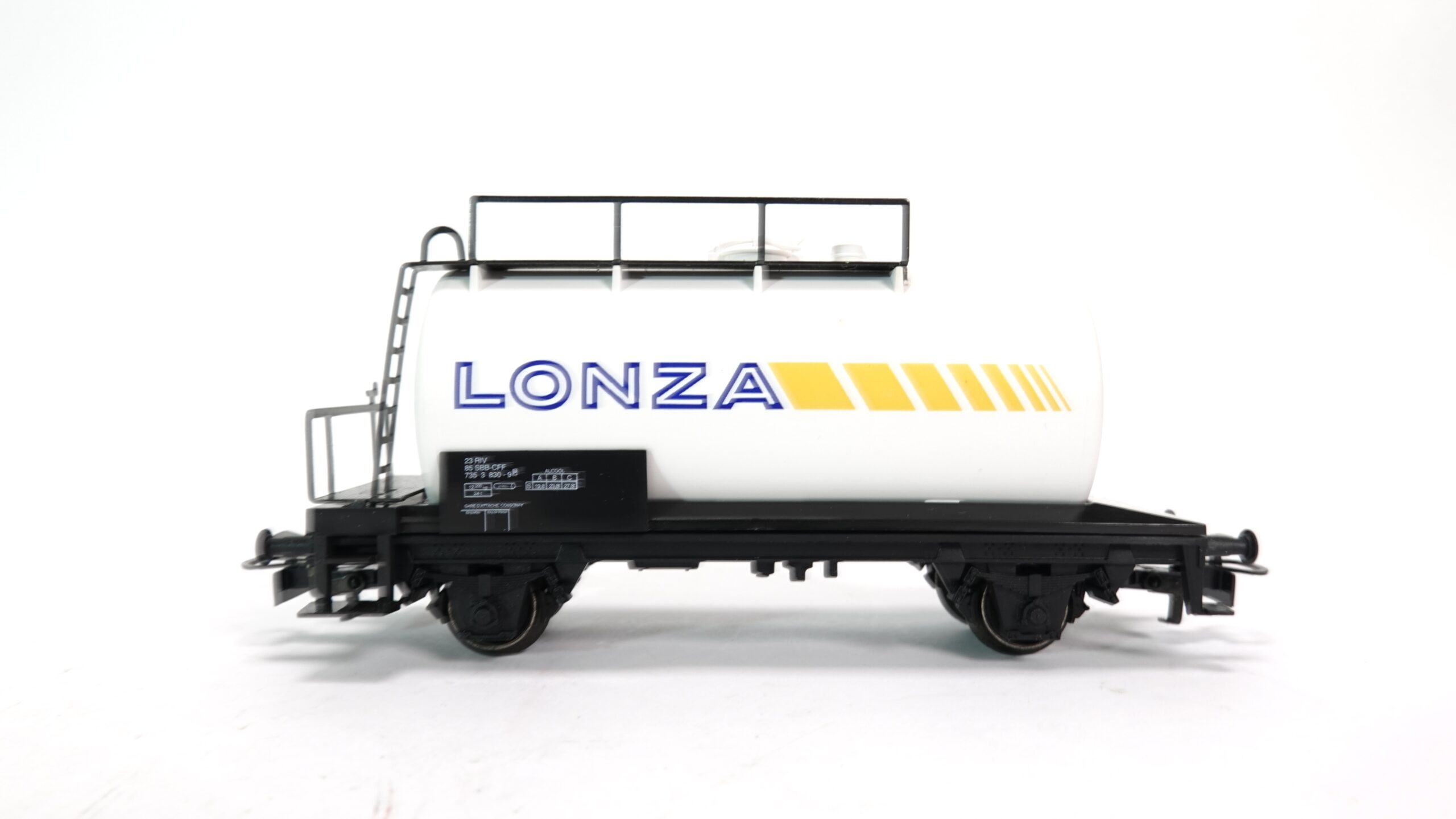 Speziell ist die Verbindung zur Lonza AG, einem renommierten Schweizer Unternehmen, das weltweit in der Chemiebranche aktiv ist. Dieser Kesselwagen symbolisiert den sicheren und effizienten Transport empfindlicher und oft sensibler Flüssigkeiten, die für Produktionsprozesse unverzichtbar sind. Die Schweizer Eisenbahn nutzt solche Wagen seit Jahrzehnten, um die strengen Anforderungen an Sicherheit und Umweltstandards beim Transport von Chemikalien zu erfüllen.
