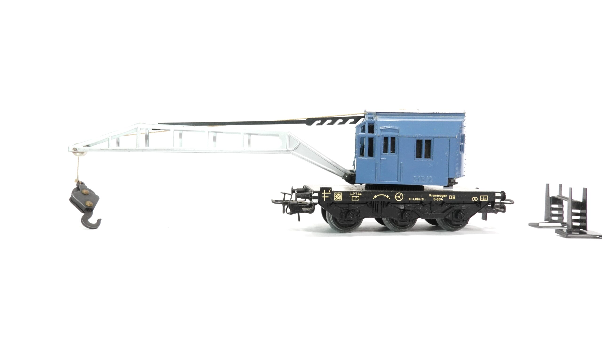 In kräftigem Blau gehalten, überzeugt der 4611 nicht nur durch seine authentische Farbgebung, sondern auch durch seine robuste Konstruktion – ganz „Märklin-typisch“ aus Metall mit vielen feinen Details. Der Ausleger lässt sich manuell heben und senken, der Kranaufbau ist drehbar, und die beiliegende Stützwagen-Einheit mit Gegengewicht sorgt für zusätzliche Stabilität beim Einsatz. Mit Kupplungen vorne und hinten lässt sich der Wagen problemlos in jeden Zugverband einreihen.