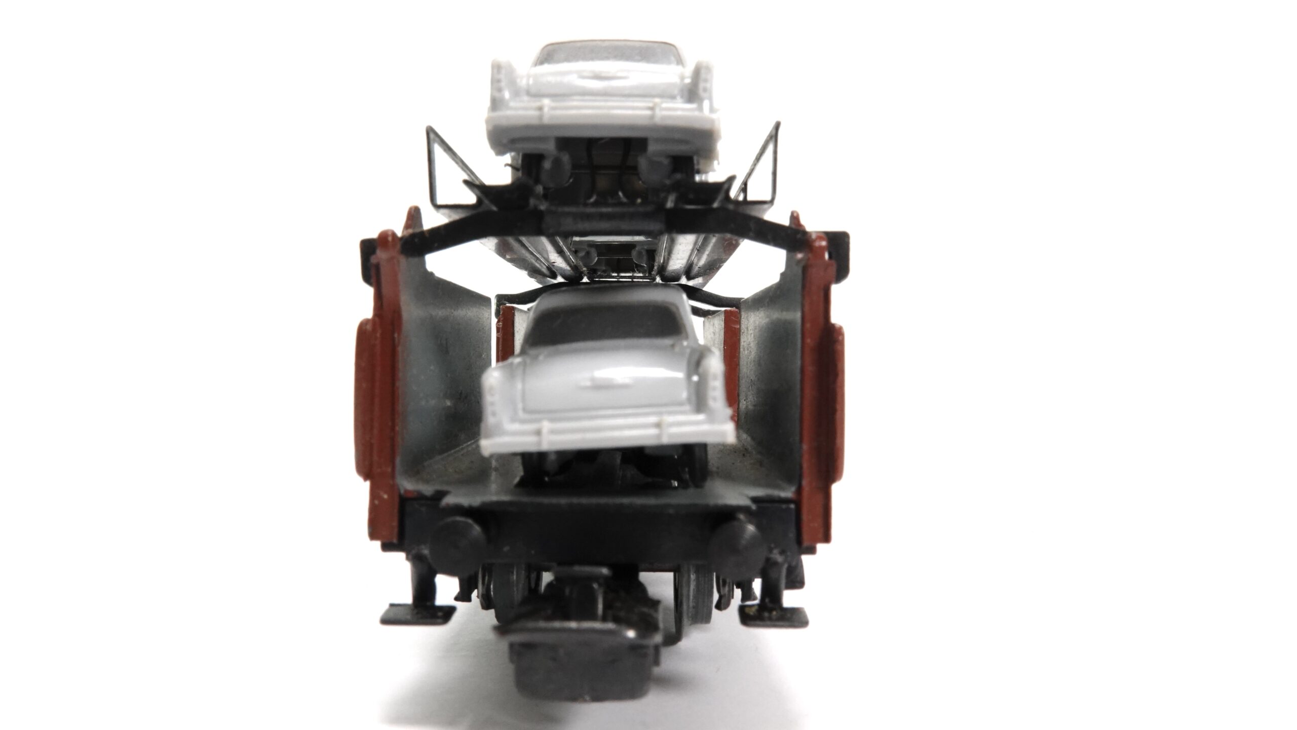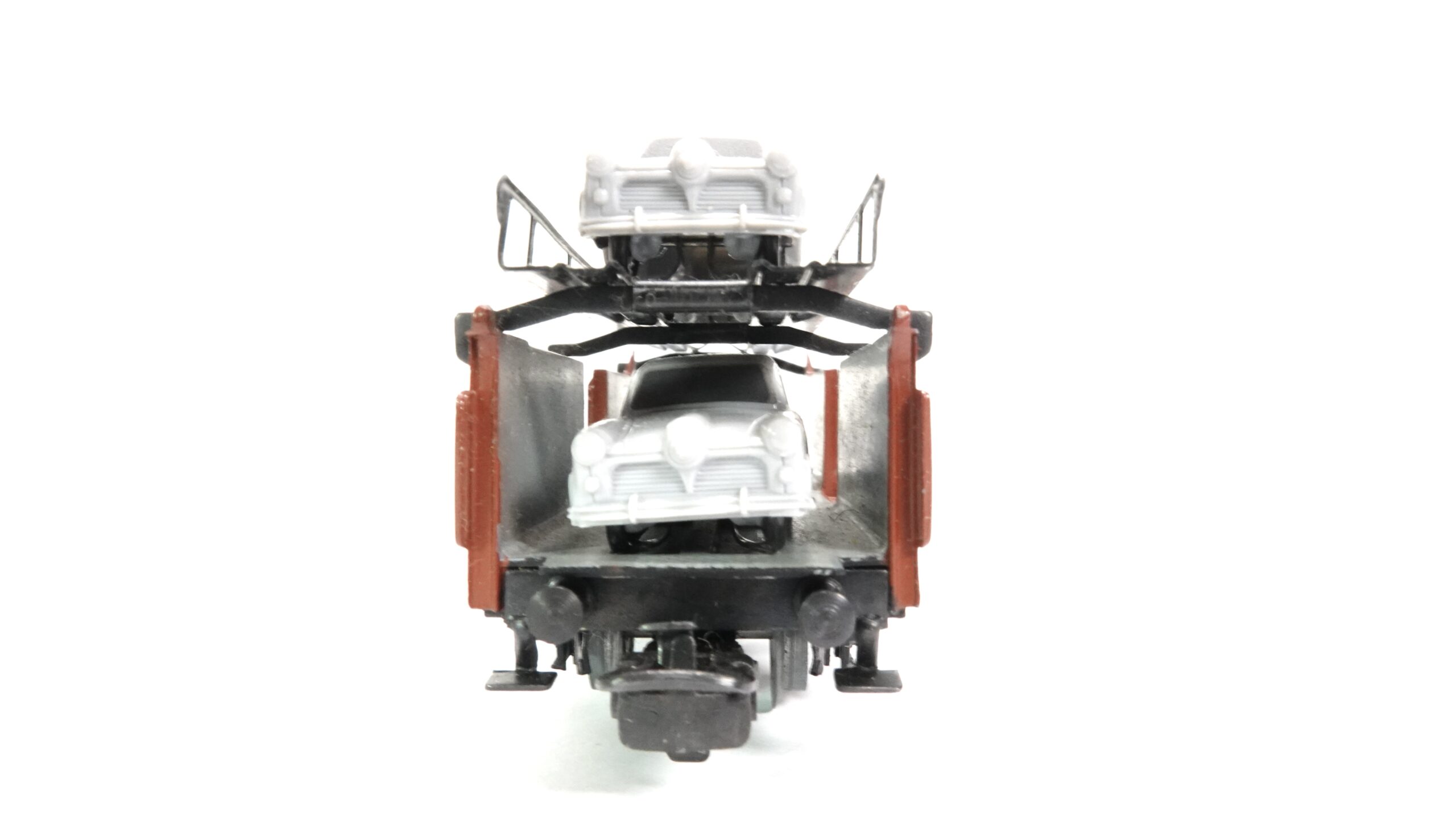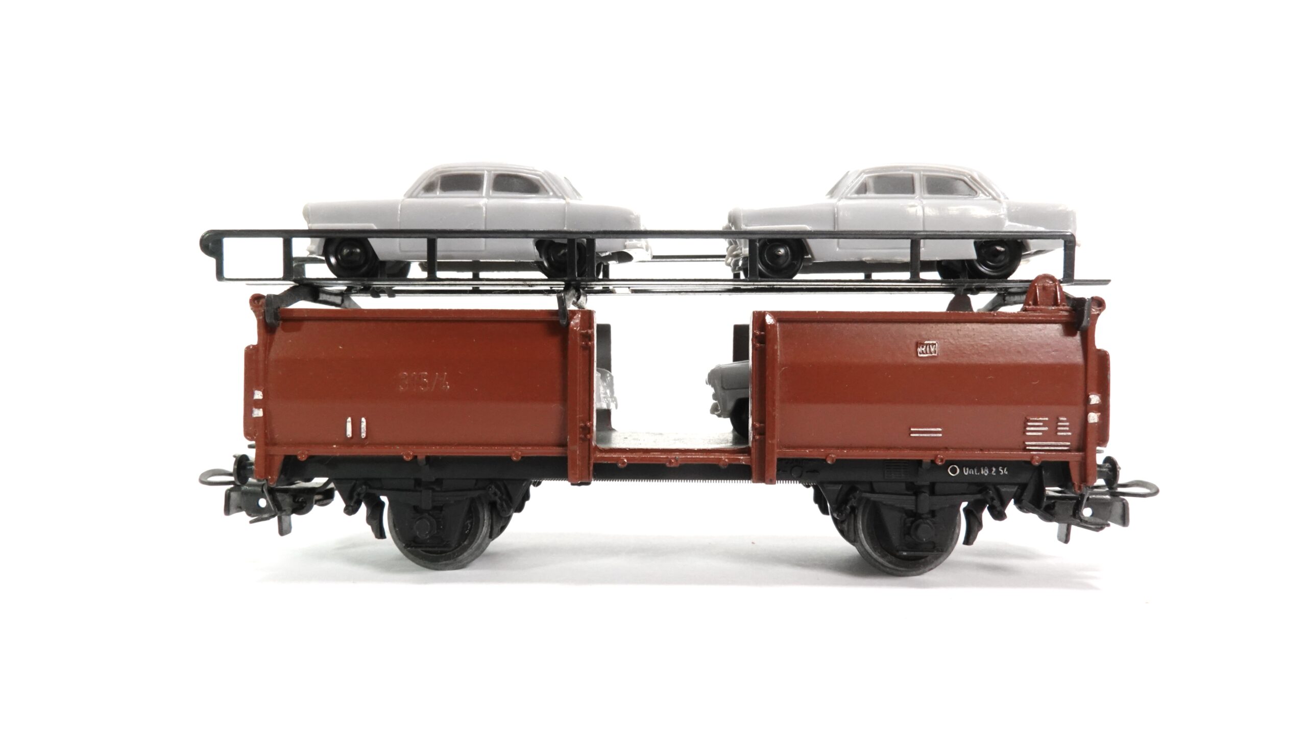 Mit dem Aufschwung der Automobilindustrie in den 1950er Jahren wuchs der Bedarf an effizienten Transportlösungen für fabrikneue Autos. Die Deutsche Bundesbahn setzte spezielle Doppelstock-Autotransportwagen ein, um eine größere Anzahl an Fahrzeugen gleichzeitig zu befördern. Dies reduzierte Kosten und sorgte für eine sichere Verladung ohne Straßenschäden oder Abnutzung der Neuwagen. Der Märklin 4613 bildet einen dieser klassischen Wagen perfekt im Maßstab H0 nach und bringt ein Stück deutscher Verkehrsgeschichte auf die Modellbahnanlage.