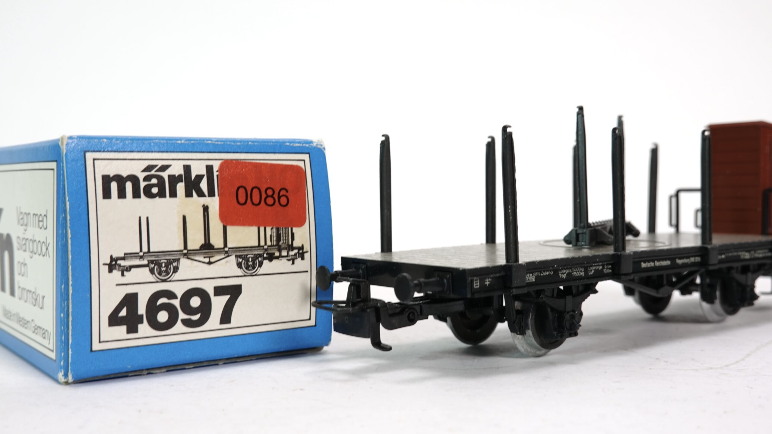 Der Märklin 4697 ist ein hochwertiger Drehschemmelwagen, der speziell für die Spur H0 entwickelt wurde. Er ist Teil der DRG-Serie, die für ihre präzise Nachbildung der historischen deutschen Bahn bekannt ist. Der Wagen ist in einem klassischen Schwarz lackiert und trägt die charakteristische Beschriftung „Deutsche Reichsbahn-Gesellschaft“, was ihn unverwechselbar macht. Mit der Artikelnummer 4697 ist dieser Wagen leicht identifizierbar und ein wertvolles Sammlerstück.