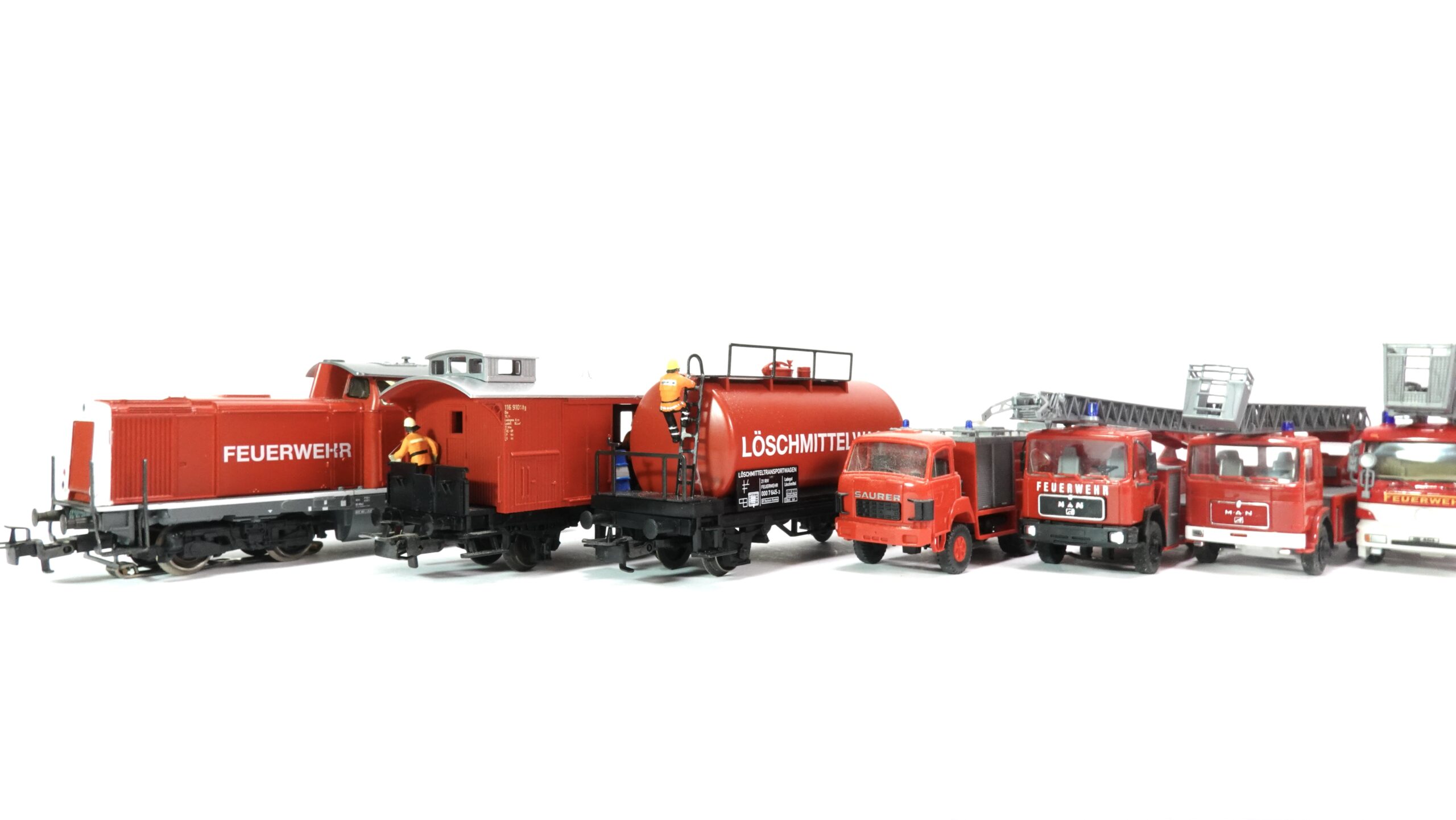 Mit seinem detailreichen Aufbau erzählt das Märklin DB Feuerwehrset Geschichten von schnellen Reaktionen, Teamarbeit und dem besonderen Nervenkitzel von Rettungseinsätzen. Die realistischen Wagen und der typische DB-Look sorgen dafür, dass das Set nicht nur authentisch wirkt, sondern auch auf jeder Modellbahn sofort ins Auge fällt. Jedes Teil des Sets, von den Einsatzwagen bis zu den transportierten Gerätschaften, vermittelt ein Gefühl von Dringlichkeit und Engagement, das sonst nur echte Feuerwehrzüge ausstrahlen können.