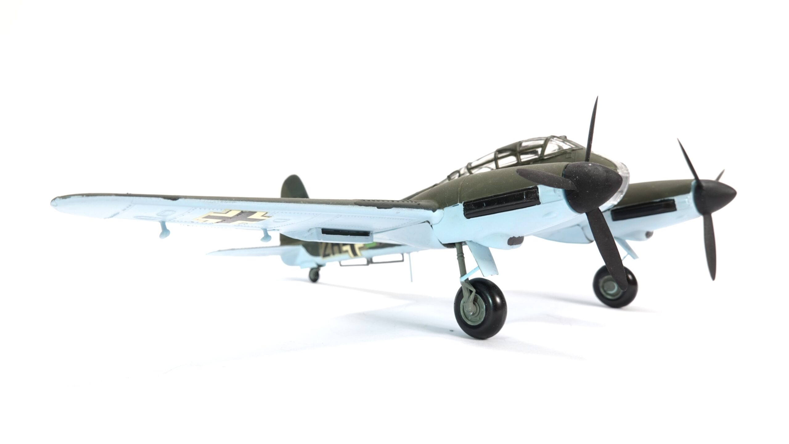 Ihr Erstflug fand 1942 statt. Die Maschine war mit zwei leistungsstarken Daimler-Benz DB 603A-Motoren ausgestattet, die ihr eine Höchstgeschwindigkeit von etwa 620 km/h ermöglichten. Die Me 410 war schneller, stabiler und deutlich zuverlässiger als ihr Vorgänger. Sie verfügte über ein einziehbares Fahrwerk, eine vollständig verglaste Cockpitkanzel und eine starke Bewaffnung: zwei MG 151/20, zwei MG 17 im Bug sowie zwei ferngesteuerte MG 131 in drehbaren Seitenständen – eine technische Innovation ihrer Zeit.