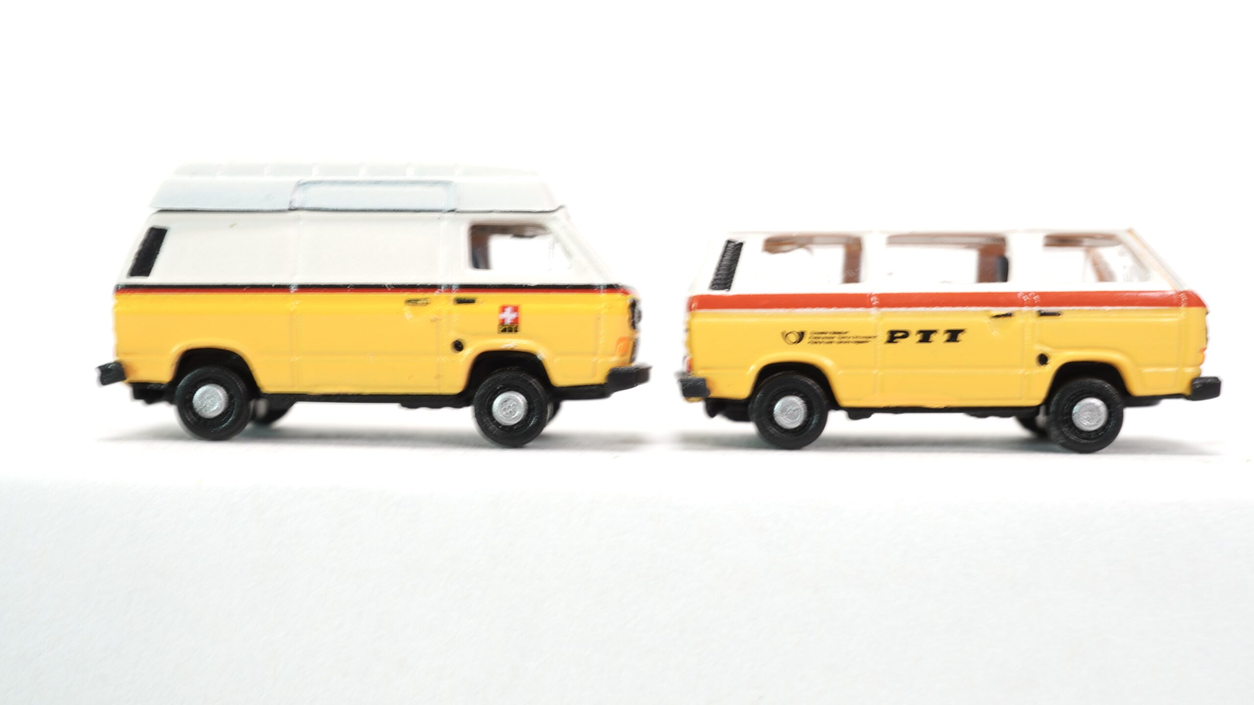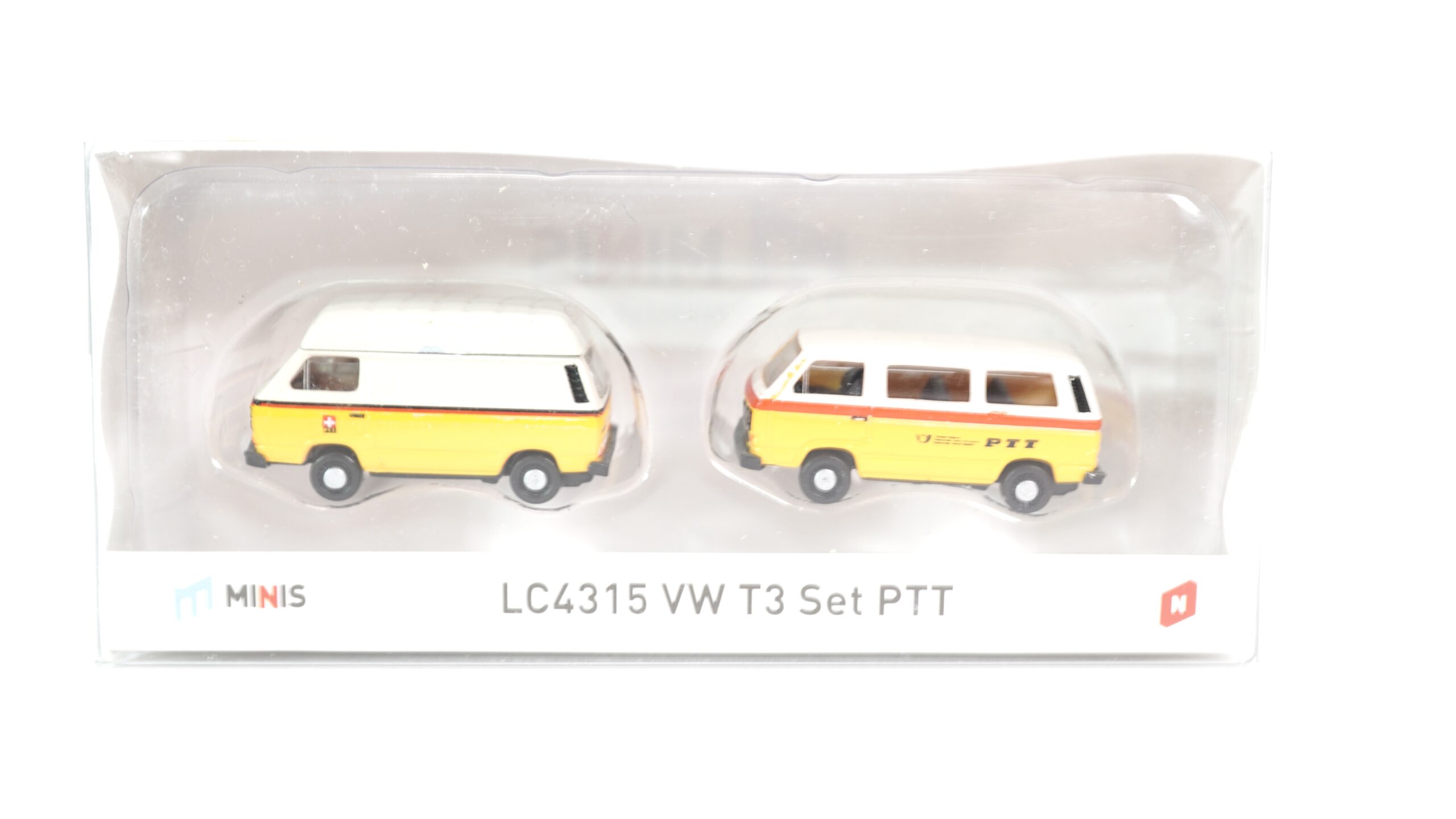 Das Mini LC4315 N PTT VW T Set ist ein einzigartiges Sammlerstück für alle Liebhaber historischer Schweizer Zustellfahrzeuge und Modellbahn-Enthusiasten. Inspiriert von den klassischen VW Transportern, die in den 1950er- bis 1970er-Jahren im Einsatz der PTT (Post, Telefon, Telegraf) standen, vermittelt dieses Set die Atmosphäre vergangener Schweizer Postzustellung. Das PTT VW T Set bringt den Charme der mobilen Postzusteller auf jede Modellbahnlandschaft und lässt den Alltag der Schweizer Post auf Schienen lebendig werden.