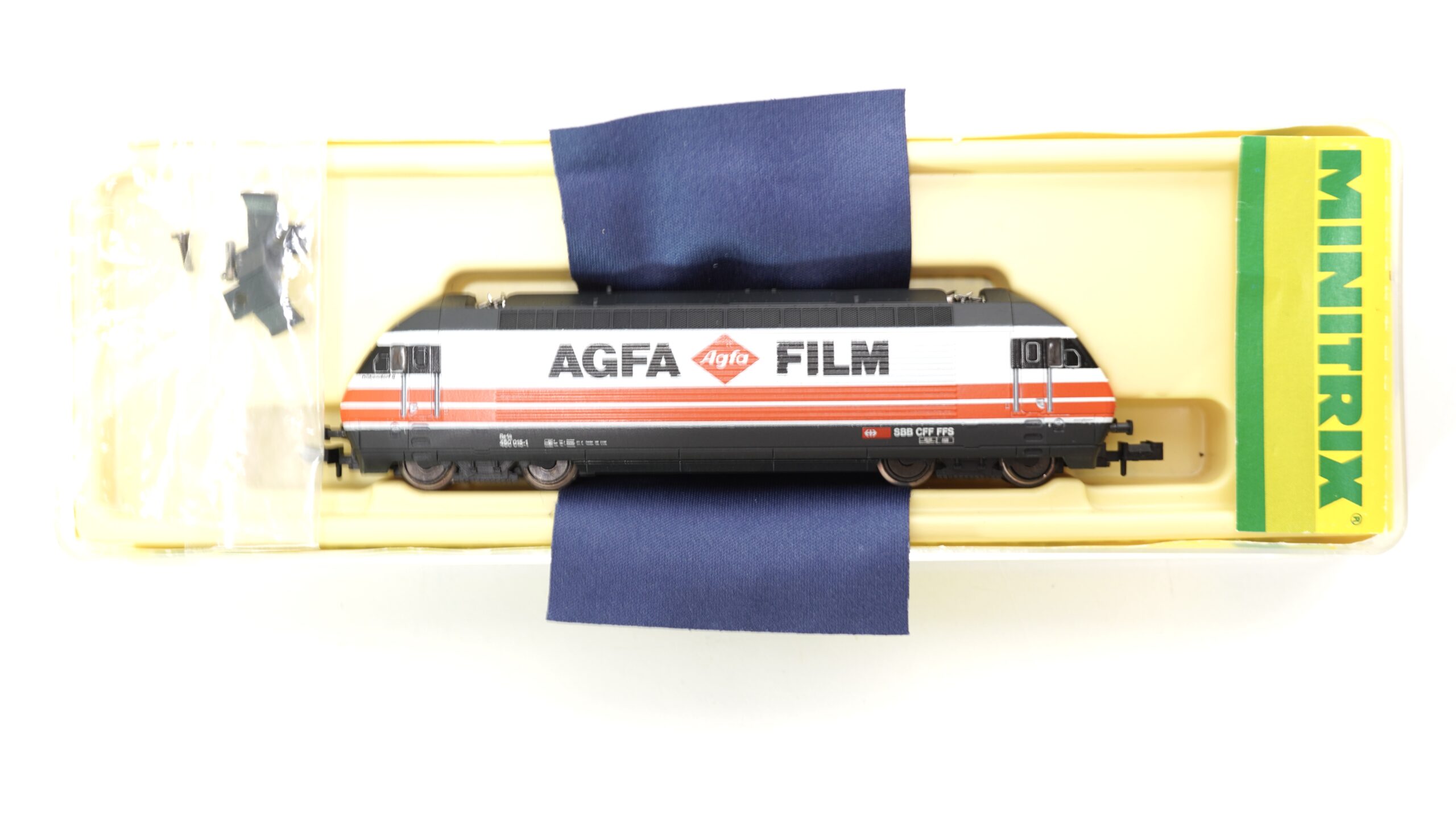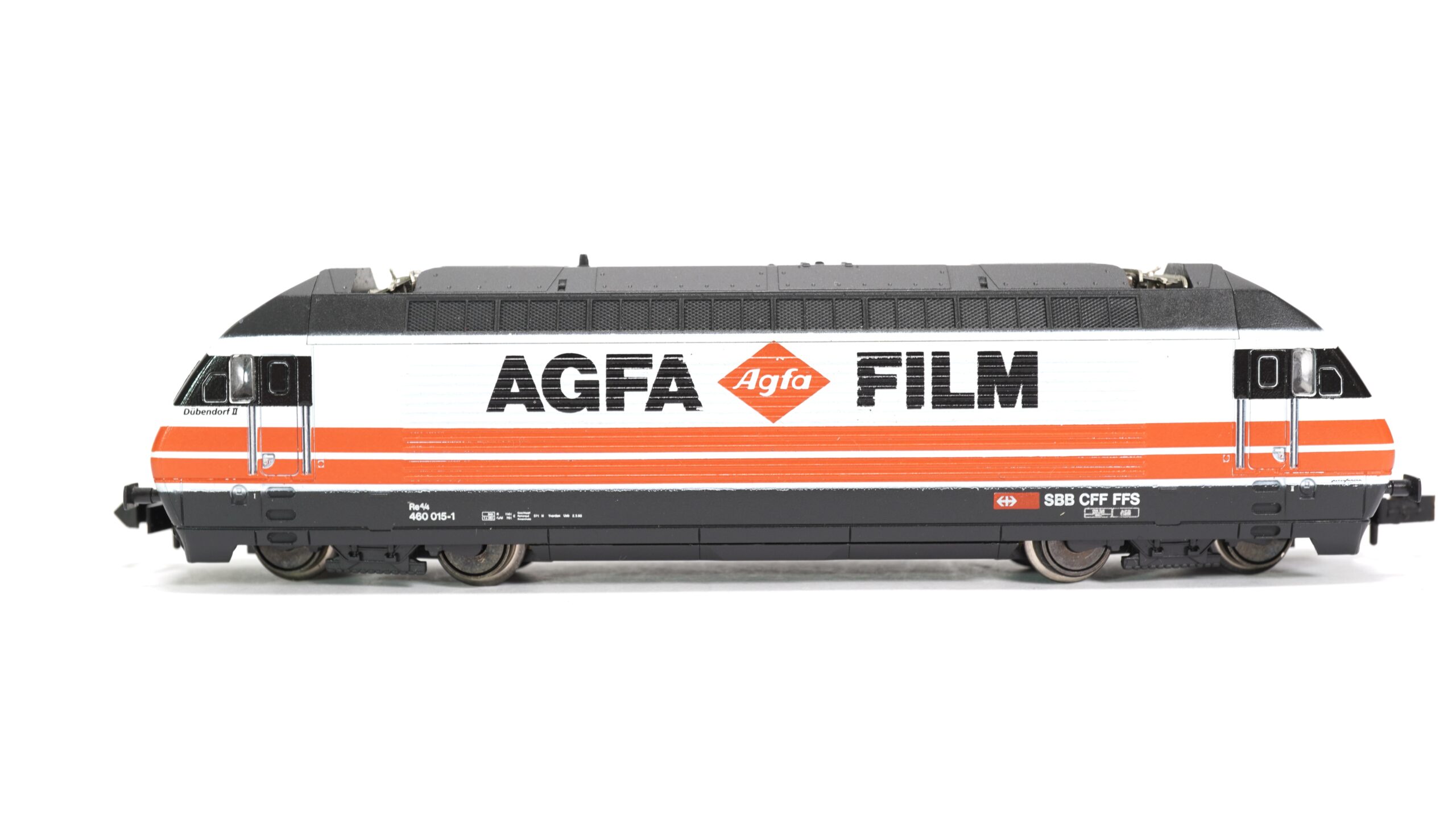 Die Minitrix SBB Re 460 „Agfa“ gehört zu den markantesten Lokomotiven der Schweizer Eisenbahnlandschaft. Mit ihrem modernen Design und ihrer kraftvollen Erscheinung prägt sie seit Jahren das Bild des Schweizer Fern- und Güterverkehrs. Bekannt für ihre Zuverlässigkeit und Leistungsstärke, transportiert die Re 460 sowohl Passagiere als auch Güter effizient über das ausgedehnte Schienennetz der Schweiz. Besonders auffällig ist ihre leuchtende Lackierung im Agfa-Design, die ihr einen unverwechselbaren Charakter verleiht und sie zu einem echten Hingucker auf jeder Strecke macht.