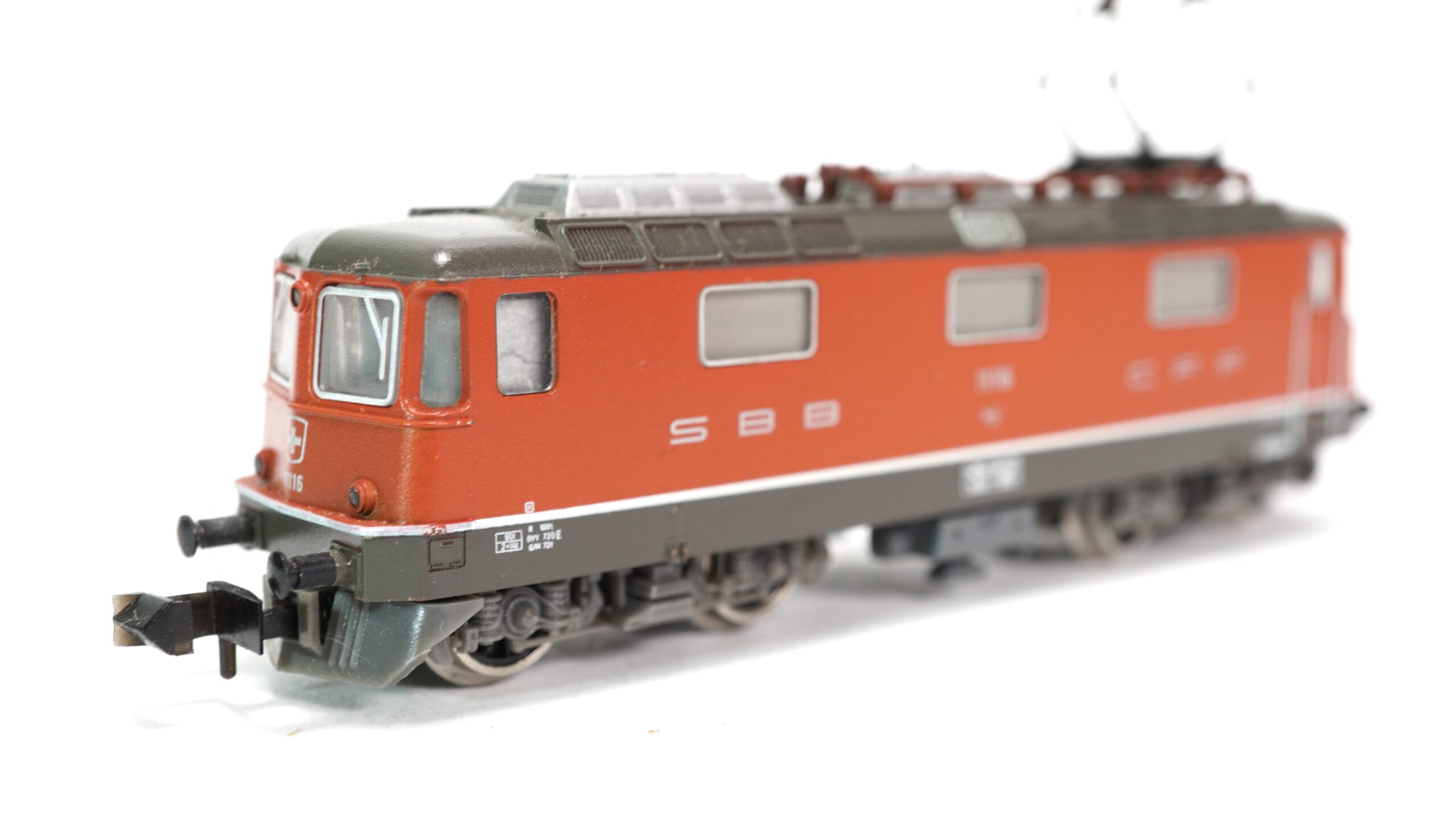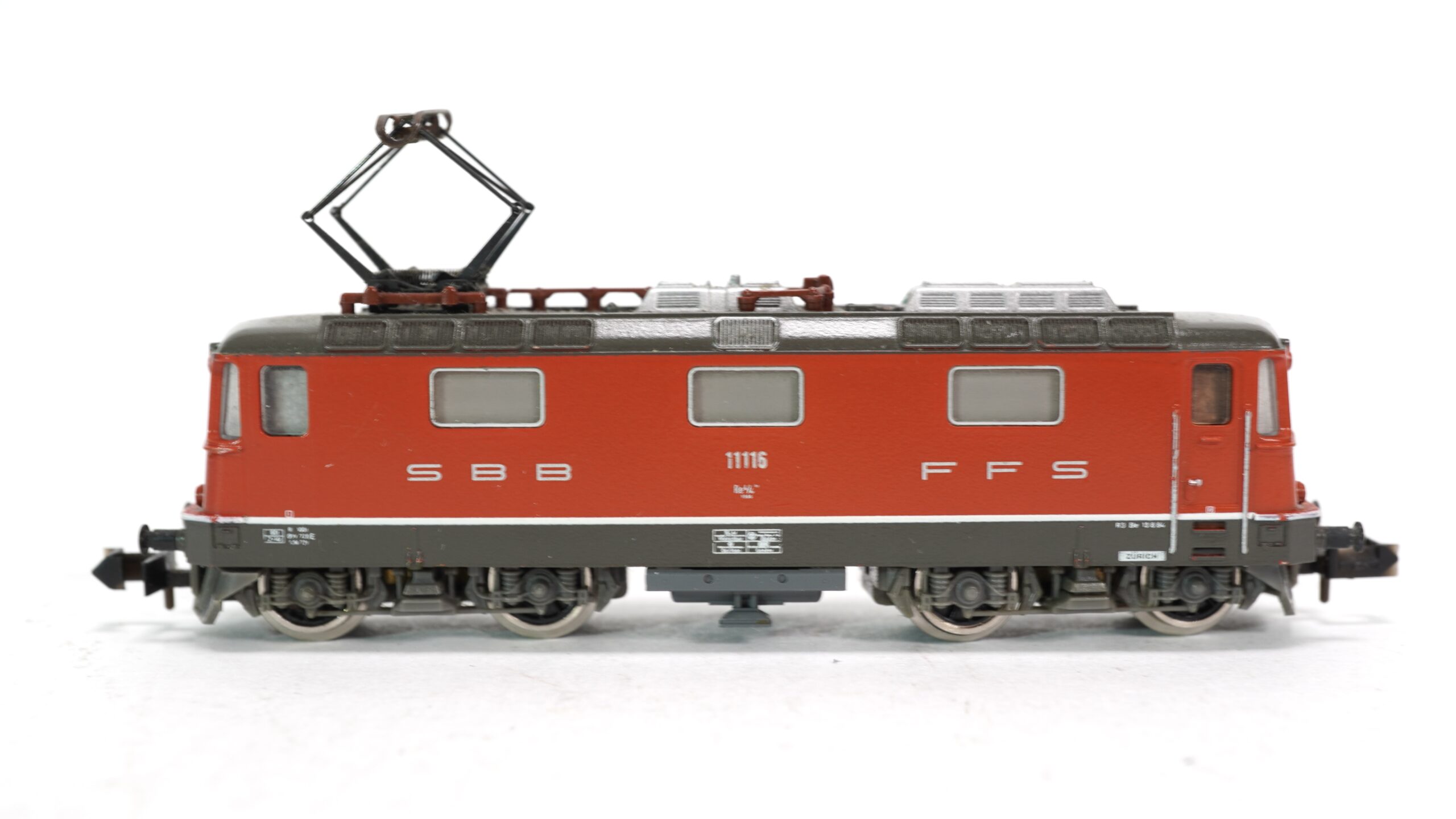 Die Minitrix 12977 ist ein exaktes Modell der legendären SBB Re 4/4 II, hier in der Ausführung mit der Loknummer 11116 und dem Depotstandort Zürich. Im Maßstab 1:160 (Spur N) bringt sie ein echtes Stück Schweizer Eisenbahngeschichte auf jede Modellbahnanlage.