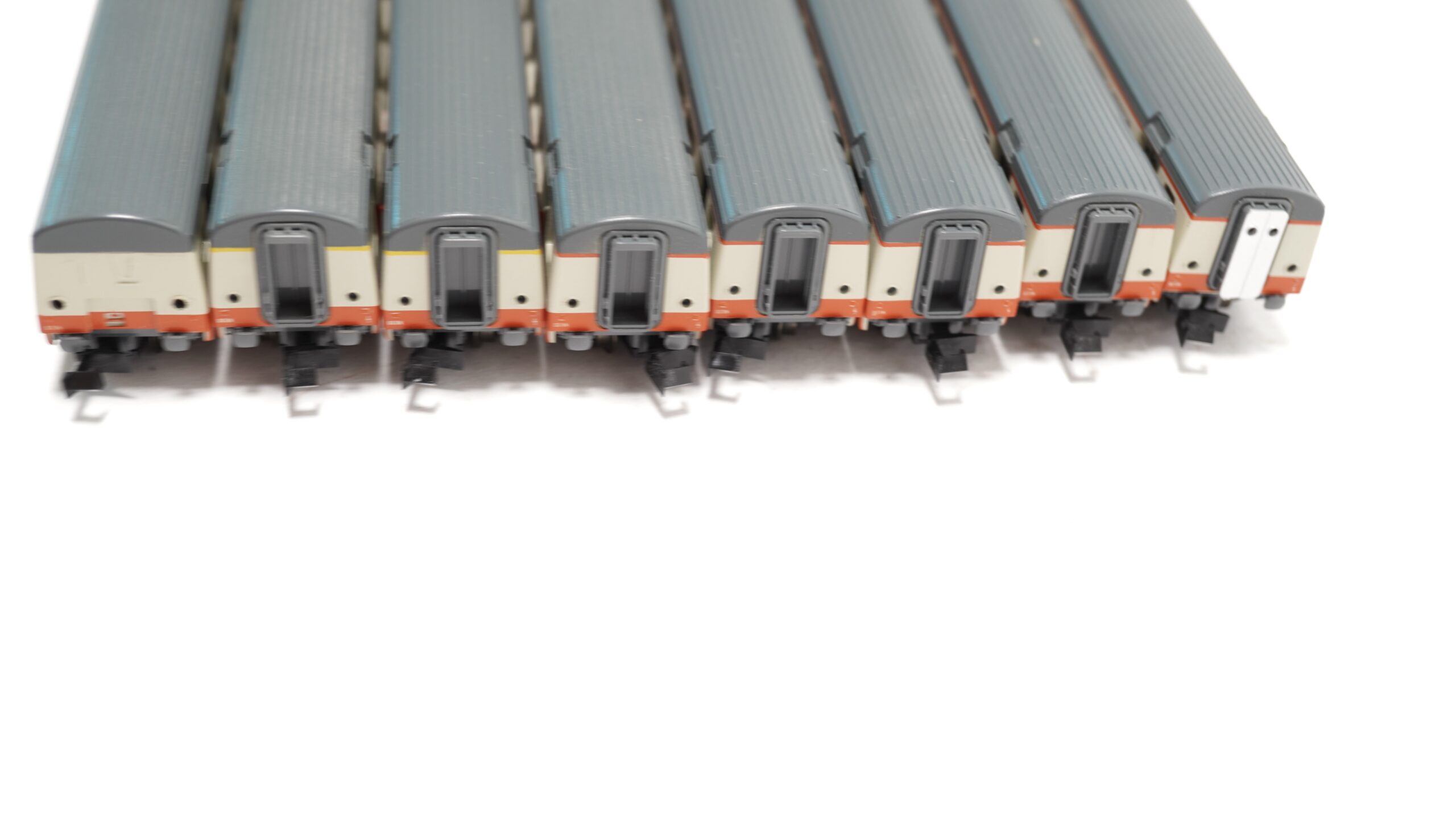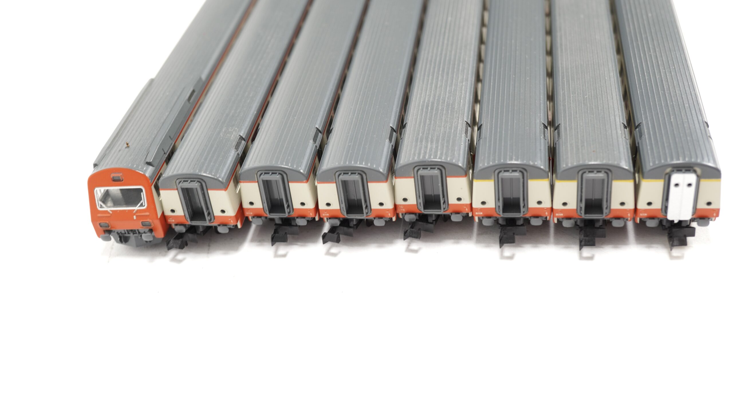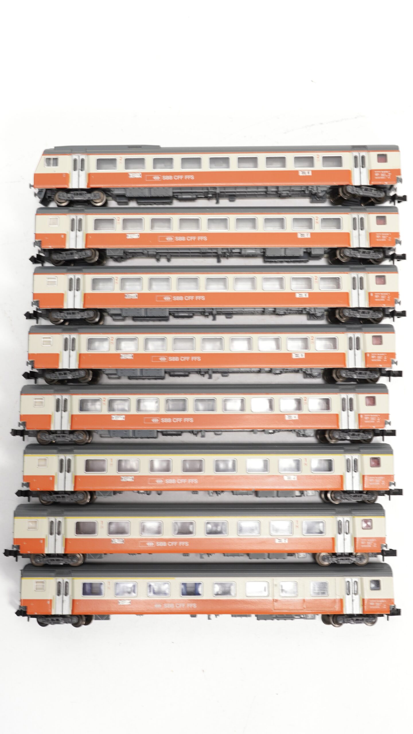 Mit acht aufeinander abgestimmten Wagen bietet der Swiss Express ein harmonisches Gesamtbild, das den Eindruck eines dynamischen und stilvollen Zuges vermittelt. Jede Wagenkombination erzählt von modernen Bahnreisen durch idyllische Schweizer Landschaften, vorbei an malerischen Seen, majestätischen Bergen und geschäftigen Städten. Der Zug wird zum zentralen Element jeder Modellbahnlandschaft, indem er Bewegung, Eleganz und Authentizität in die Miniaturwelt bringt.