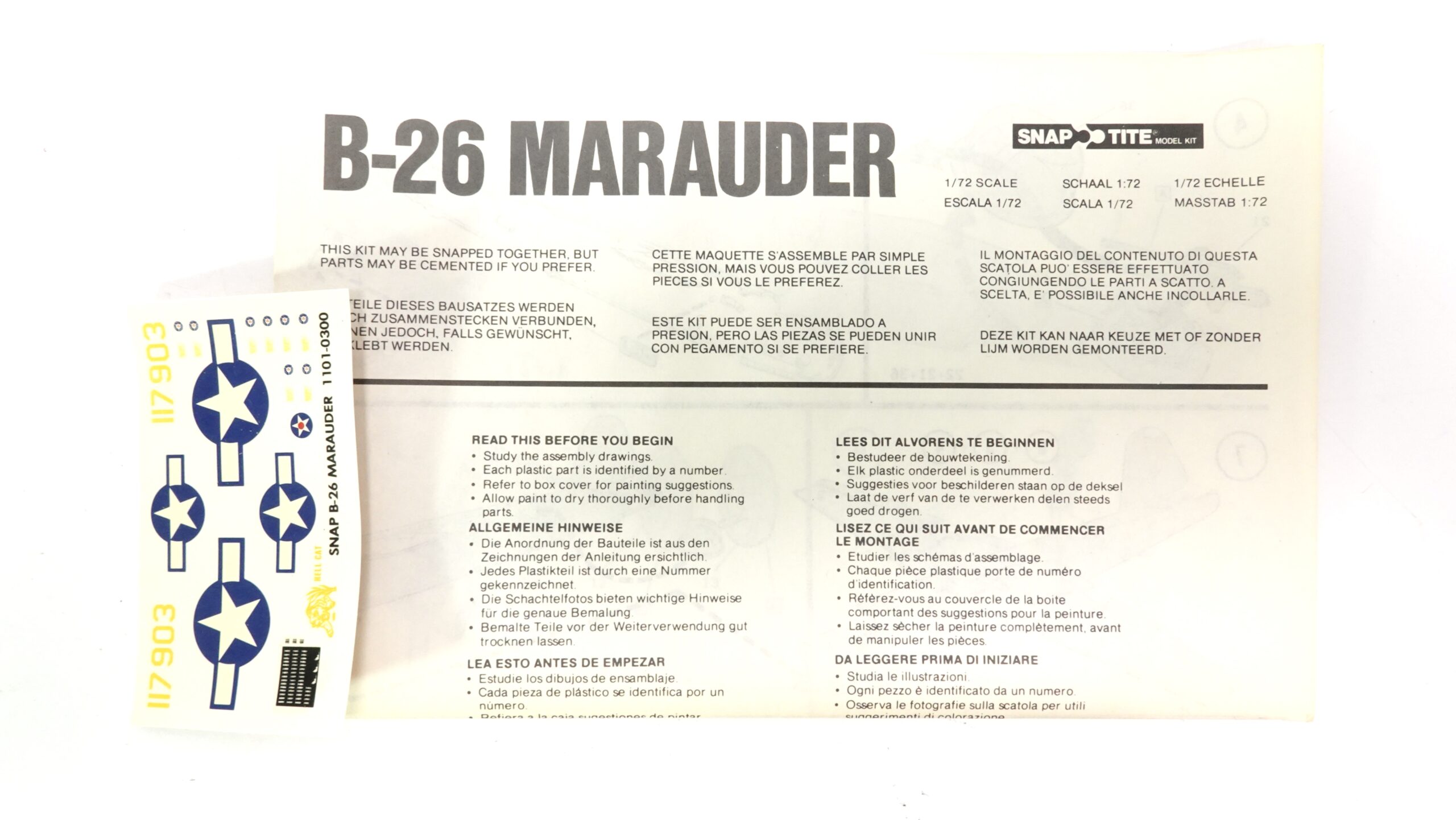 Mit dem Monogram 1101 1/72 B-26 Marauder B-26 können Sammler und Modellbauer die imposante Silhouette und die charakteristischen Details dieses legendären Bombers detailgetreu darstellen. Schon beim Aufbau vermittelt das Modell ein realistisches Gefühl für die Größe und die Gestaltung der B-26 Marauder. Besonders die Anordnung der Tragflächen, die Form des Rumpfes und die typische Cockpit-Struktur lassen die Epoche der 1940er Jahre lebendig werden.