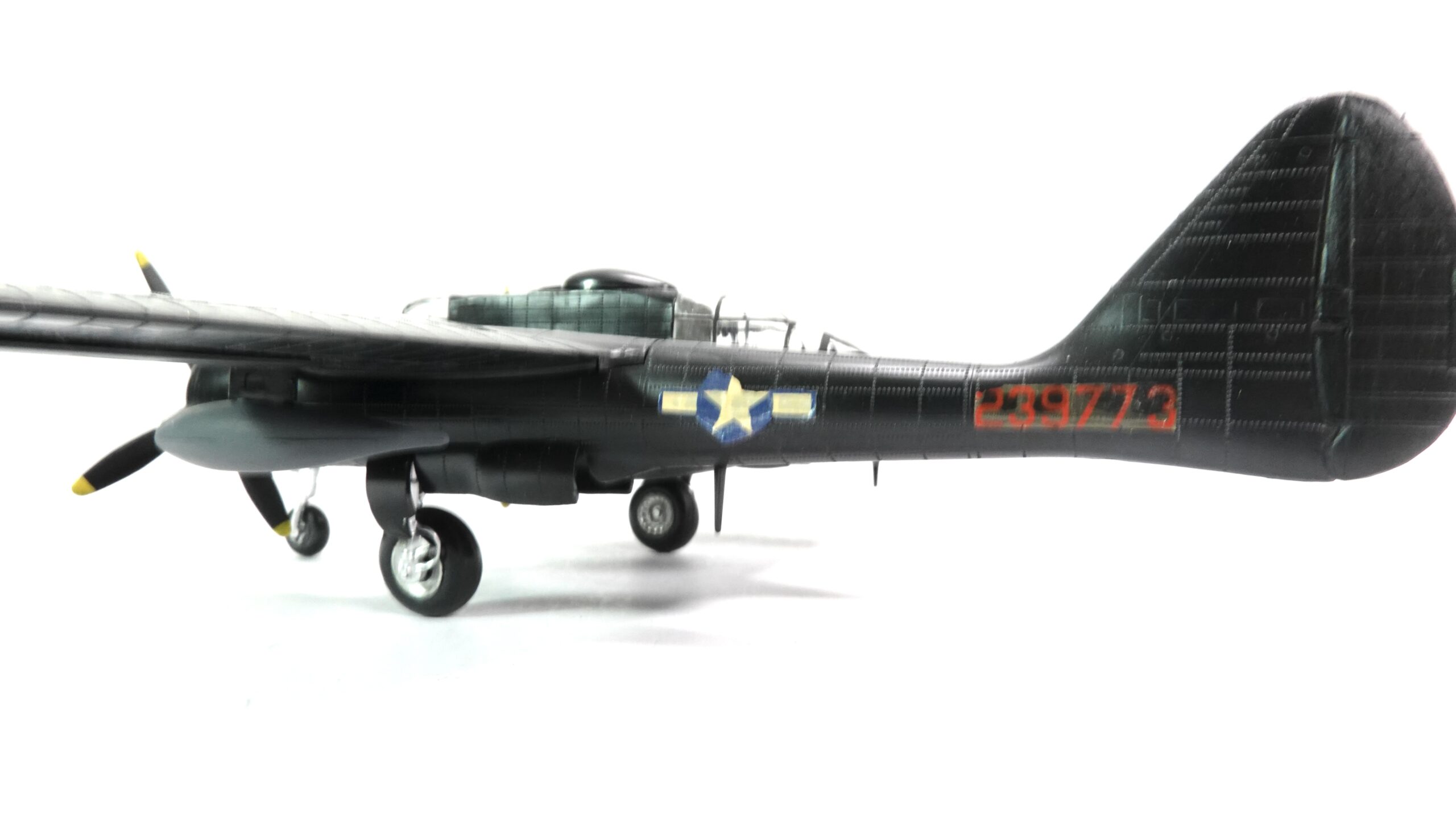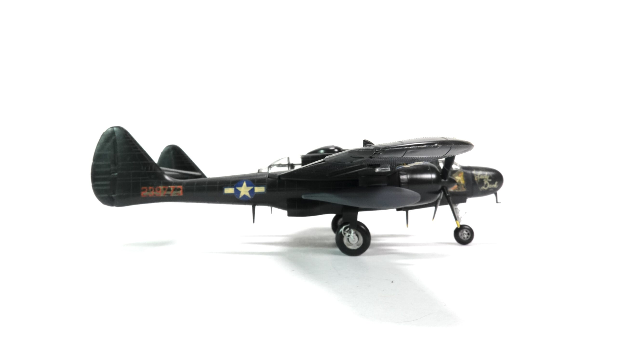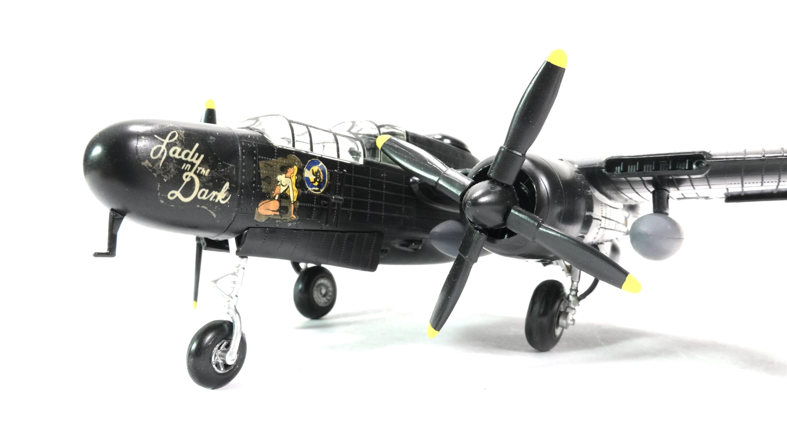 Die Maschine gehörte zur 548th Night Fighter Squadron und war über dem pazifischen Raum im Einsatz. Ihre charakteristische Nose Art zeigt eine Pin-up-Dame – ein typisches Motiv der Zeit – und den Schriftzug „Lady in the Dark“. Das Modell dieser Maschine ist daher nicht nur ein Flugzeugnachbau, sondern ein kleines Stück Luftfahrtgeschichte mit einem Hauch Glamour.
