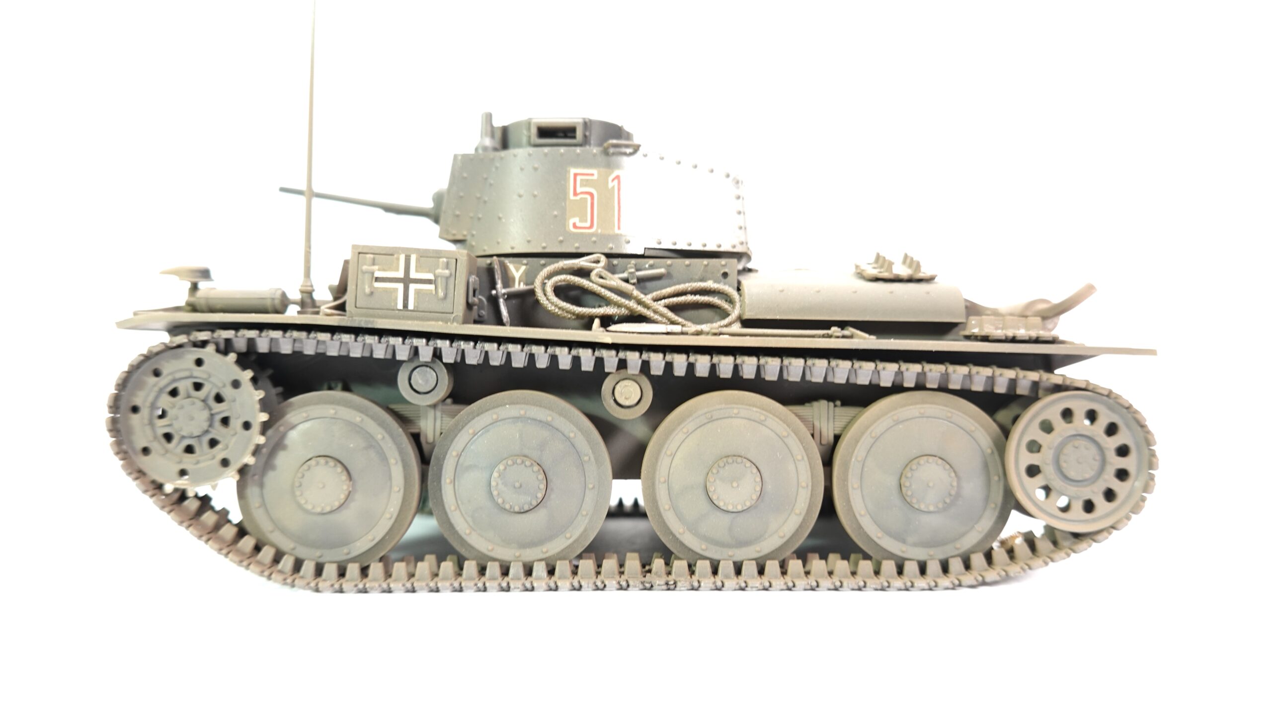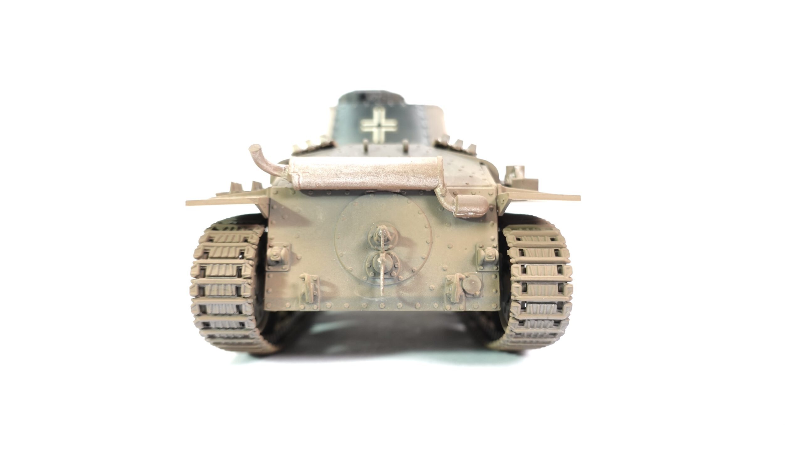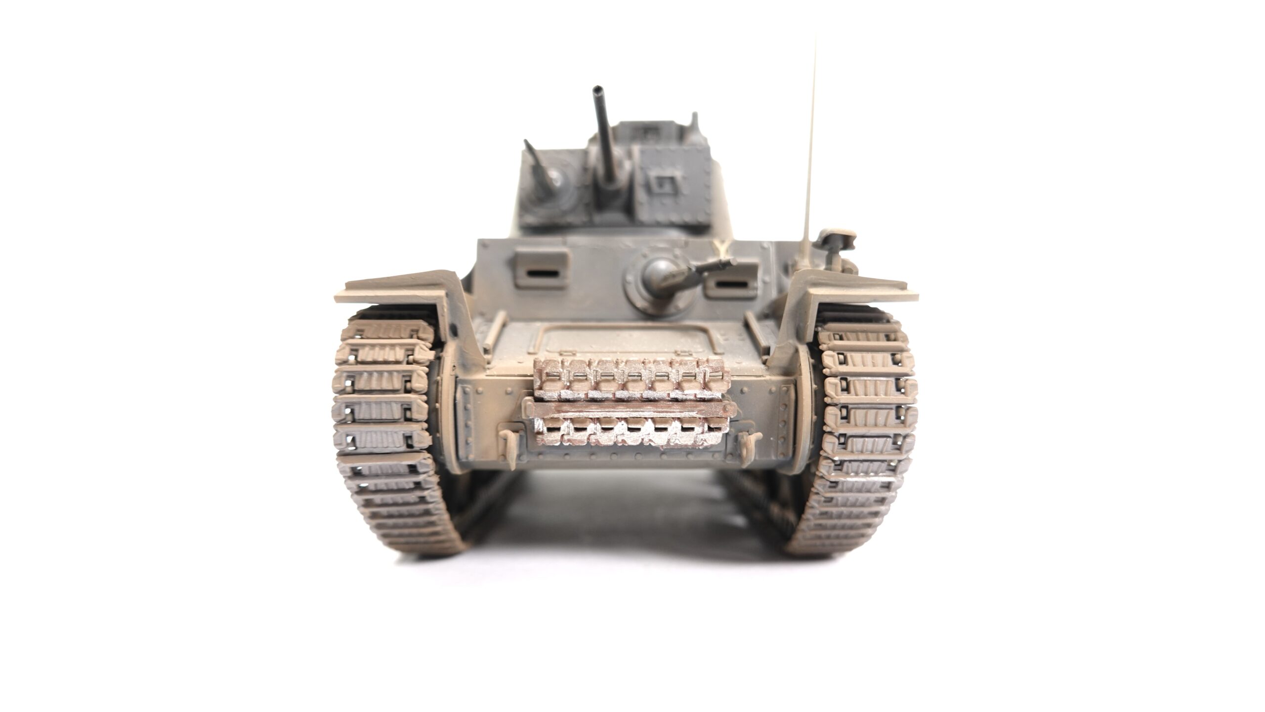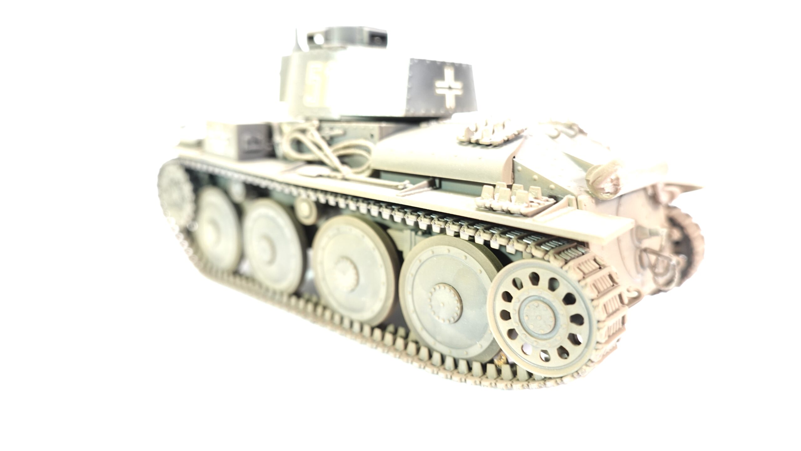 Die Variante Ausf. F, wie sie in diesem Modell dargestellt ist, war eine der letzten und modernsten Ausführungen des Panzer II. Sie verfügte über eine verbesserte Panzerung (bis zu 35 mm), eine überarbeitete Formgebung und ein leicht modifiziertes Fahrwerk. Produziert wurde die Ausf. F ab Mitte 1941, und sie blieb trotz ihrer mittlerweile begrenzten Kampfkraft noch bis 1943 im Fronteinsatz – häufig in Aufklärungsrollen oder zur Unterstützung der Infanterie.