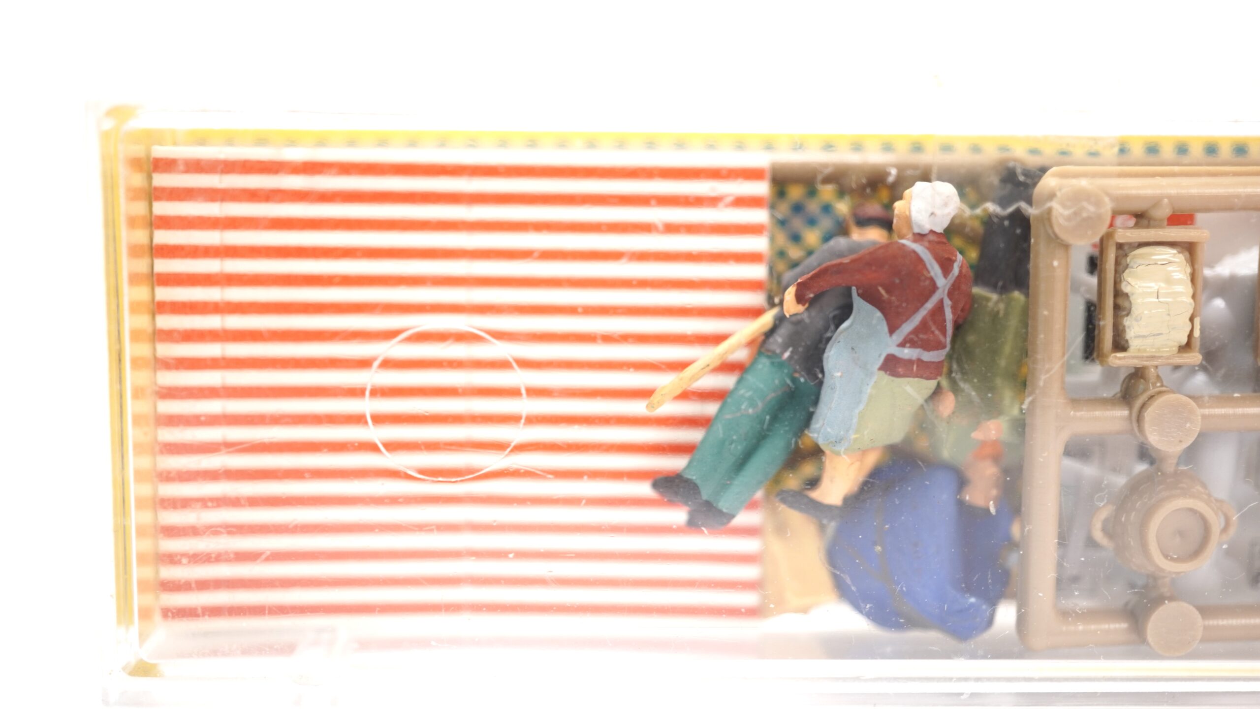Ein klassischer Preiser Gemüsestand erinnert an Wochenmärkte, wie man sie aus vielen europäischen Städten und Dörfern kennt. Frisches Obst und Gemüse, freundliche Verkäufer und neugierige Kunden schaffen eine warme, einladende Stimmung. Genau dieses Flair transportiert diese Szene: Menschen kommen zusammen, tauschen sich aus und erledigen ihre Einkäufe in einer entspannten Umgebung. Es ist diese Mischung aus Bewegung, Kommunikation und Detailreichtum, die eine Modelllandschaft besonders realistisch wirken lässt.