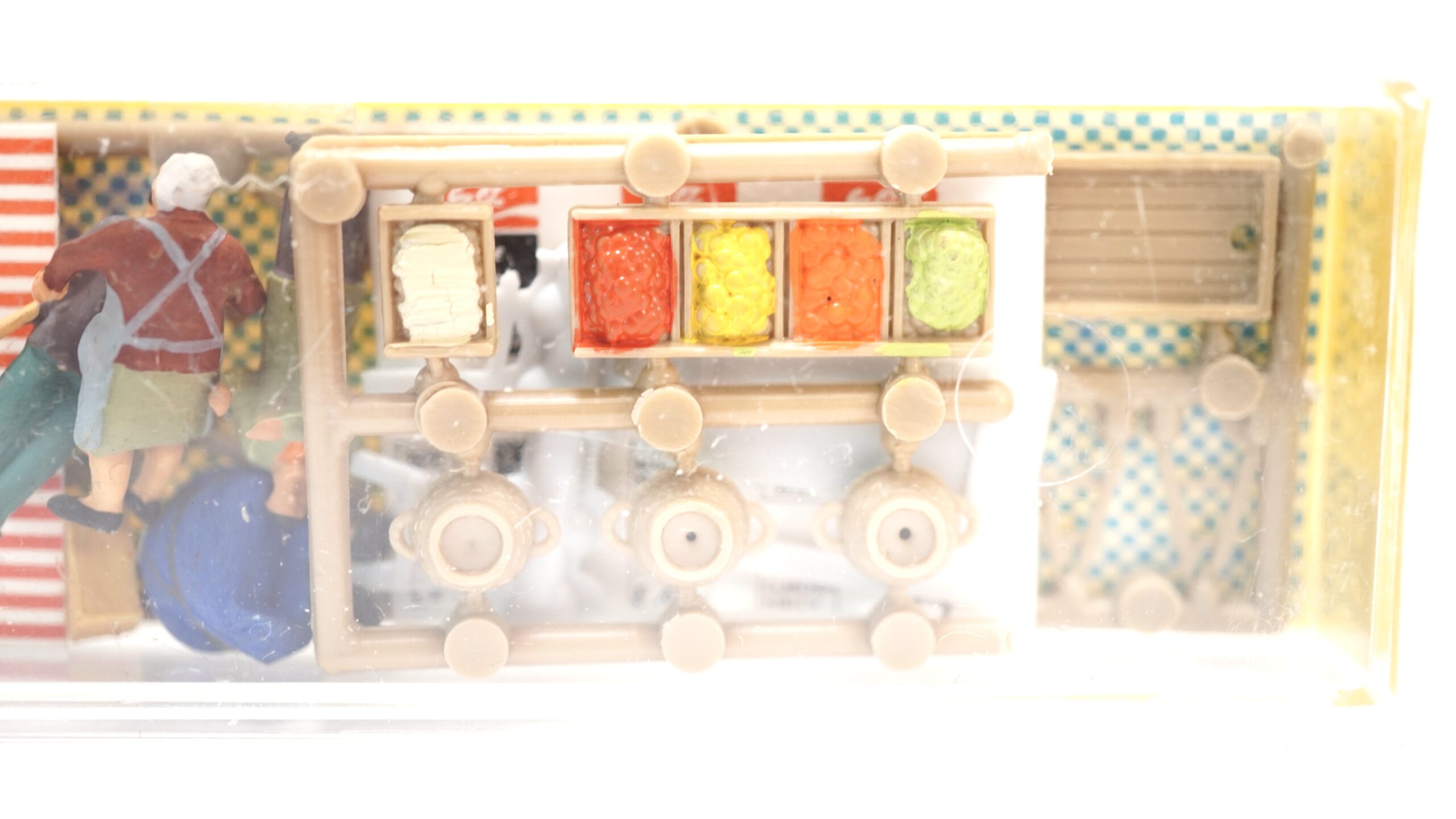 Für Modellbau-Enthusiasten ist ein solcher Gemüsestand mehr als nur Dekoration – er ist ein zentraler Bestandteil einer lebendigen und glaubwürdigen Miniaturwelt, die den Betrachter sofort in ihren Bann zieht.