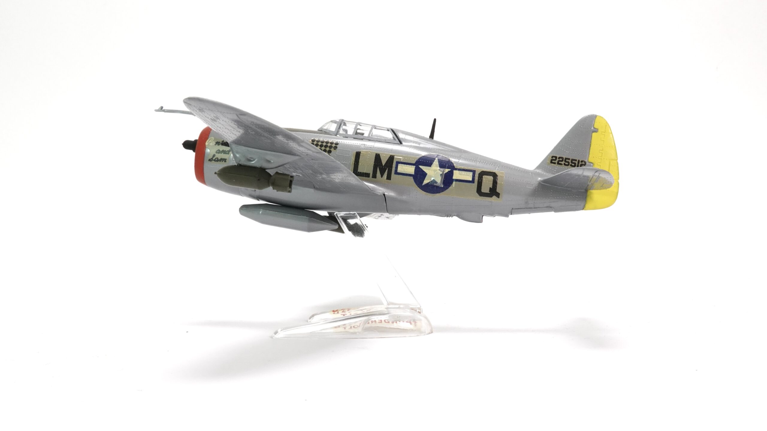 Auch in der europäischen Luftkampagne spielte sie eine entscheidende Rolle. Besonders berühmt wurde die Variante P-47D, die mit verbesserten Tragflächen, grösserem Treibstoffvorrat und Bombenaufhängungen ausgerüstet war. In dieser Version konnte sie ihre ganze Vielseitigkeit entfalten – vom Höhenjäger bis zum präzisen Jagdbomber.